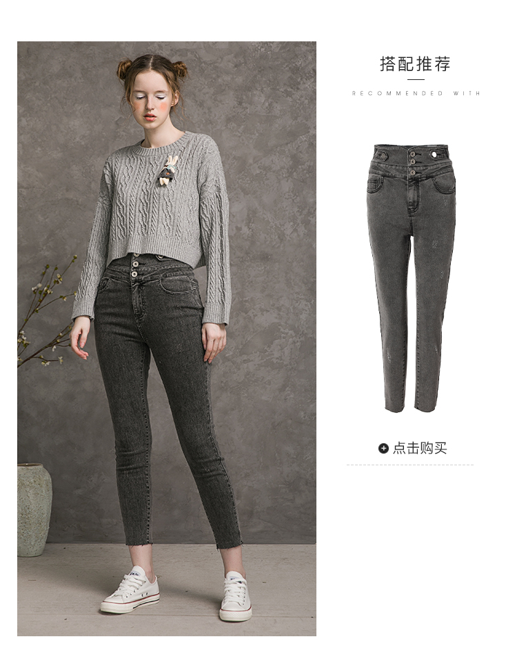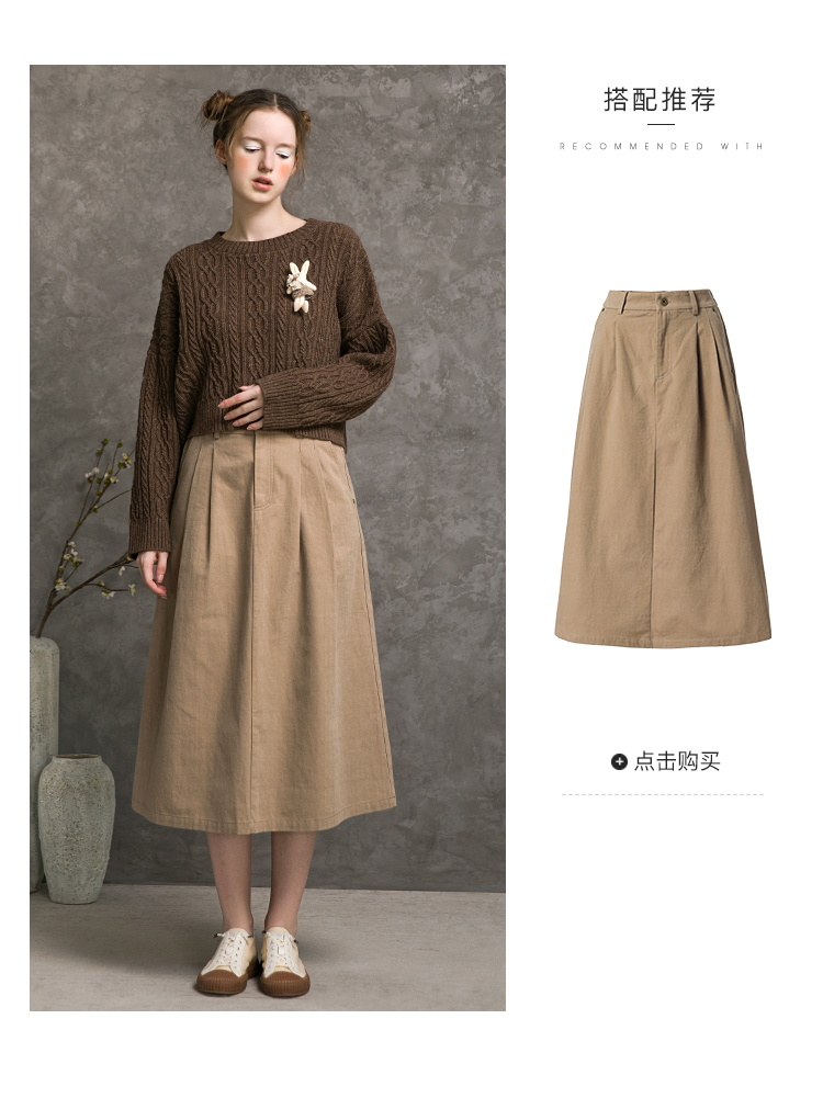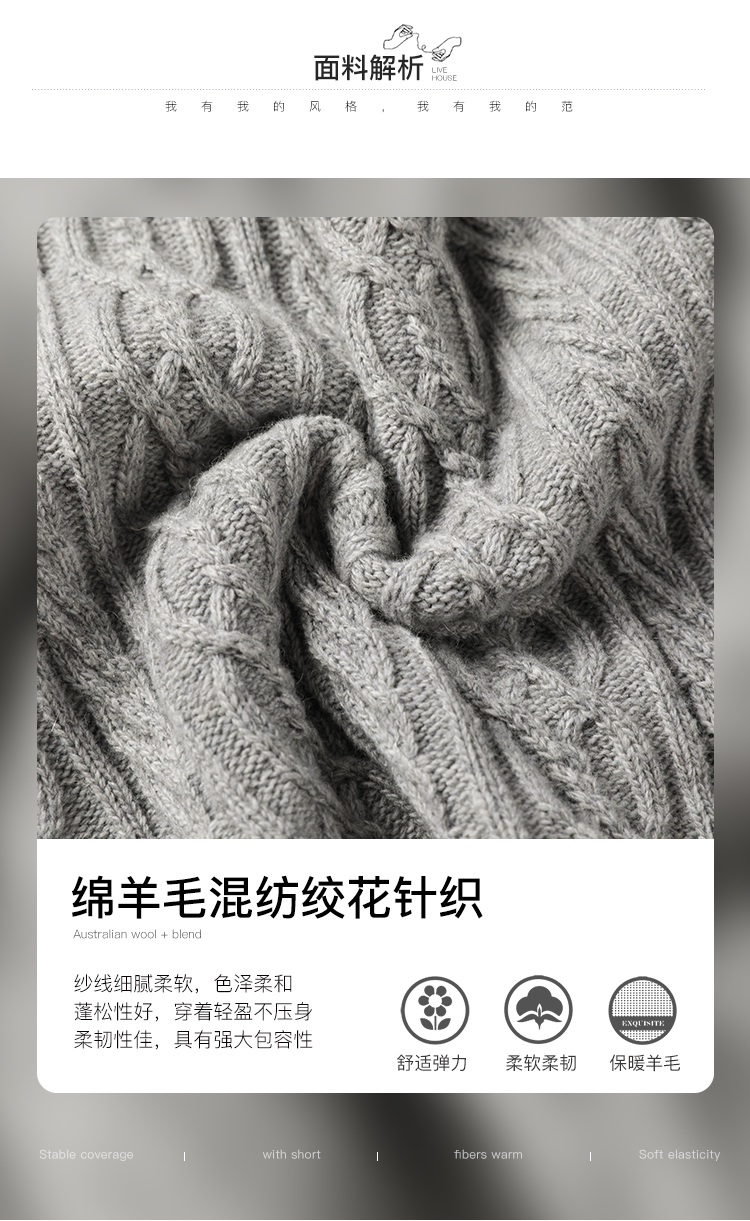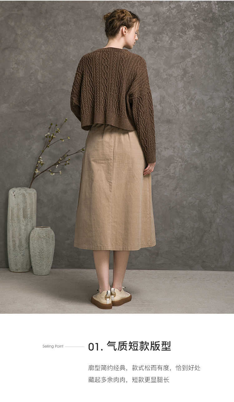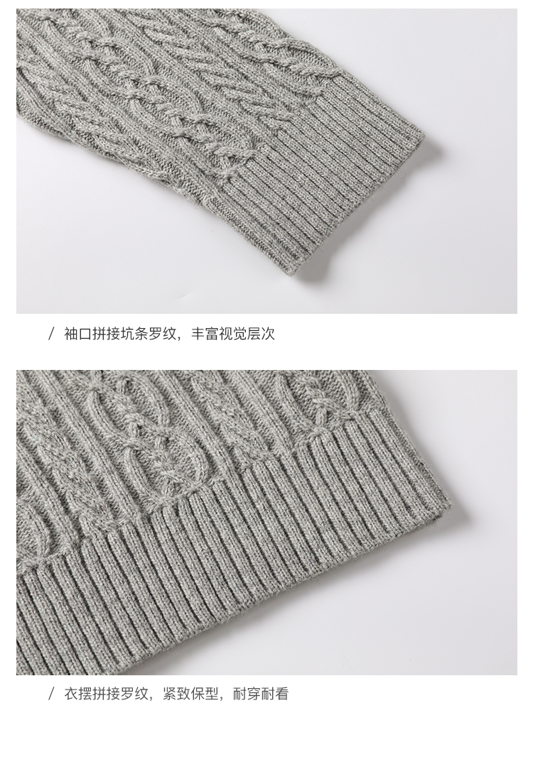 famecoco范可儿圆领毛衣女士绞花肌理短款宽松羊毛上衣F216DB011