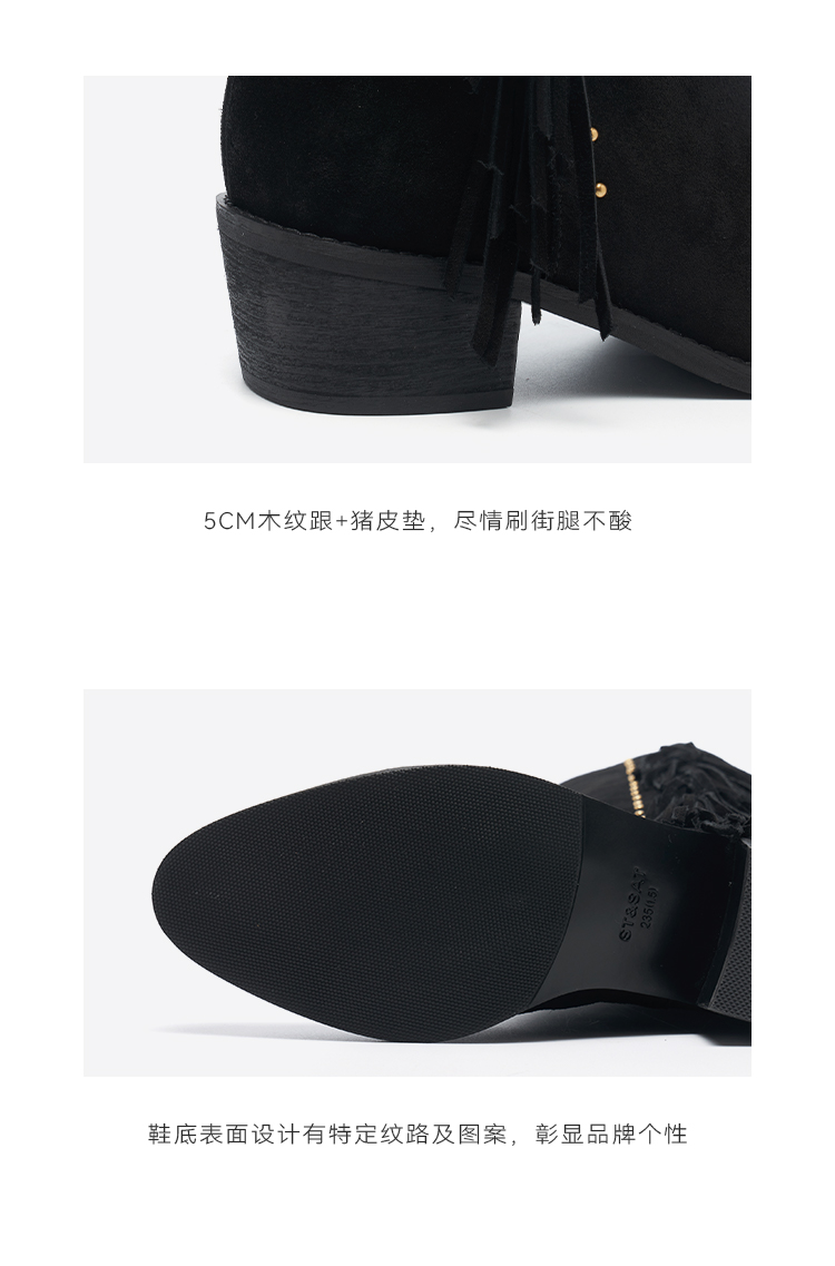 【筒高可选】星期六西部游牧风流苏牛仔靴SSD4117079/SSD4116074