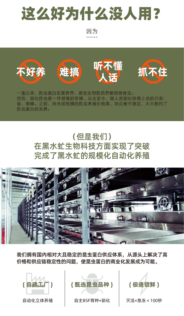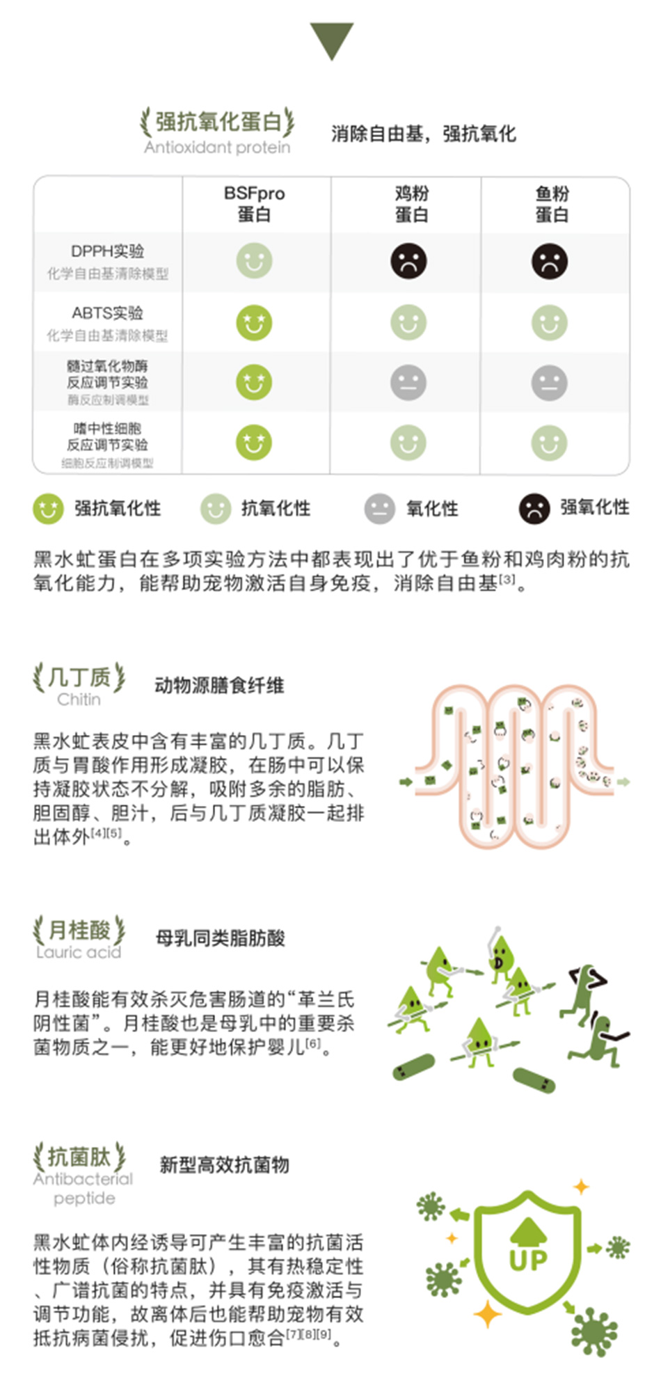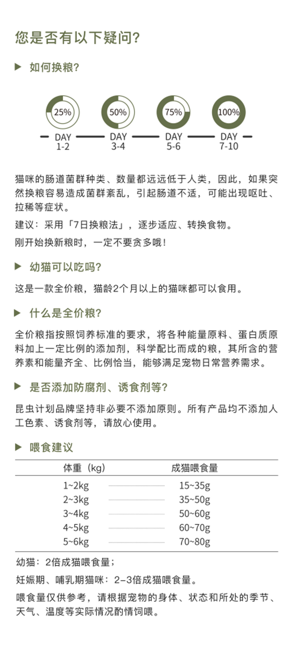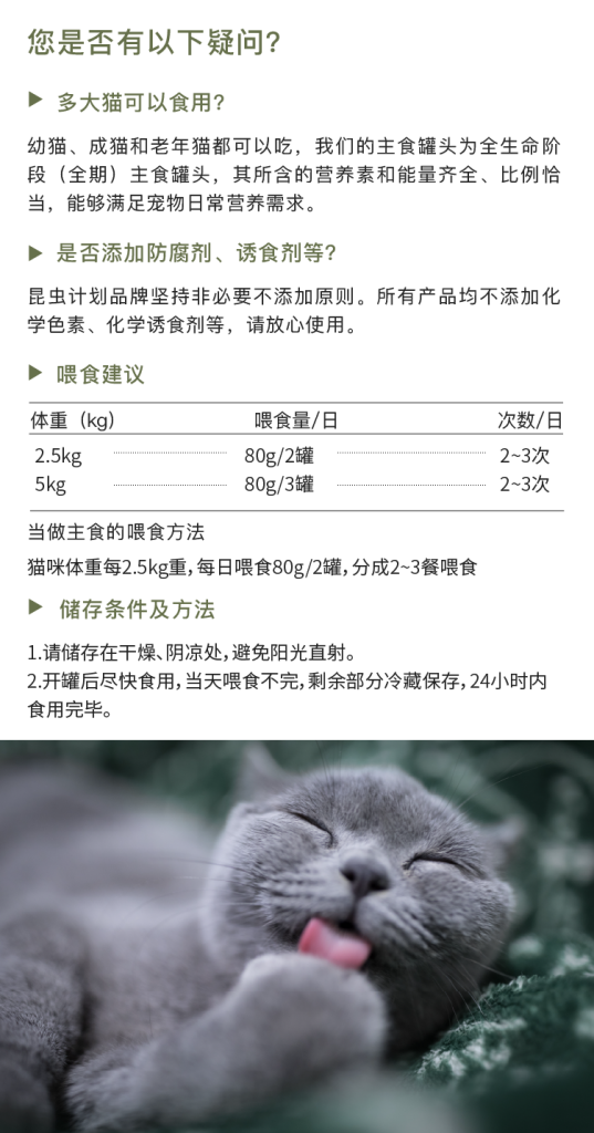 【配方】: 猫粮:80%动物原料,40%蛋白含量;22%黑水虻昆虫蛋白 犬粮:86%动物原料,35%蛋白含量;17%黑水虻昆虫蛋白 【保质期】:18个月