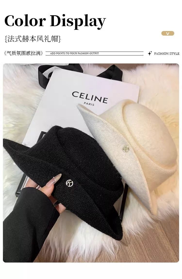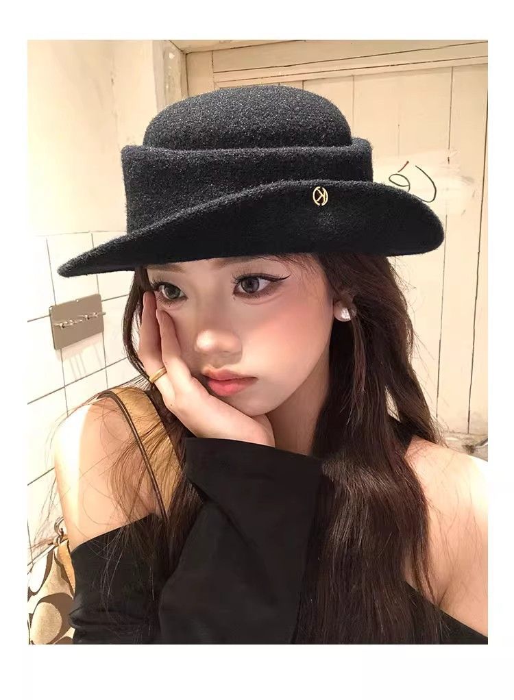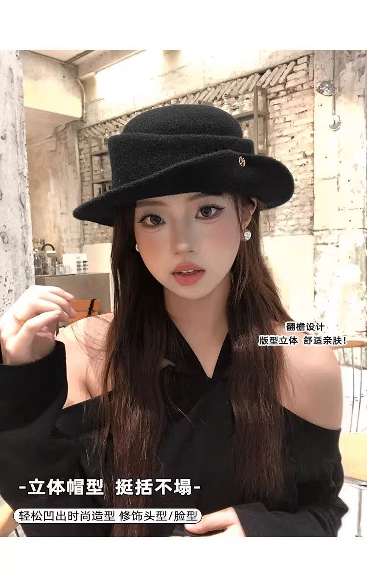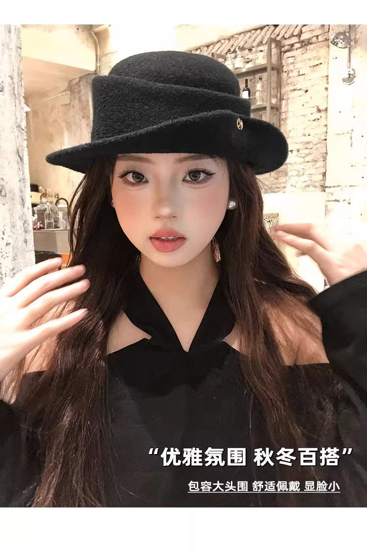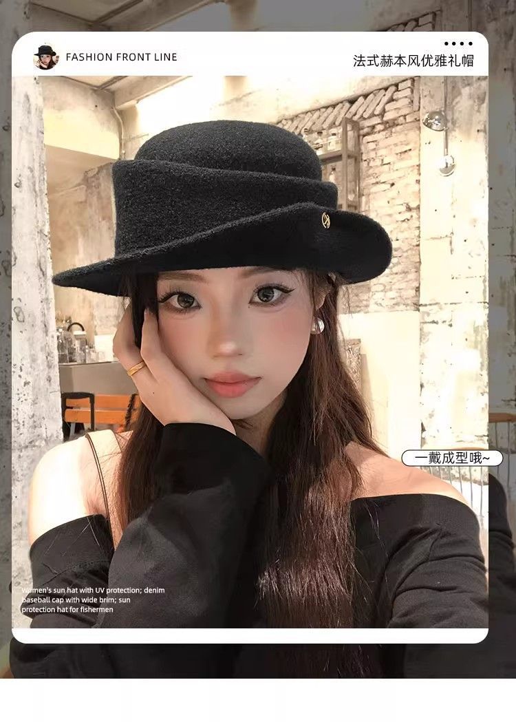 【YW】无忧购法式赫本风优雅黑色礼帽女秋冬复古显脸小卷边千金毛呢帽zl31983(截单后3-5天发货)