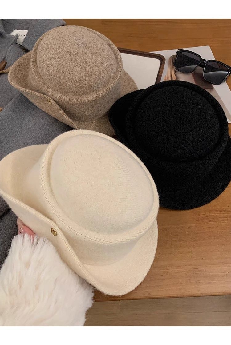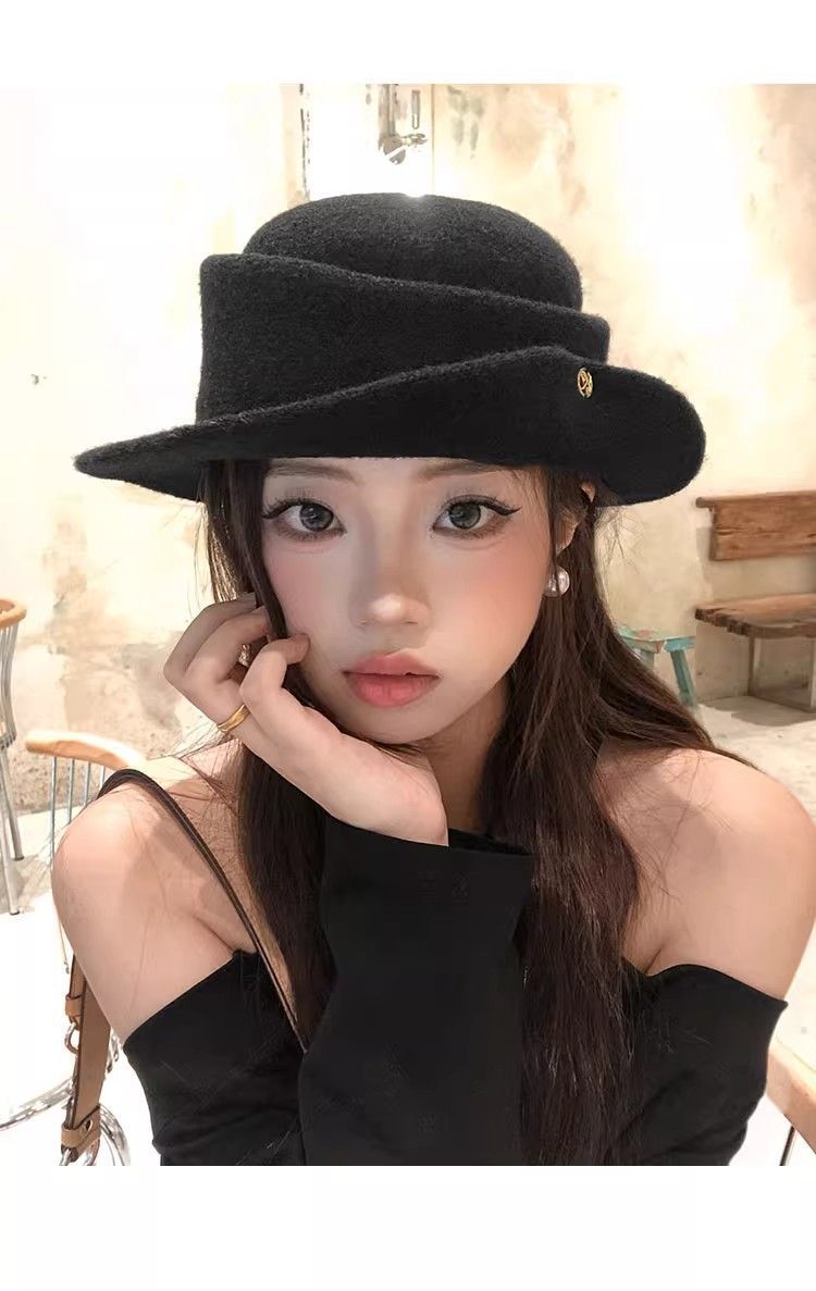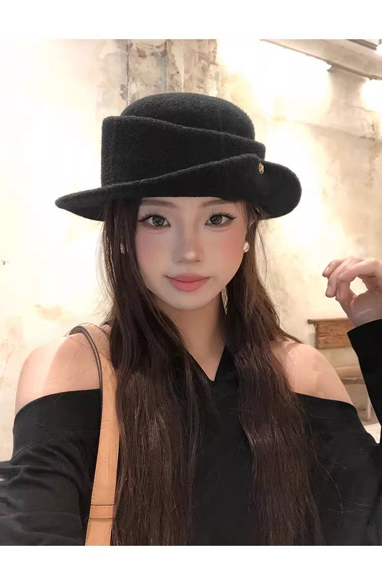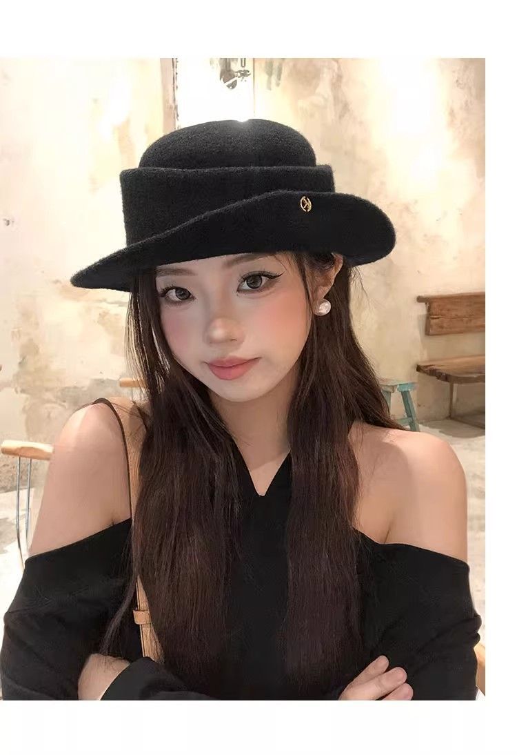 【YW】无忧购法式赫本风优雅黑色礼帽女秋冬复古显脸小卷边千金毛呢帽zl31983(截单后3-5天发货)