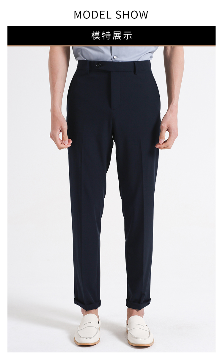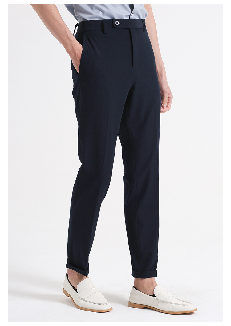 callisto藏青聚酯纤维混纺休闲裤 SSCPW049C