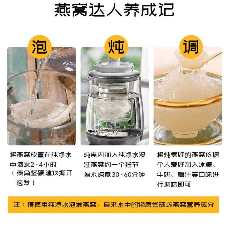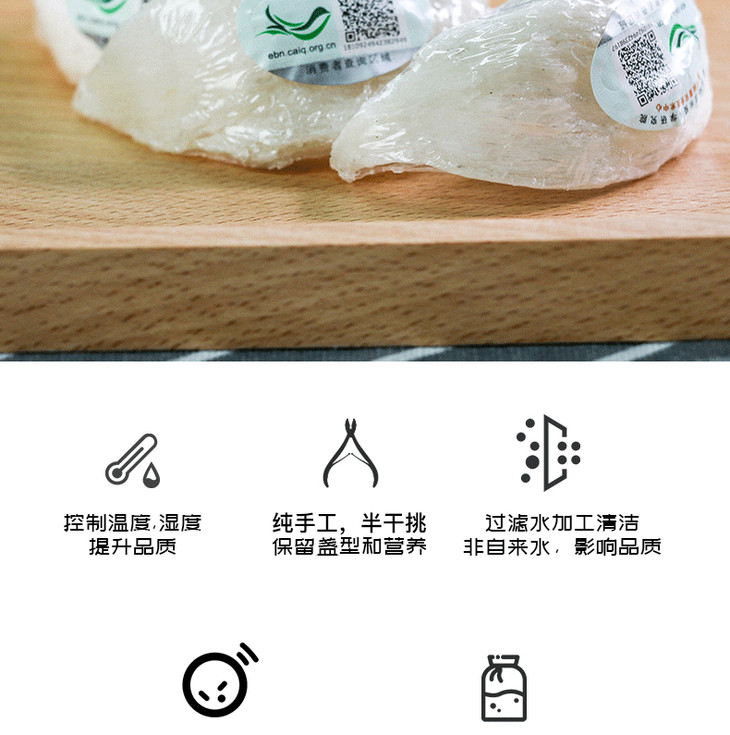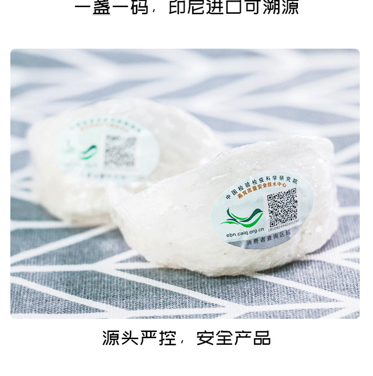 印尼可追溯燕窝(白燕盏)盏型饱满完整,人工多次反复挑毛,成品杂质少,食用更方便