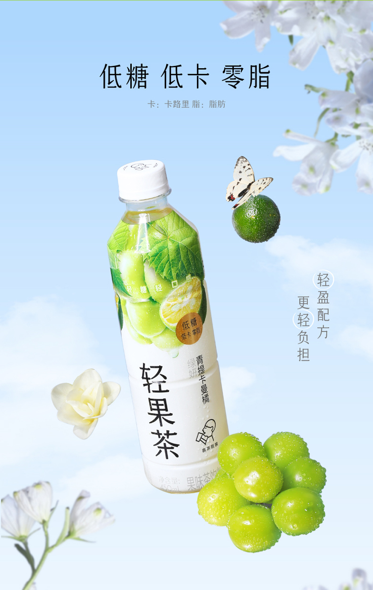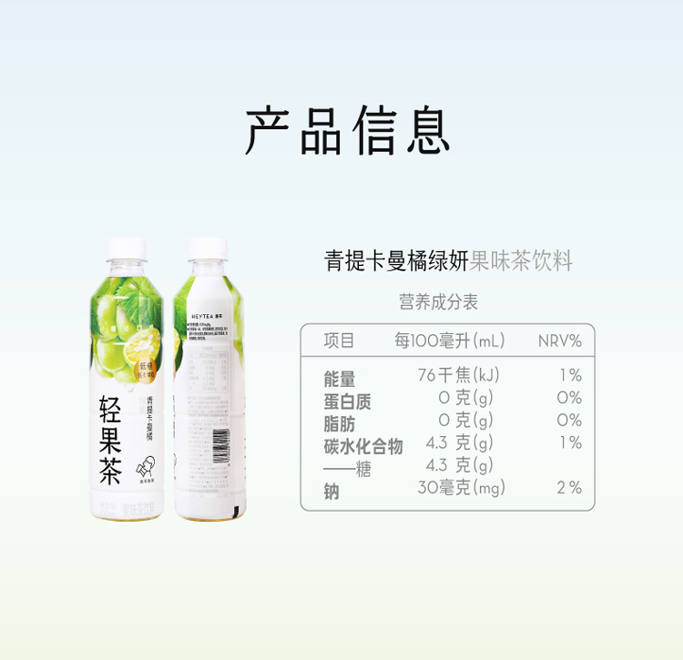 喜茶青提卡曼橘绿妍果味茶饮料 450ml*15瓶