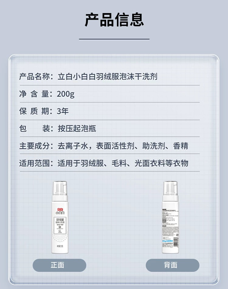 小白白羽绒服干洗剂 清洁喷雾不伤衣