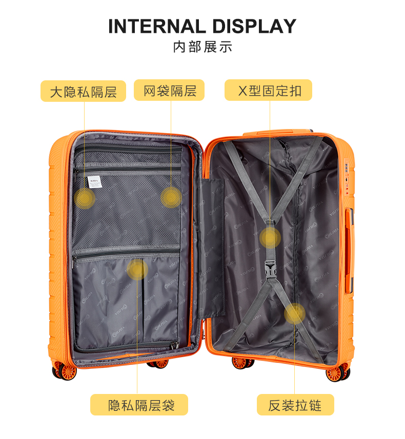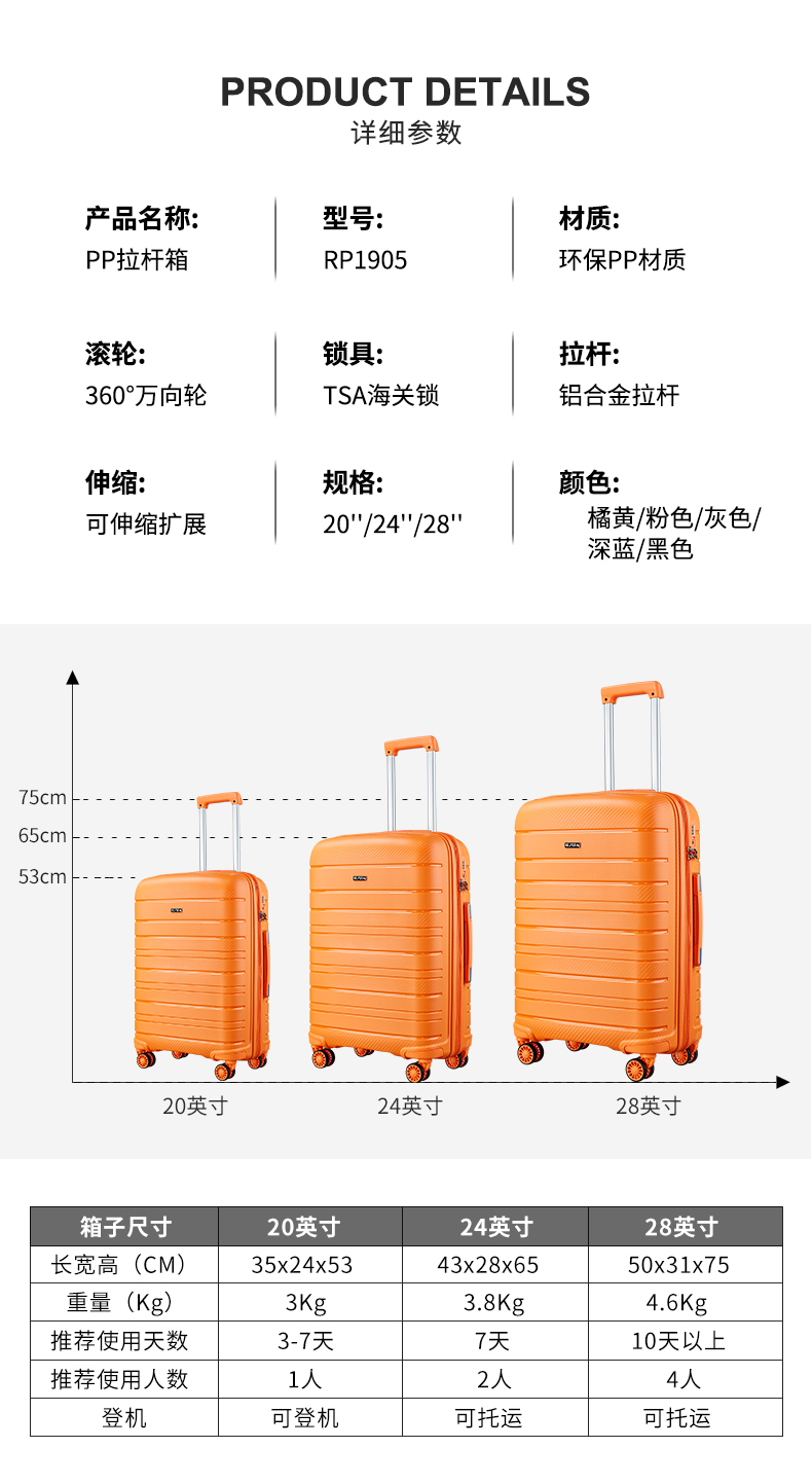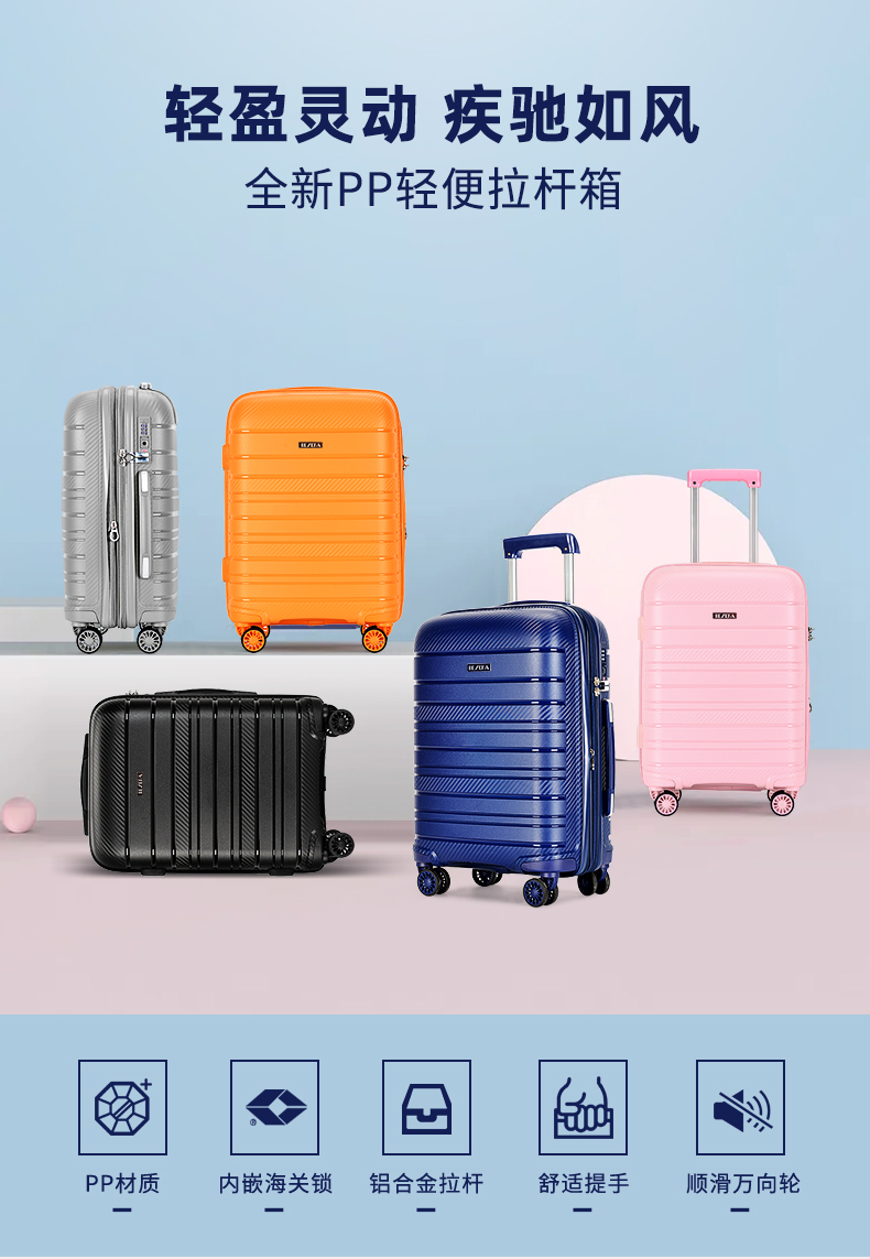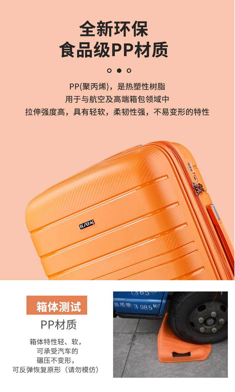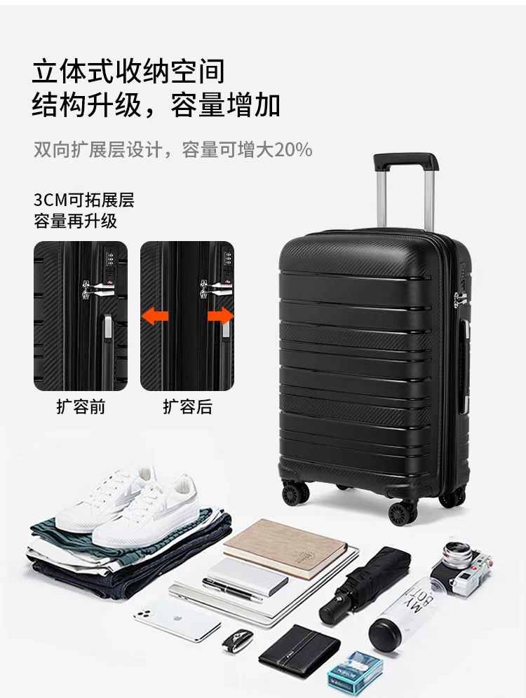 摔不烂行李箱全新PP拉杆箱行李箱 大容量拉链箱20寸登记密码箱