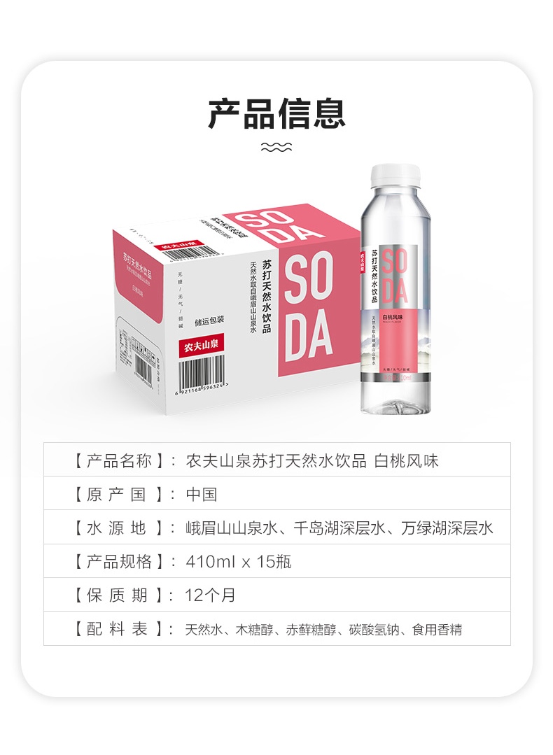 农夫山泉 苏打白桃味 410ml*15瓶 整箱装