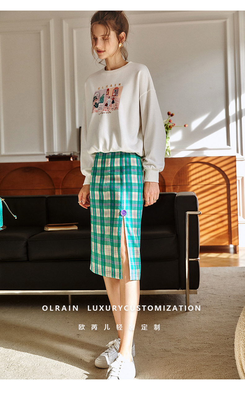 欧芮儿半身裙女2021新款a字休闲时尚薄款包臀开叉中长款裙子