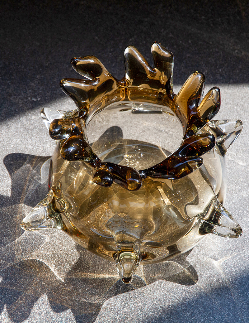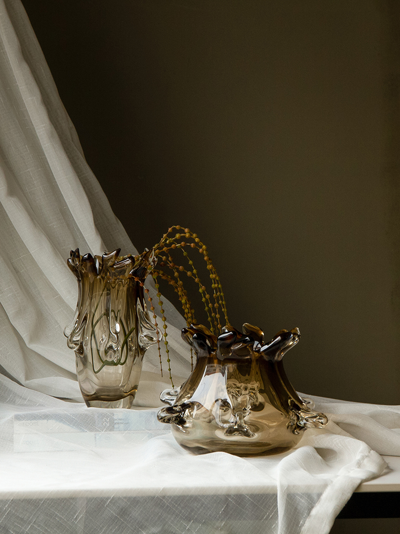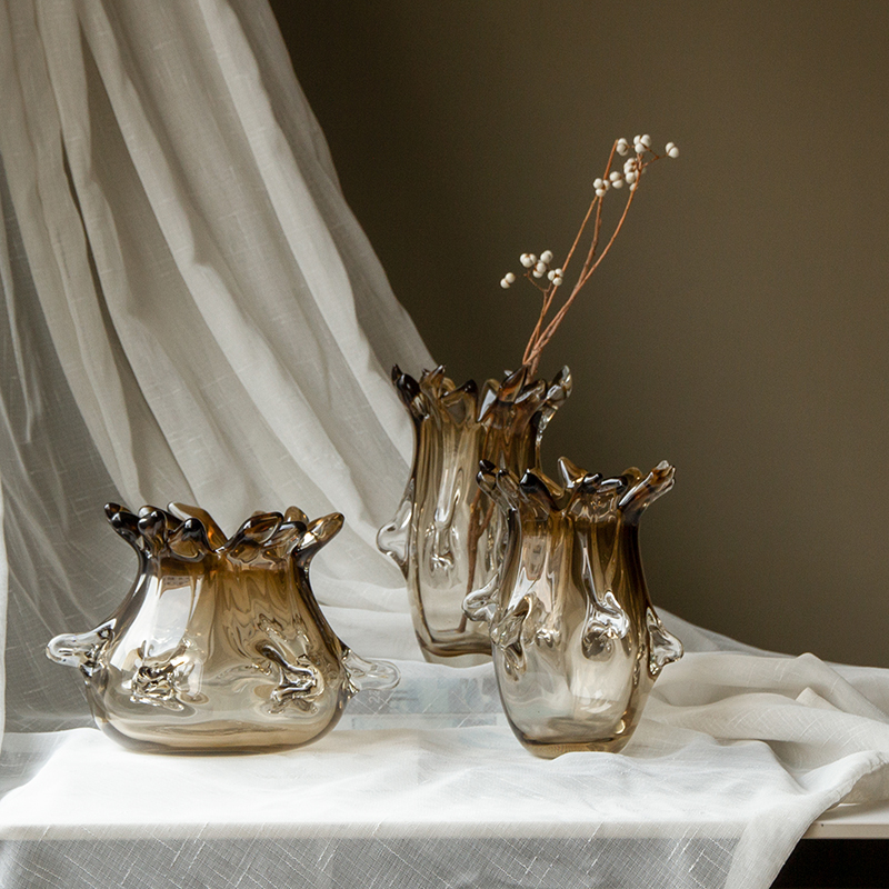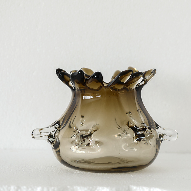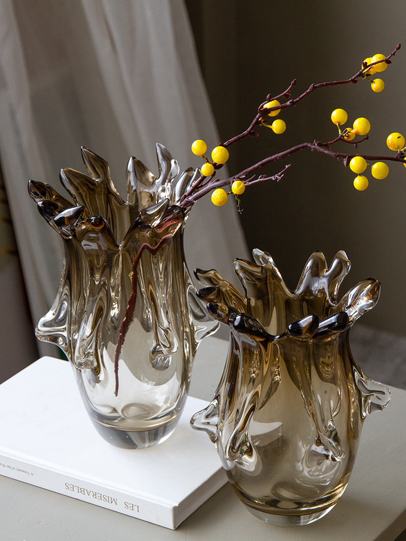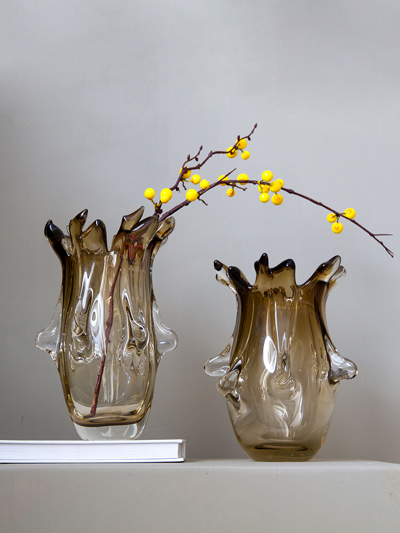 创意轻奢中古风单耳双色玻璃花瓶台面餐桌家居软装酒店陈列摆件品