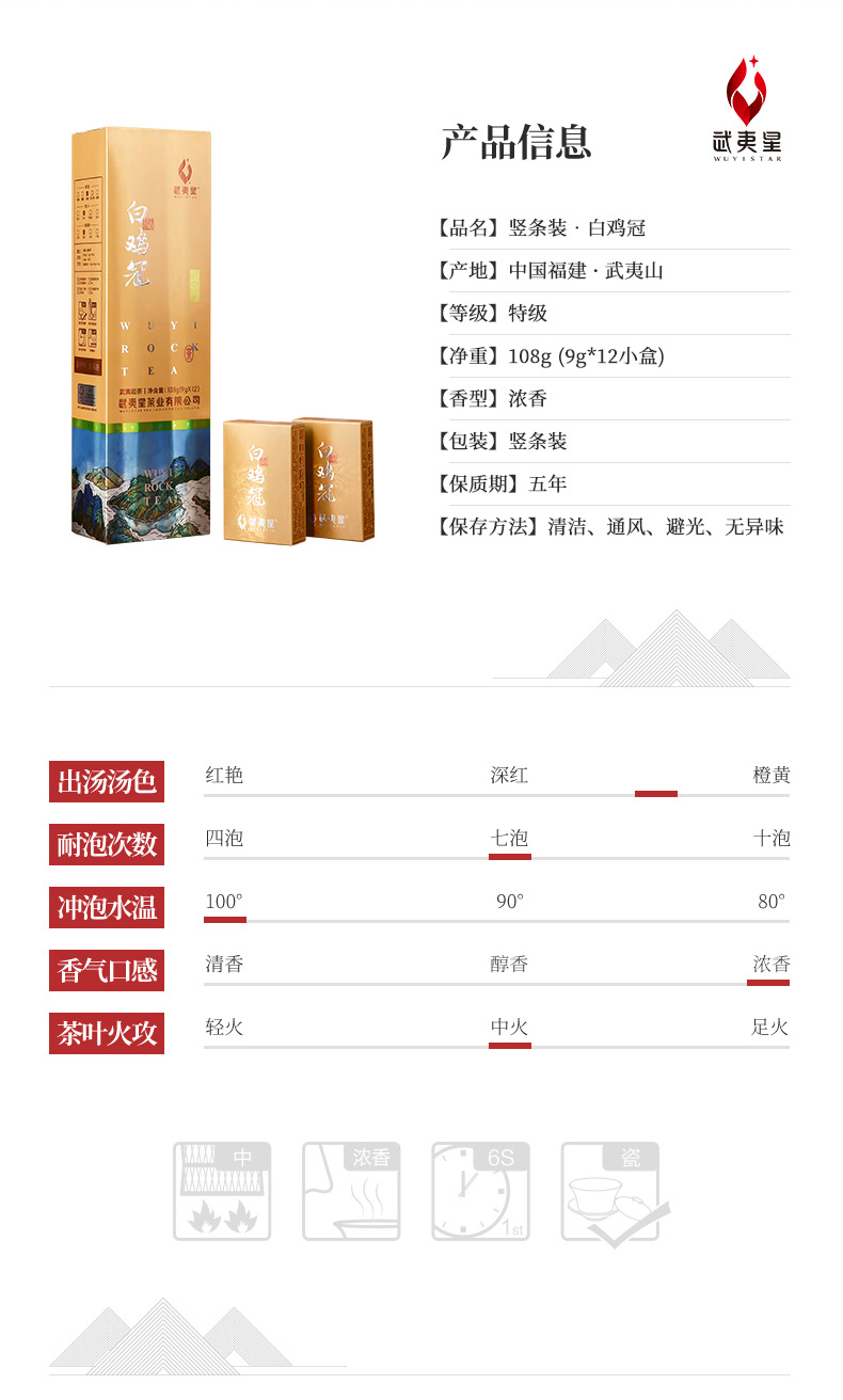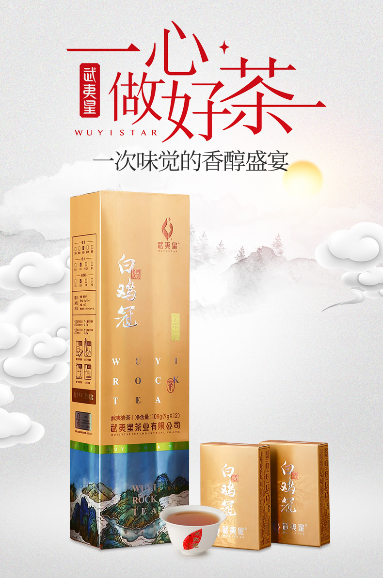 武夷星竖条装白鸡冠四大名枞特级乌龙茶武夷名枞茶叶108g浓香型茶