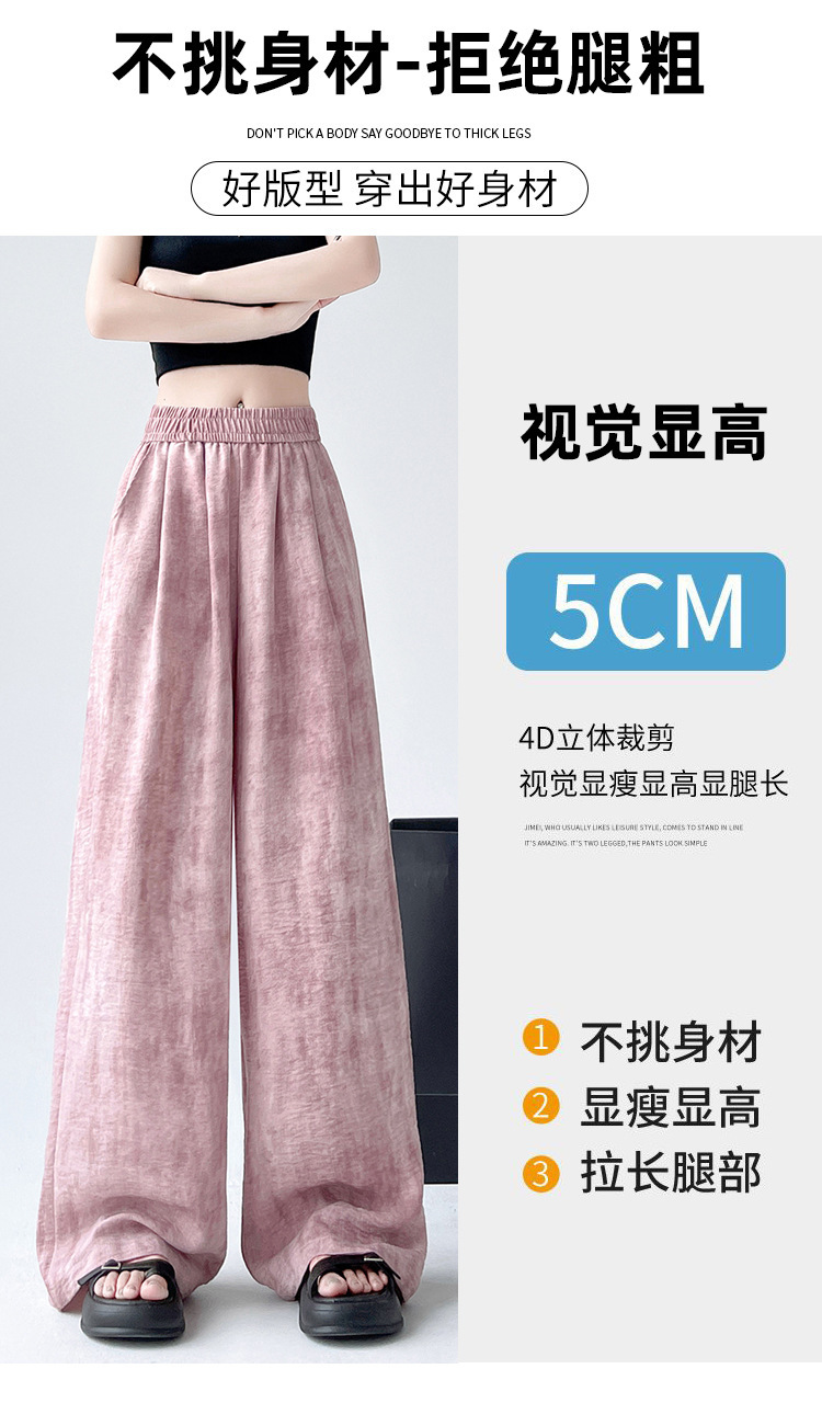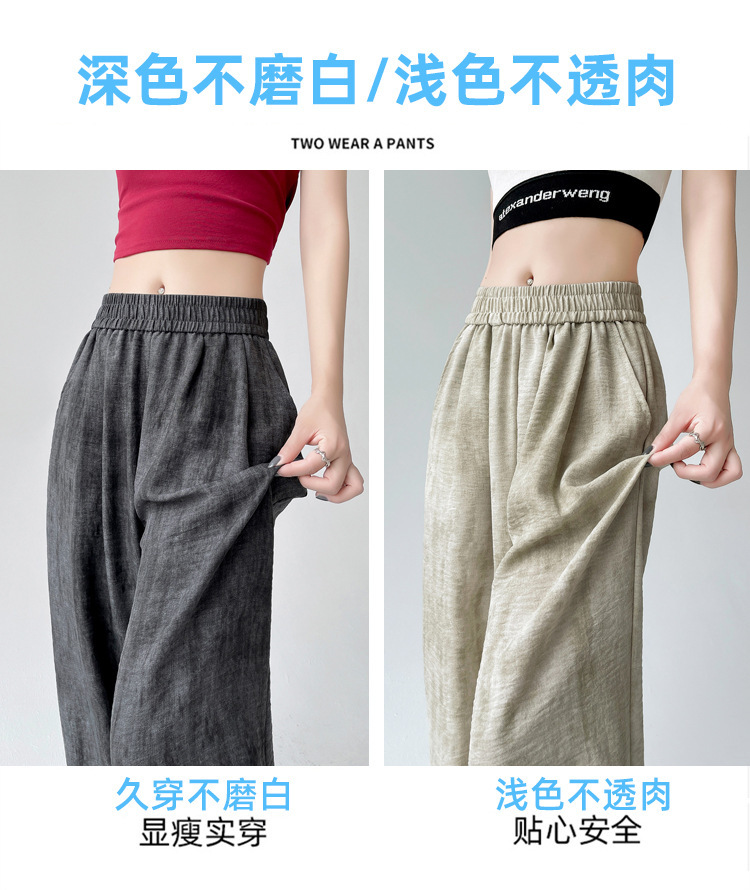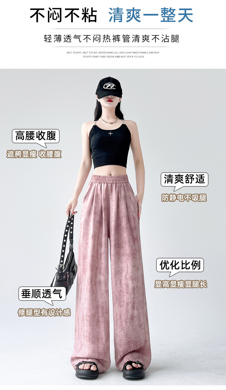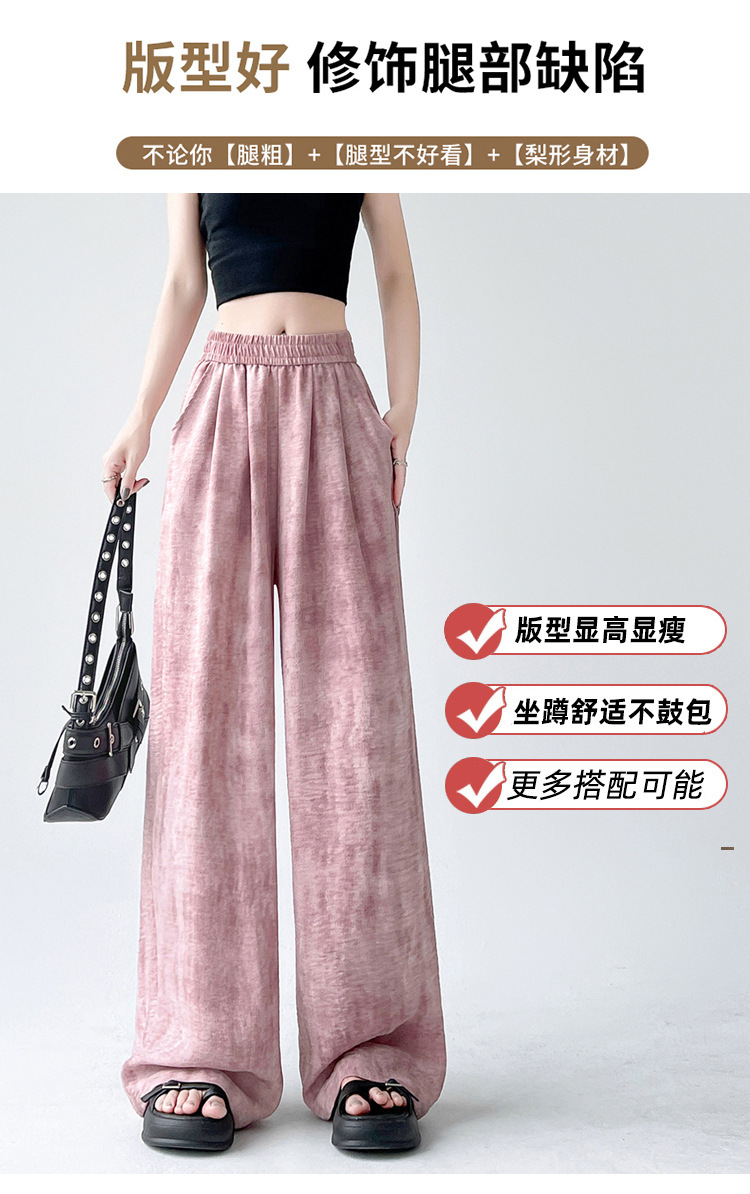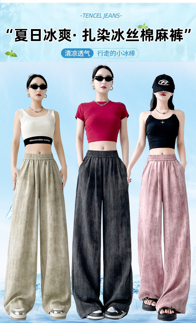 「冰丝扎染风阔腿裤!三色可选」棉麻夏季薄款防晒凉凉裤子休闲高腰垂感拖地长裤下装