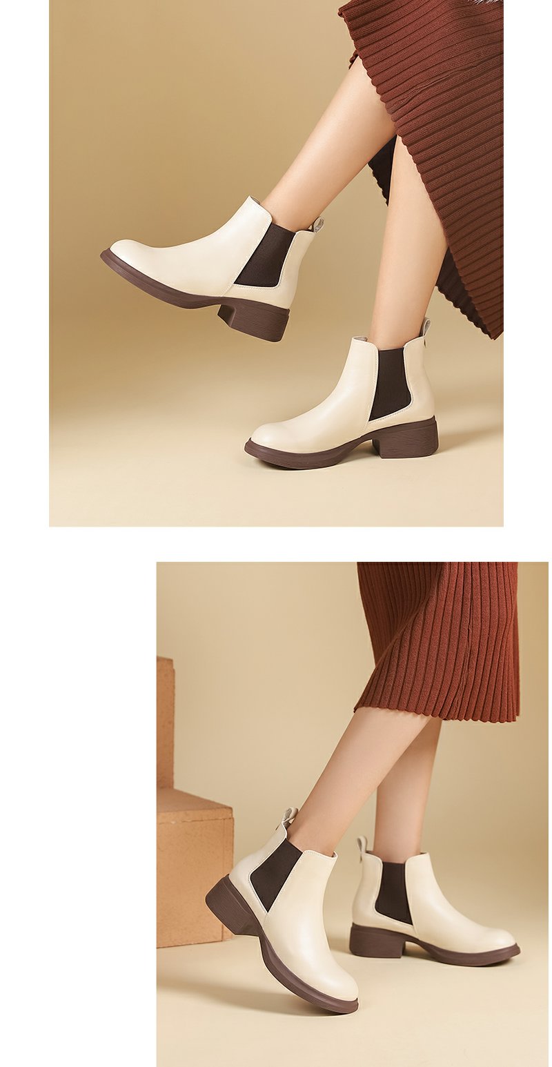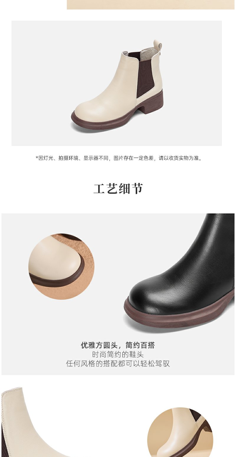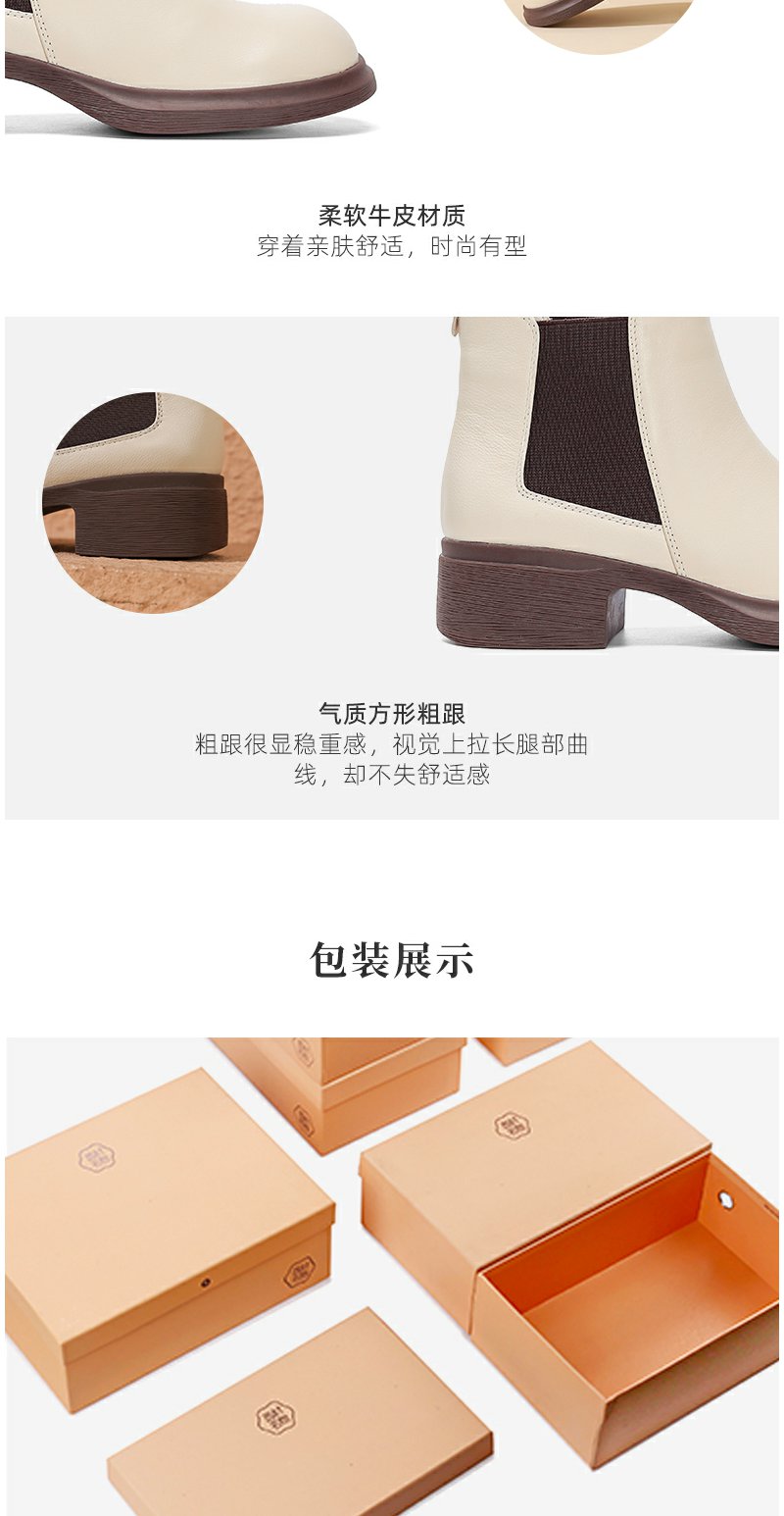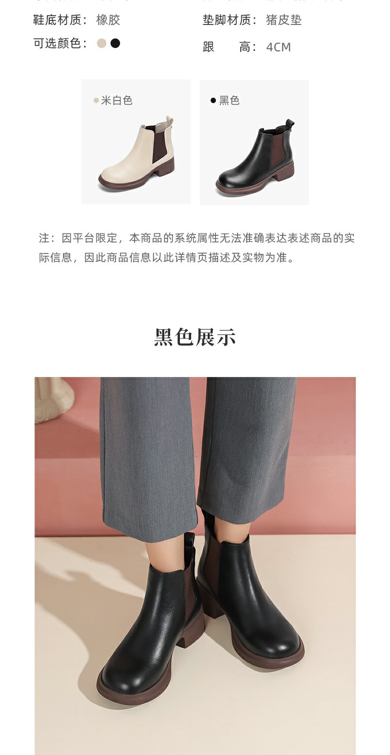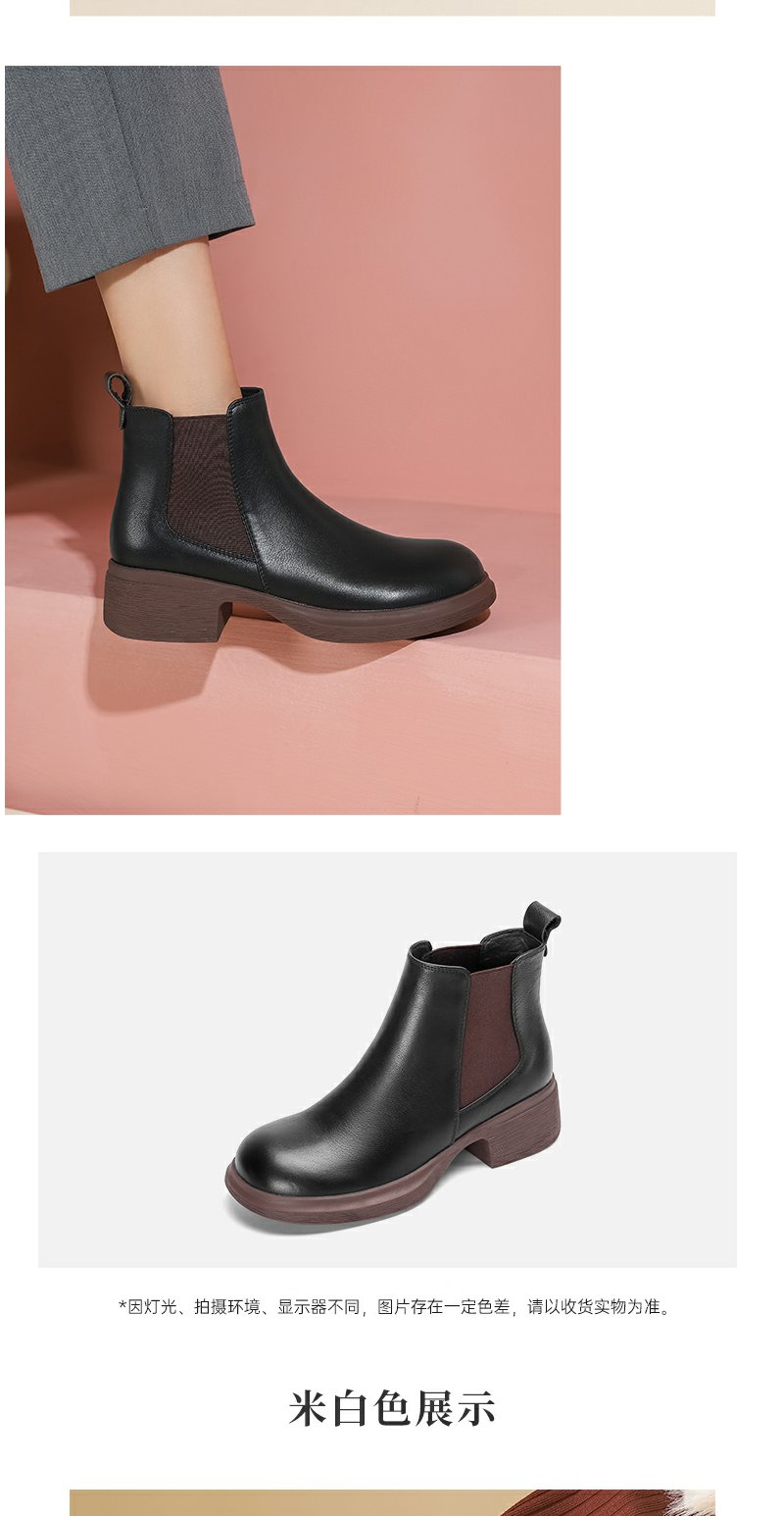西村名物女切尔西靴2022秋新款软底软面真皮短靴复古英伦风44601(加绒款)