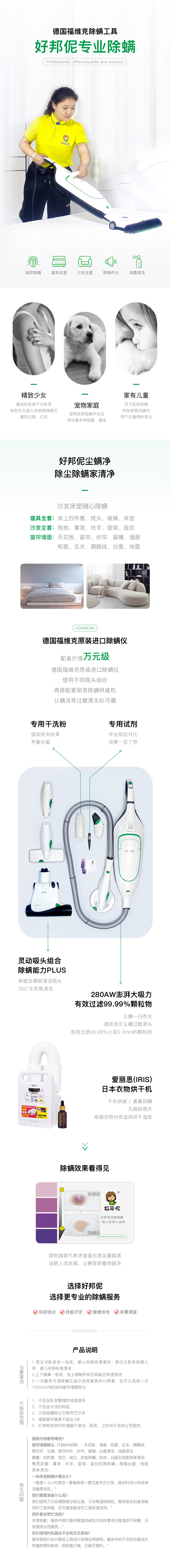 4.一次可选除螨五座沙发或寝具共计两套,也可以选择一次120㎡以内的房间窗帘墙壁除尘