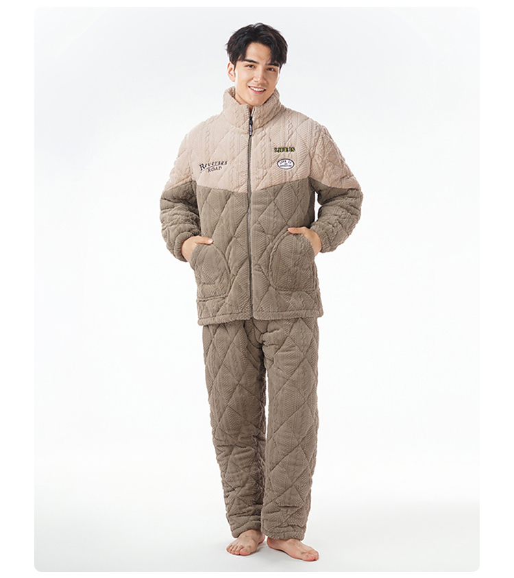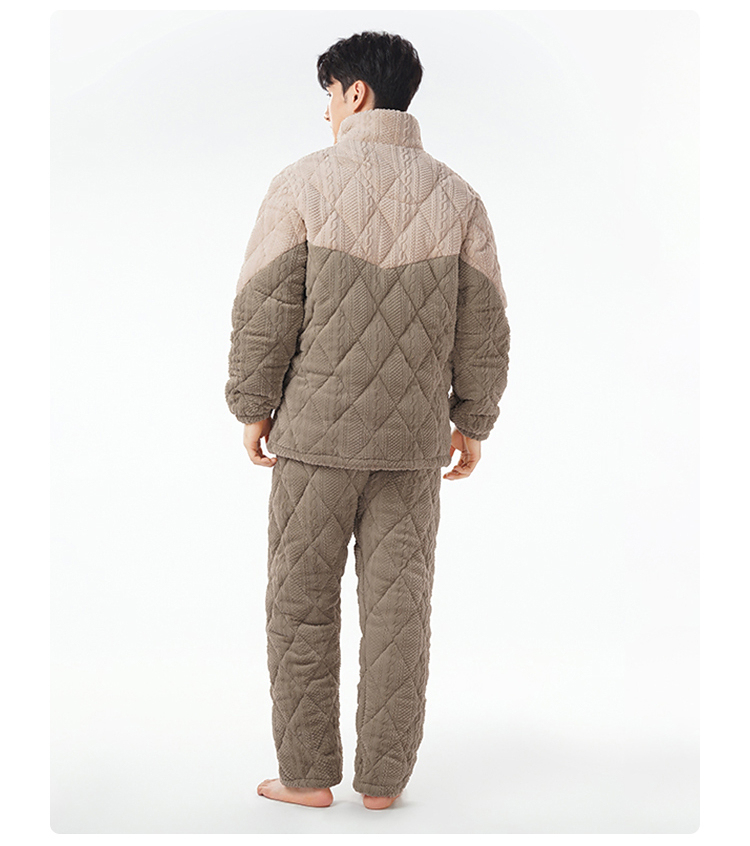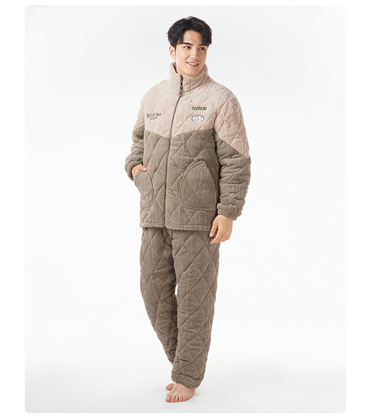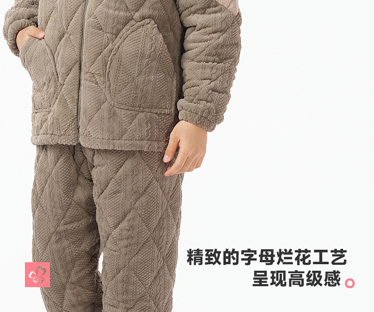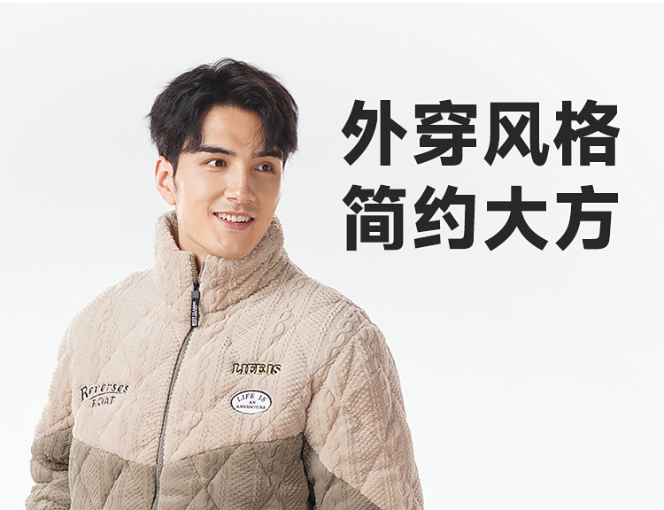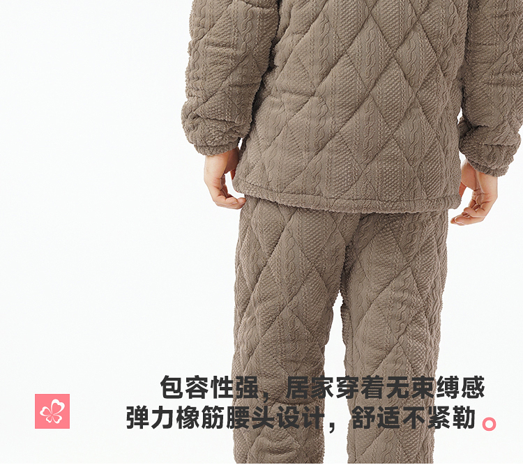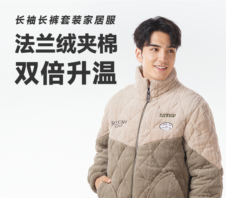都市丽人睡衣法兰绒烂花男士家居服长袖长裤加厚夹棉套装FHH1E7