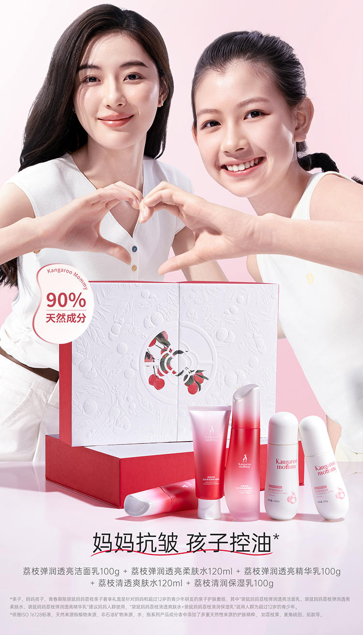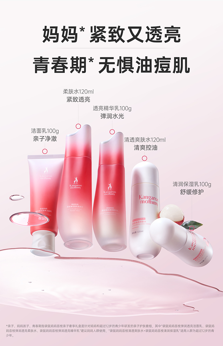【亲子护肤礼盒5件套】改善肌肤细纹暗沉 舒缓控油修护 3重植萃精华 荔枝亲子奢享礼盒