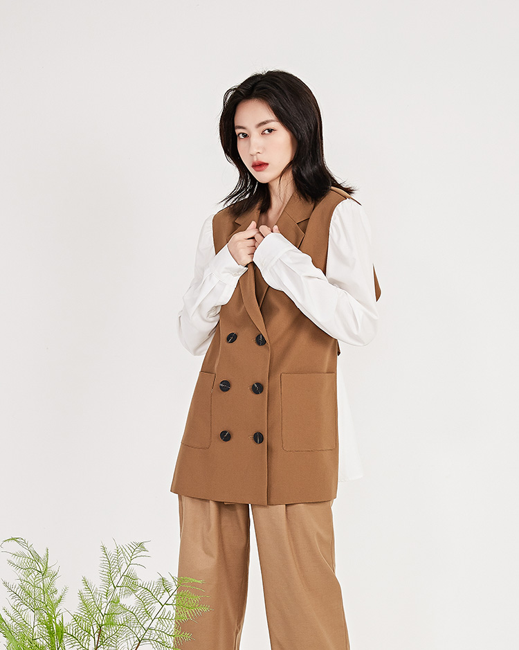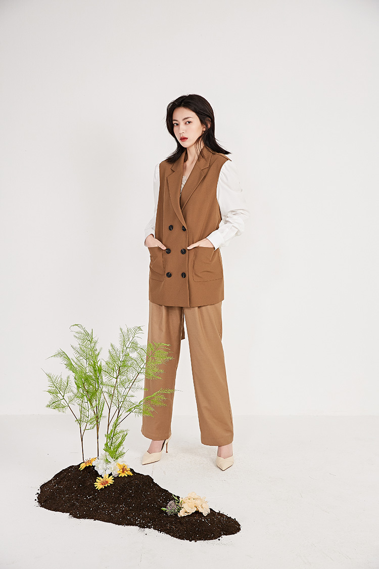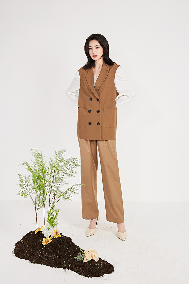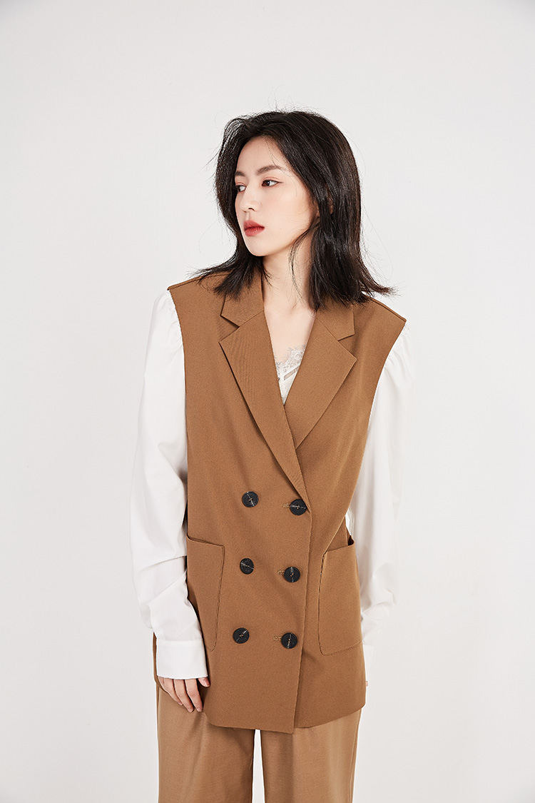 NUTS春秋季时尚通勤简约气质长款双排扣中外套西装女211042067
