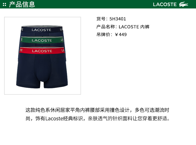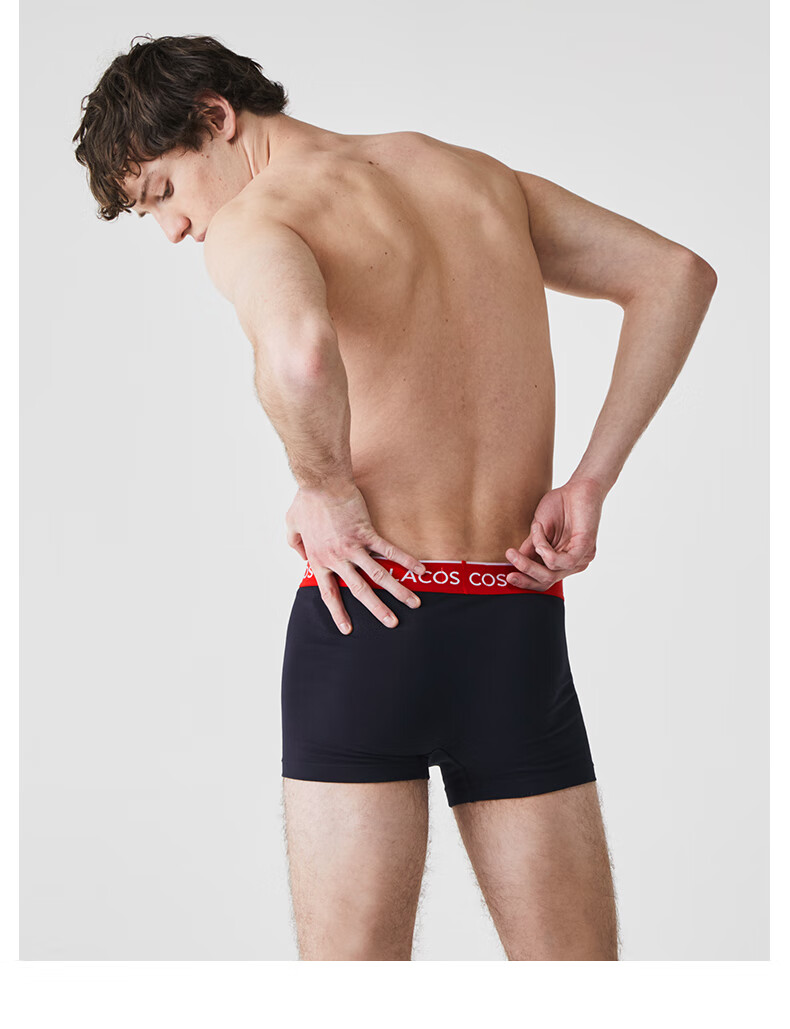 【海南专供价】Lacoste法国鳄鱼男装撞色休闲舒适透气居家3条装内裤男5H3401-10