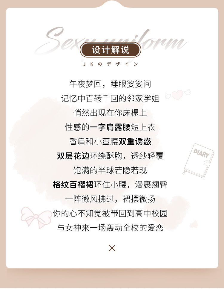 【暖心学姐】情趣内衣 一字肩 露腰 格子 学院风 套装 包邮 型号:7961 包邮