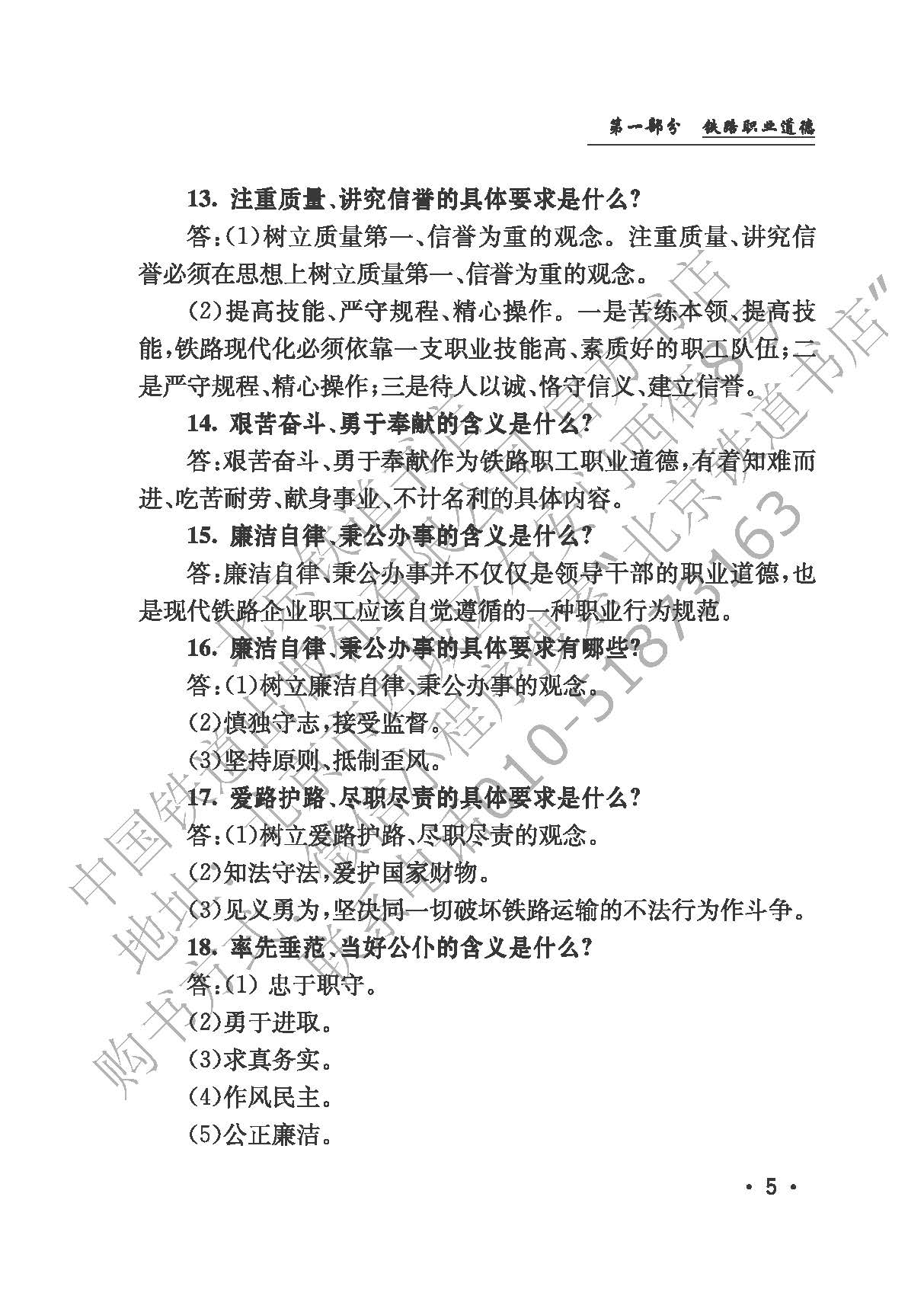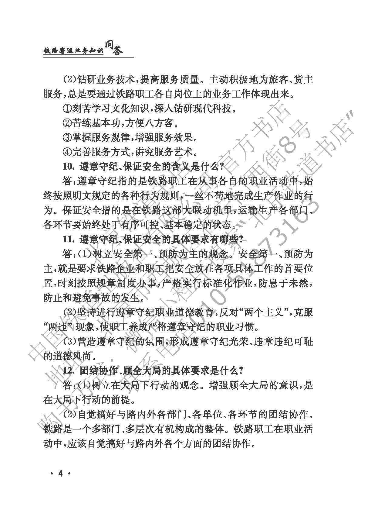 本书的编写本着实际、实用的原则,对铁路职业道德,民法典等法律法规相关知识;铁路安全相关知识,《铁路技术管理规程》相关知识,铁路旅客车票实名制管理、电子客票等客运规章相关知识,客运站旅客服务作业及应急处置,以及国铁集团相关文件等涉及铁路客运业务的知识进行了全面的梳理和归纳总结。全书采用问答的形式,简单易学,通俗易懂,力求做到表达准确、重点突出、结构严谨、切合实际。