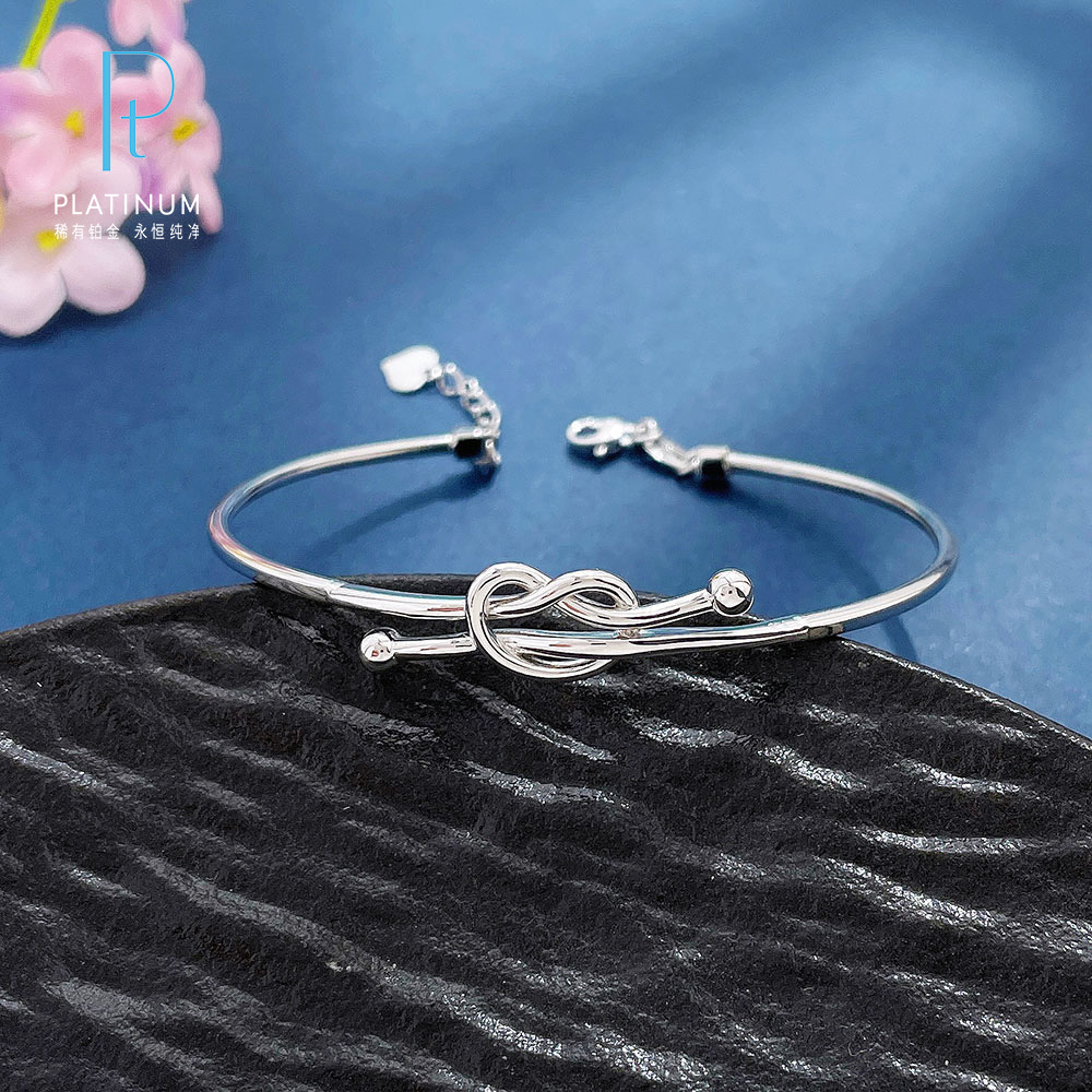 【限时8.8折】PT950 #怦然心动 【国际铂金协会】铂金镂空开口手镯情人结爱心结C字可调节链尾手镯(BSZ00144)预售产品下单后不退款不退货不换货不补差价)