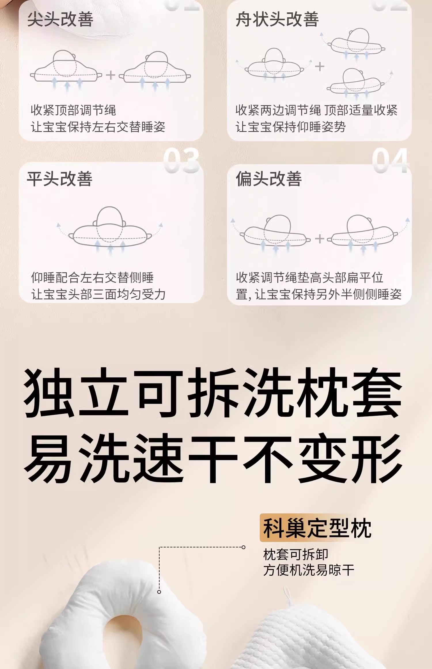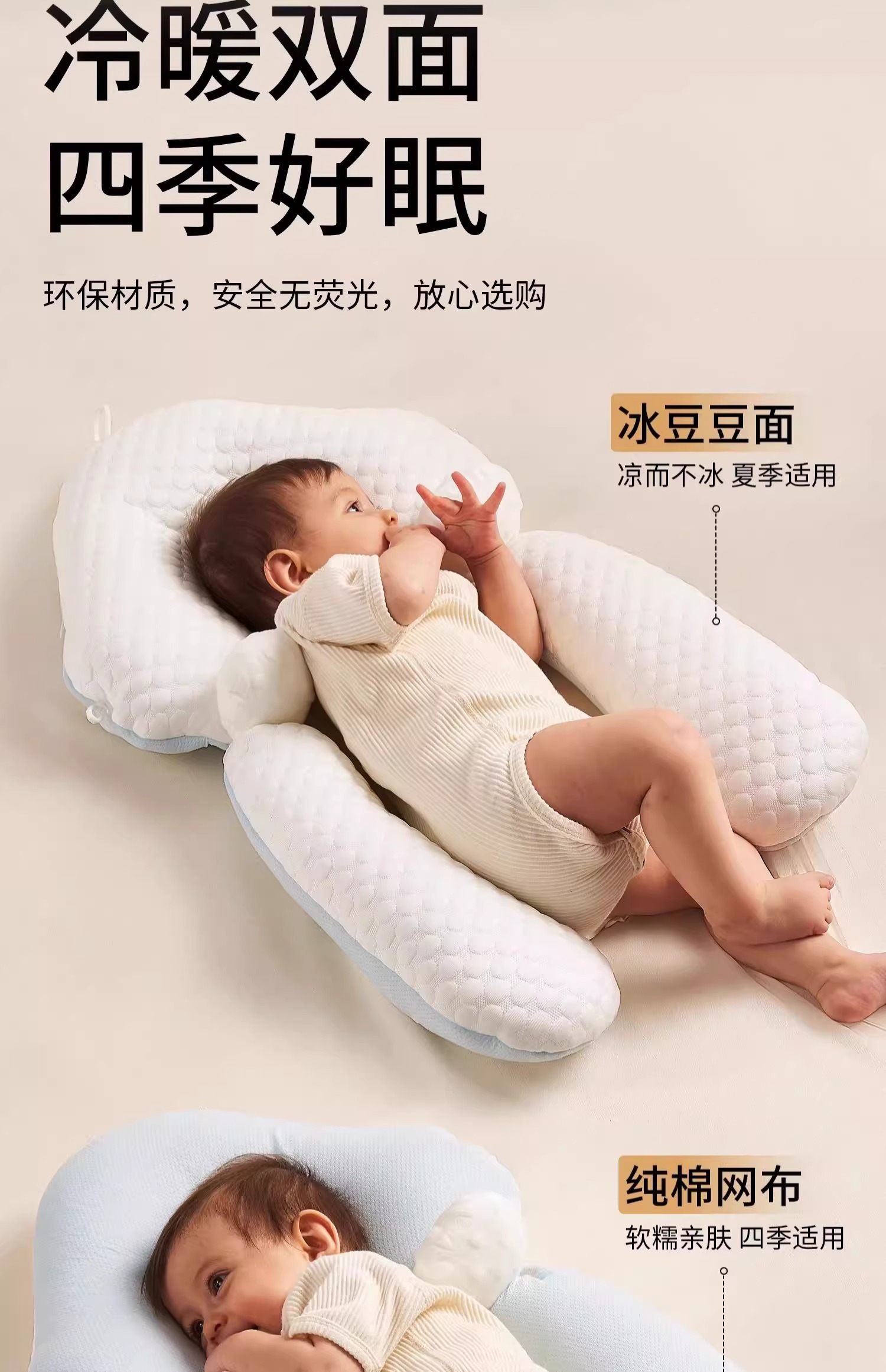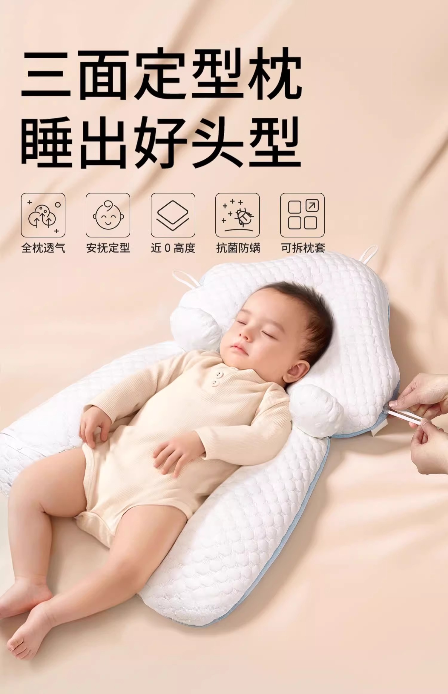 科巢婴儿定型枕头纠正防偏头新生儿宝宝安抚0到6个月夏季睡觉神器