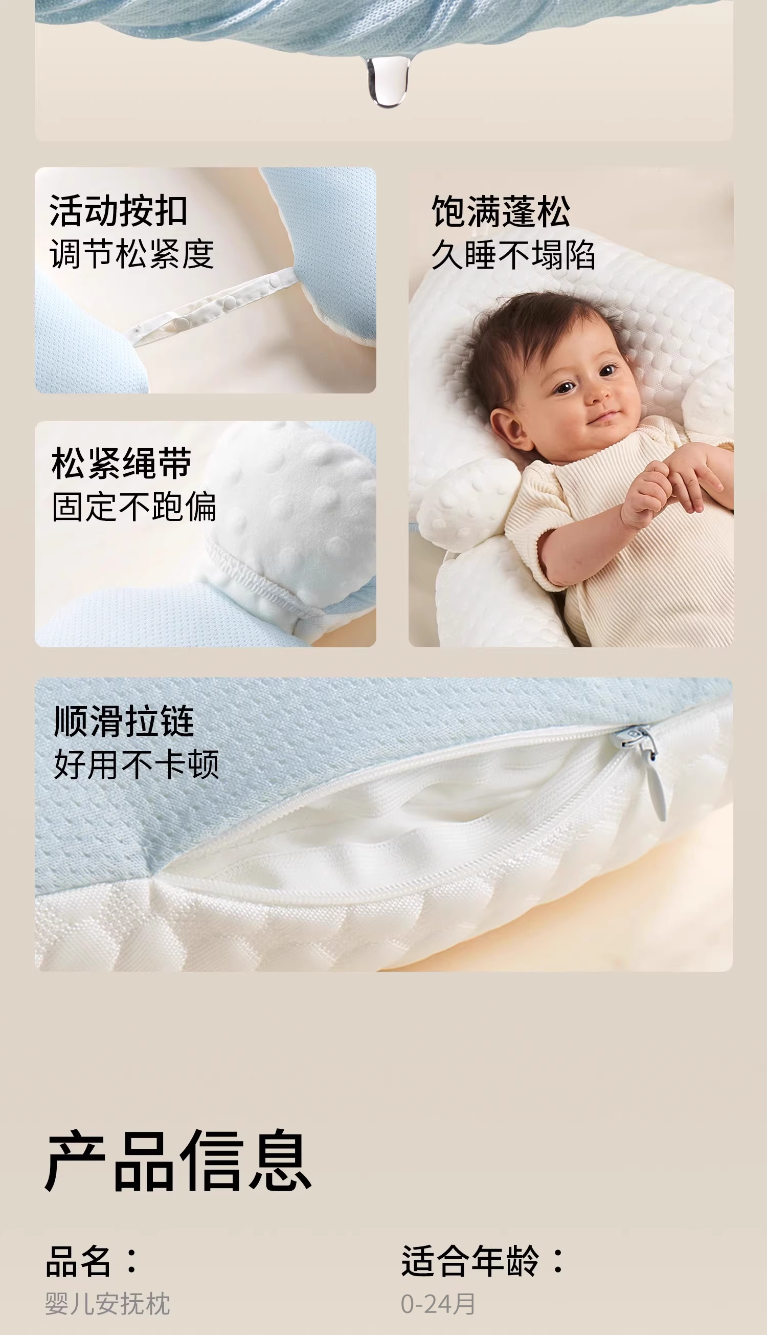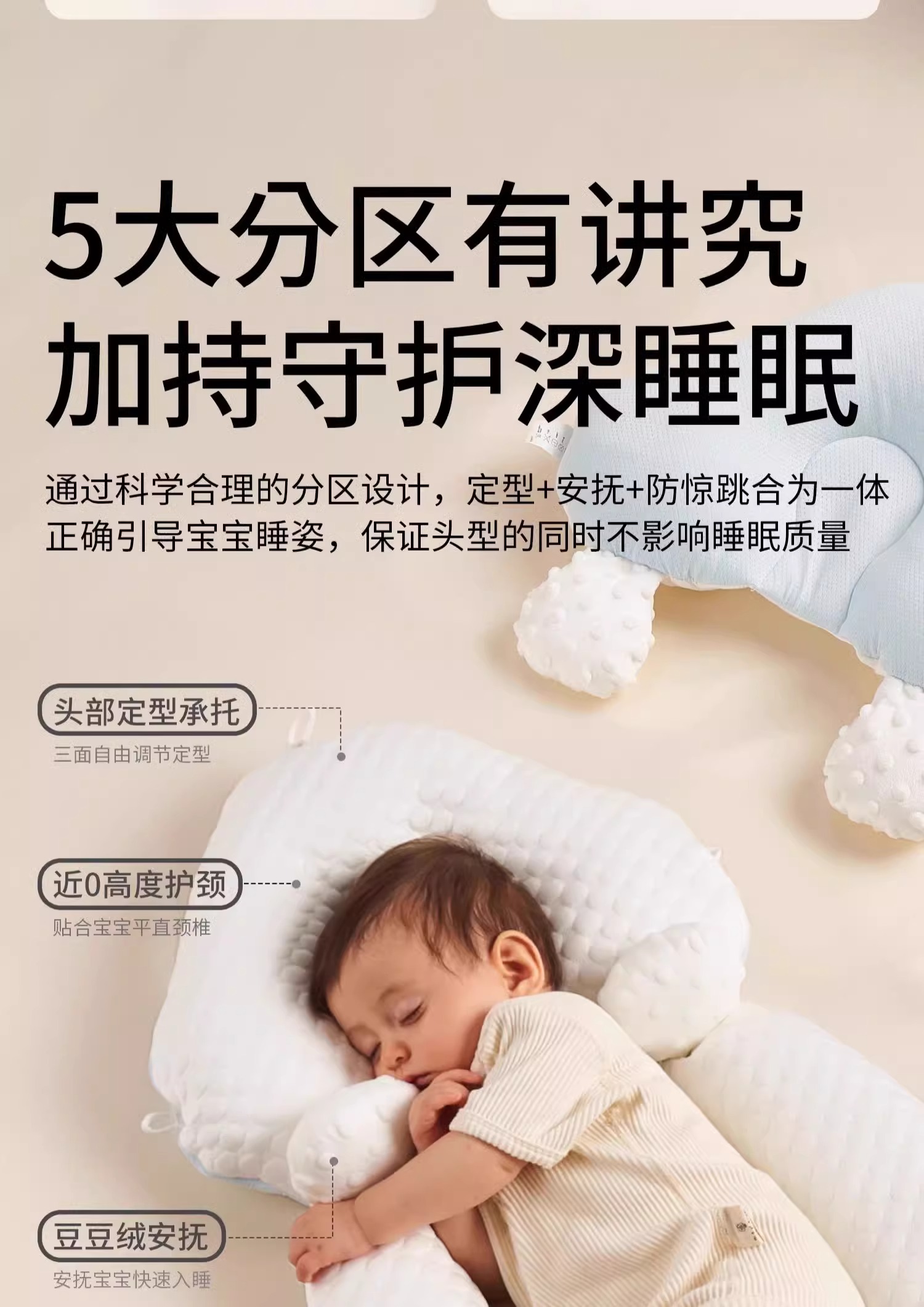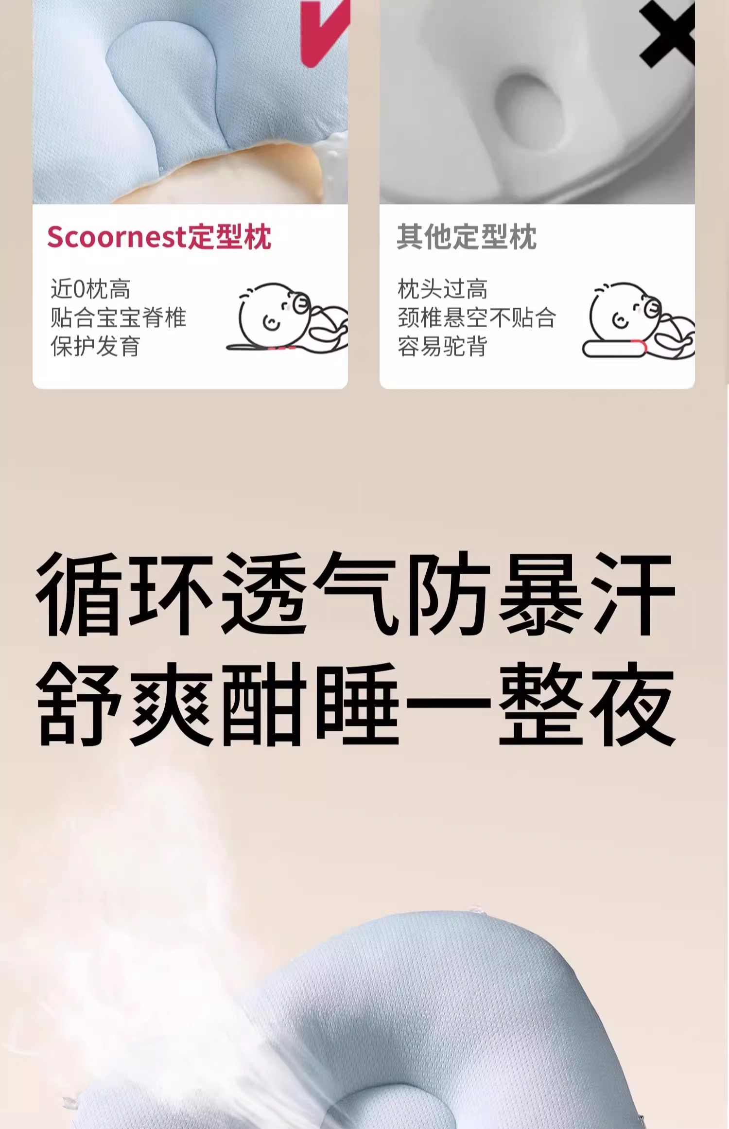 科巢婴儿定型枕头纠正防偏头新生儿宝宝安抚0到6个月夏季睡觉神器