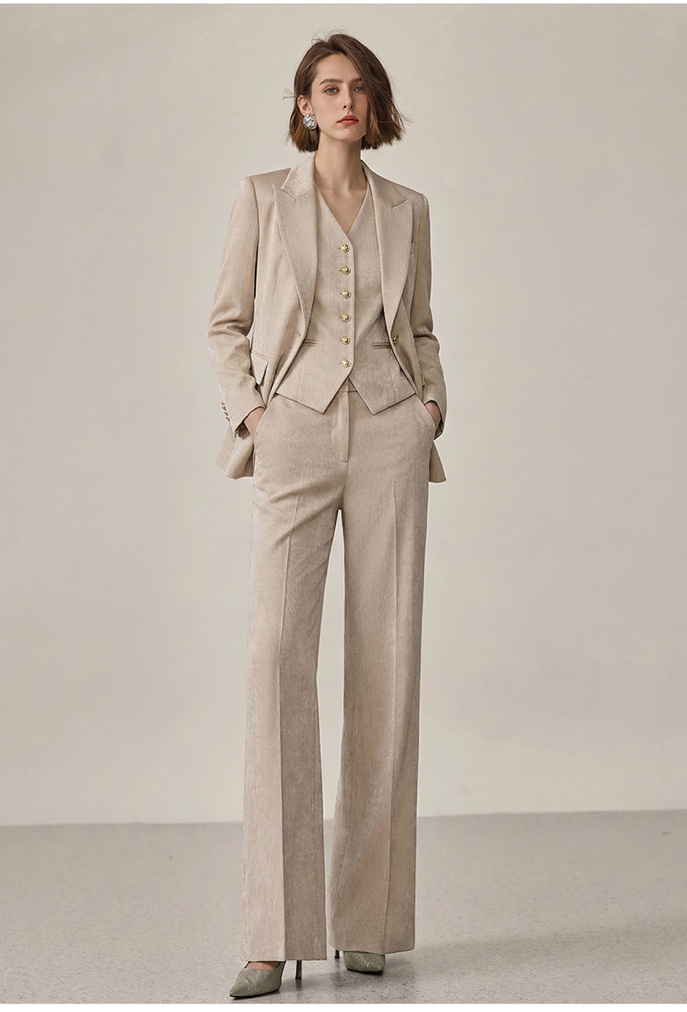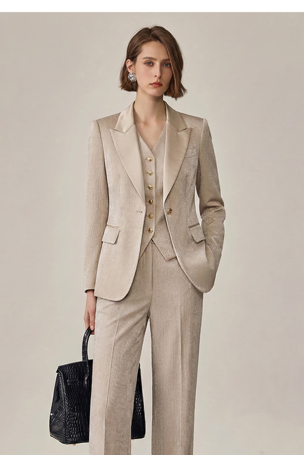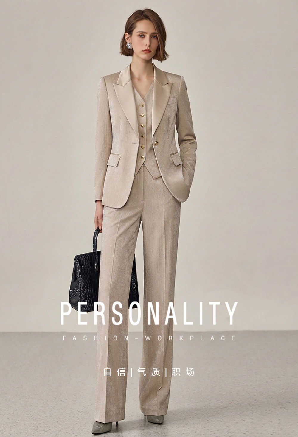 IWY/轻奢金丝肌理感槟色西装套装女新款播音主持人正装马甲三件套职业装正式场合WCVP339