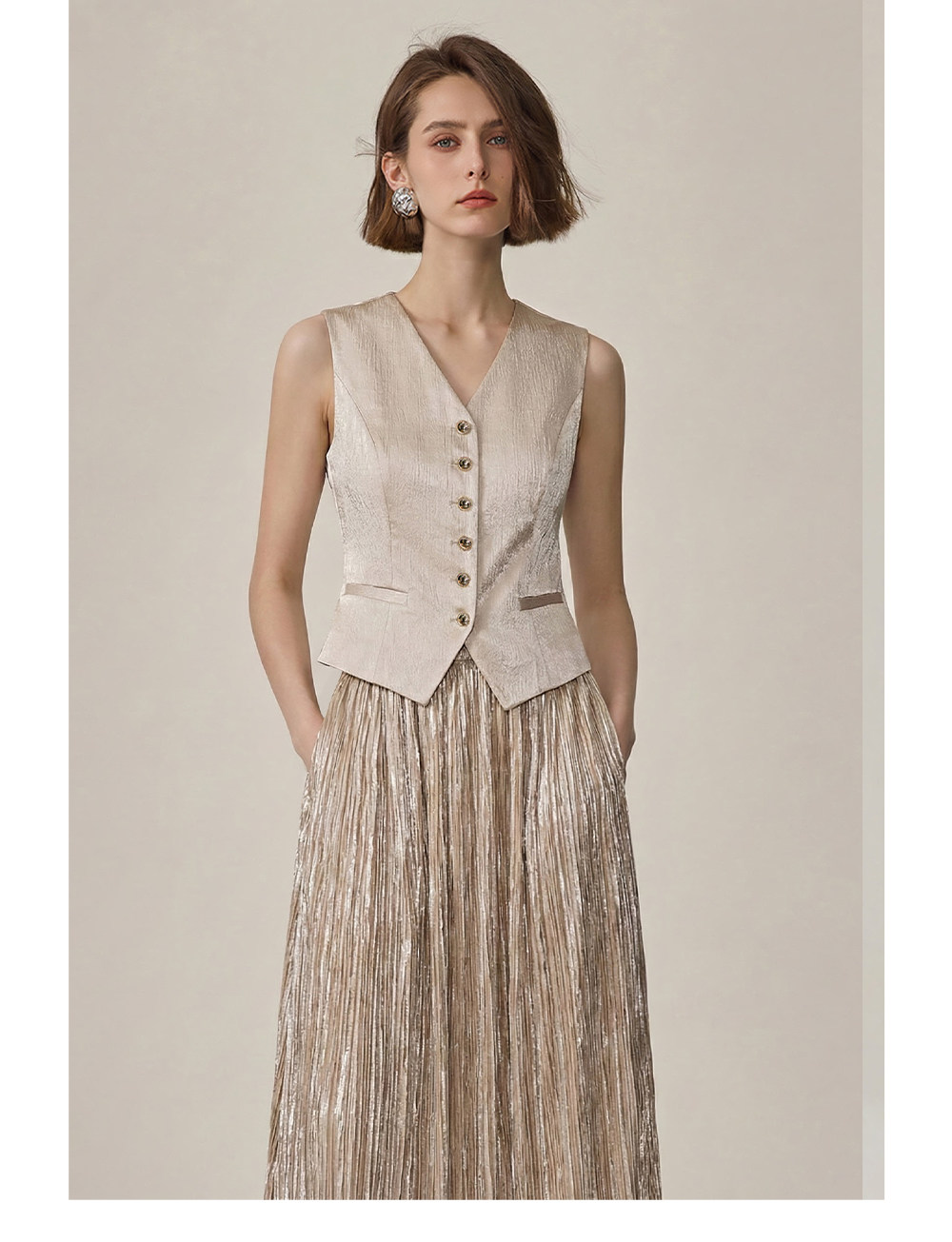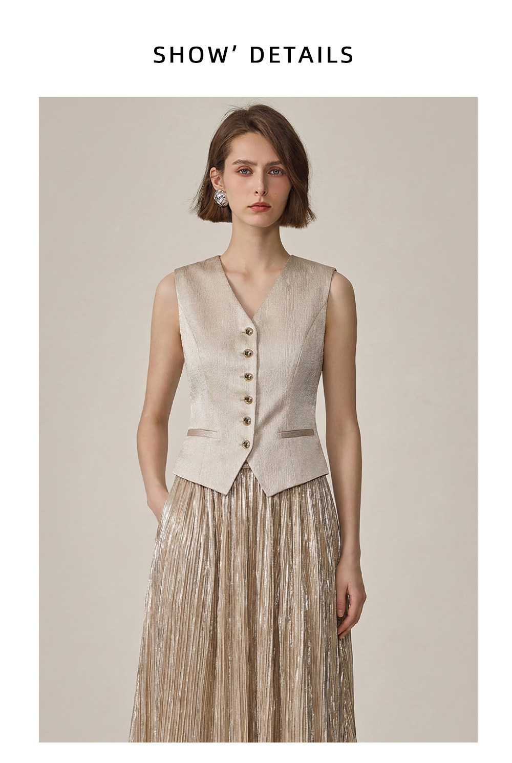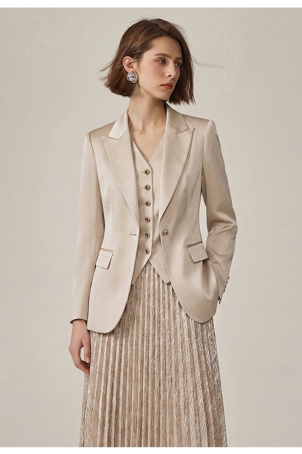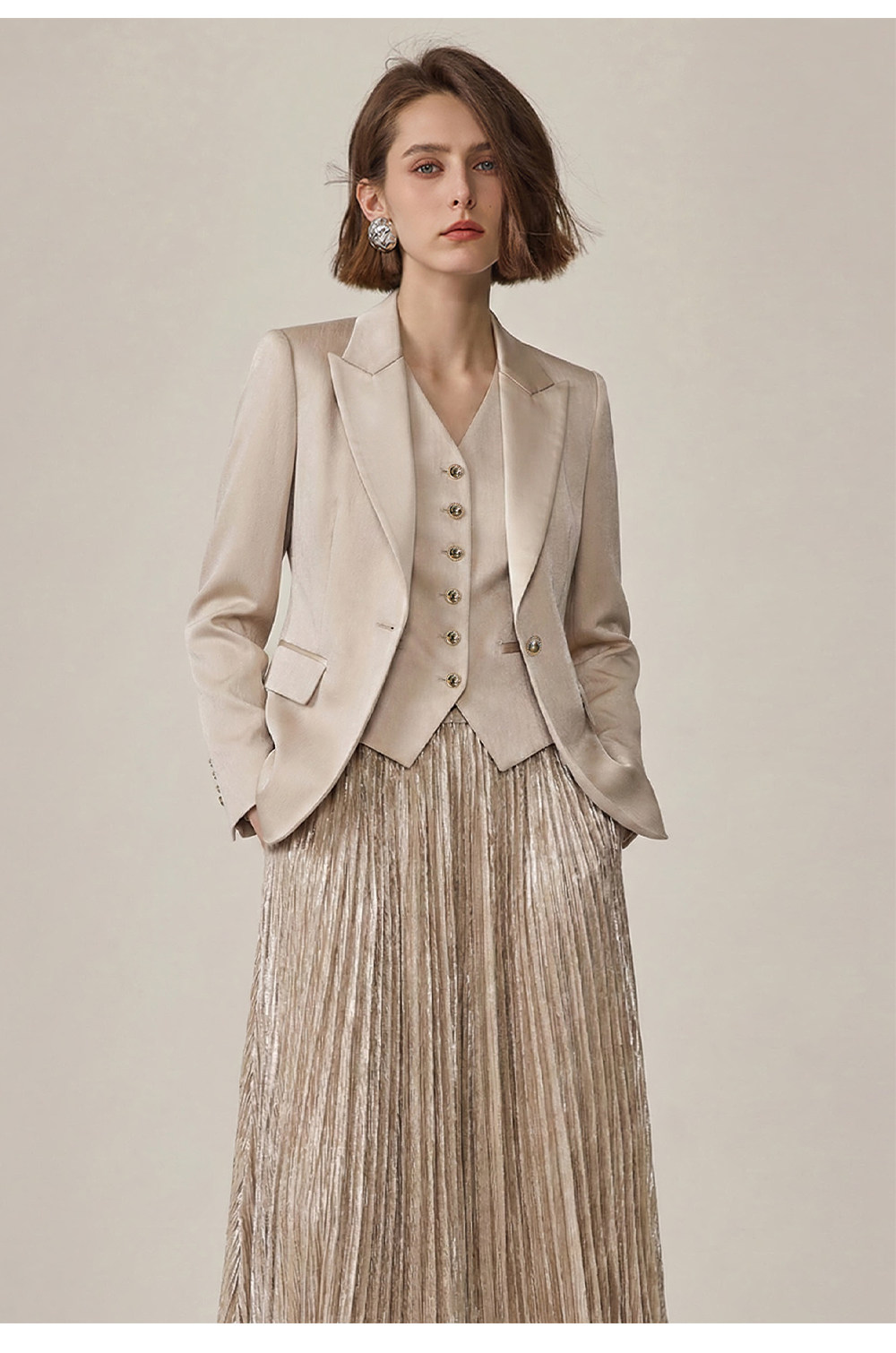 IWY/轻奢金丝肌理感槟色西装套装女新款播音主持人正装马甲三件套职业装正式场合WCVP339