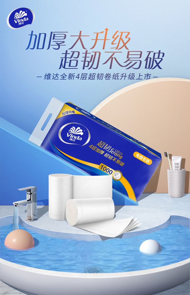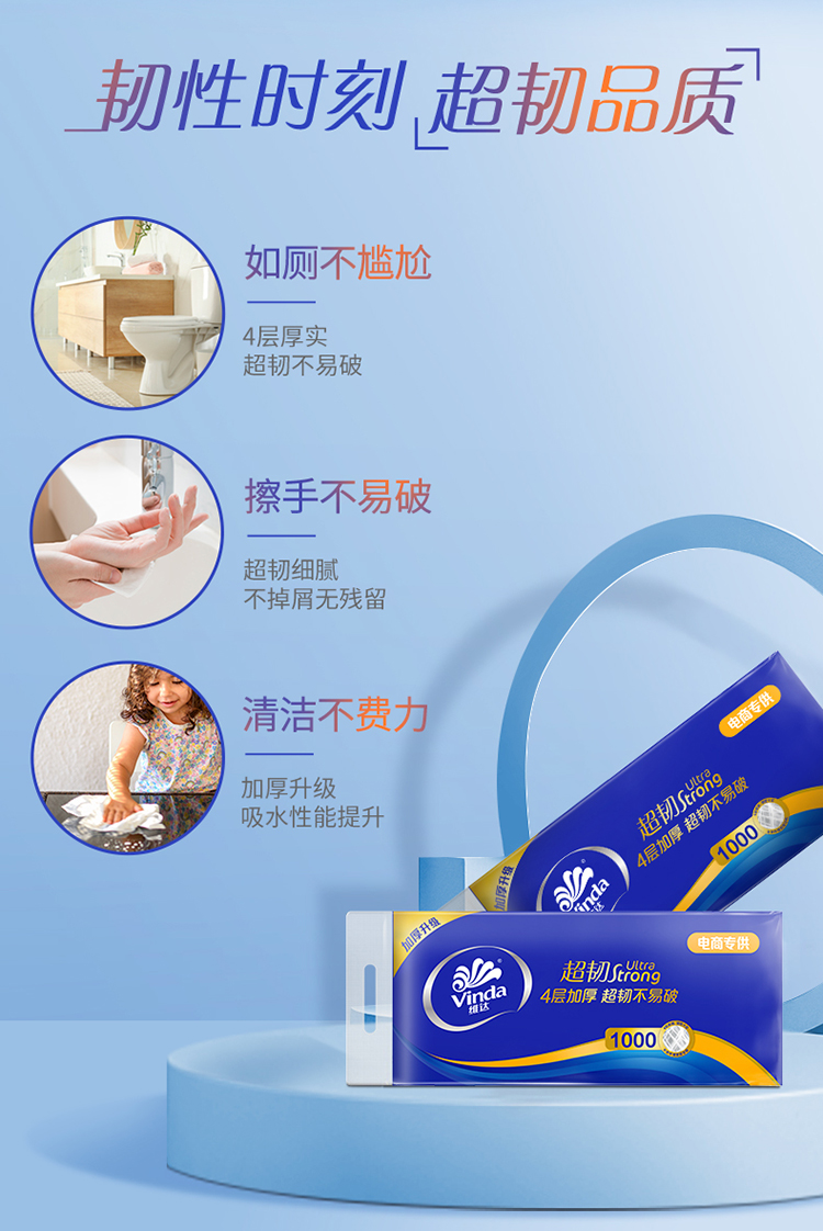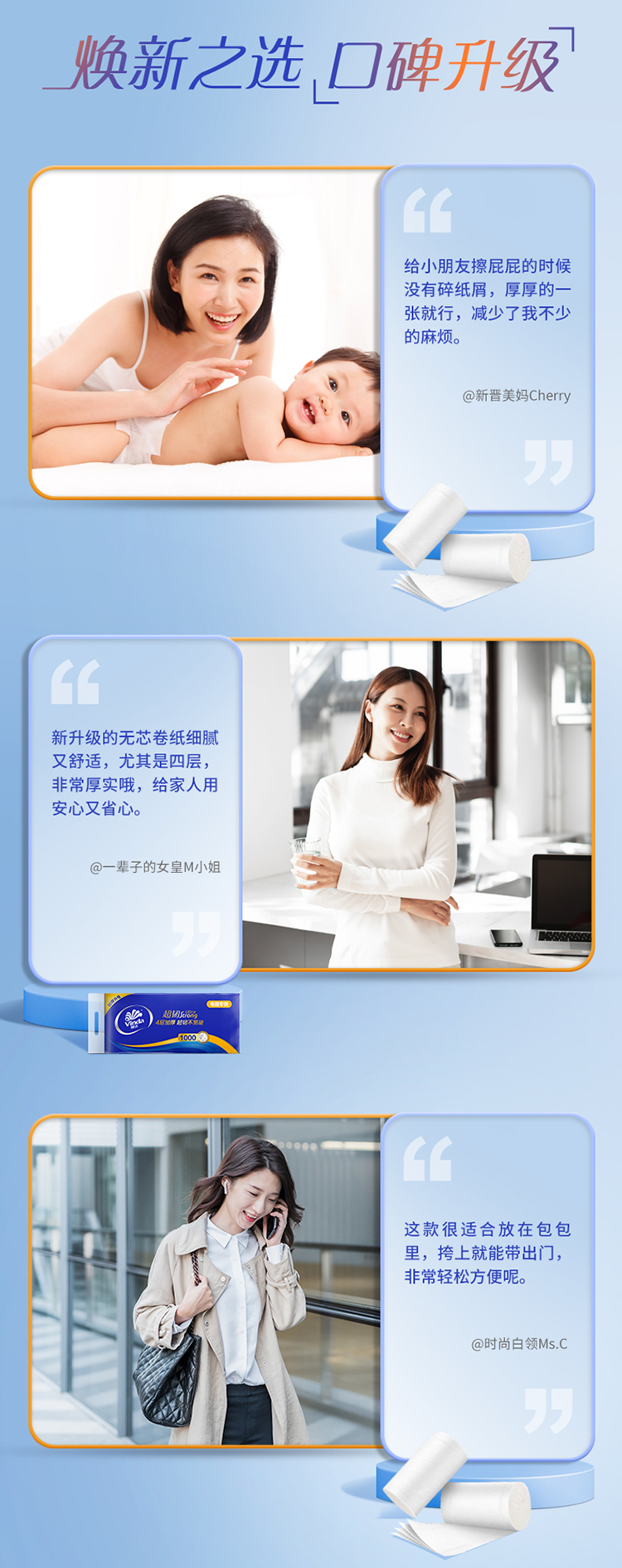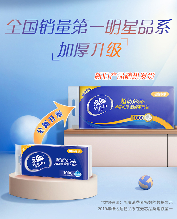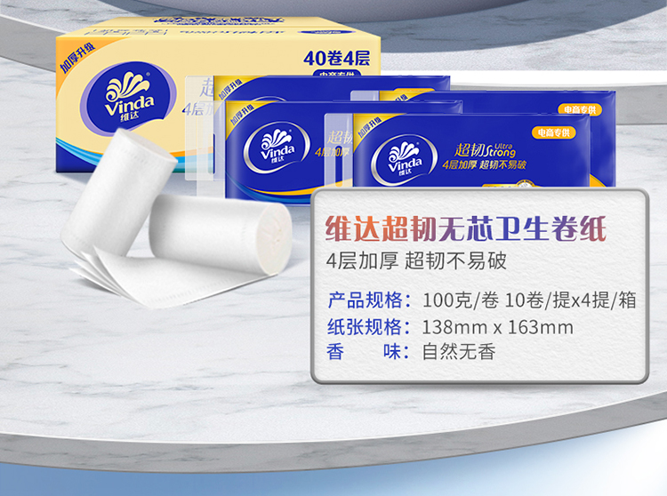 【官方包邮】维达超韧韧性升级家庭实惠装无芯卫生卷纸 4层100g40卷箱装(自然无香)