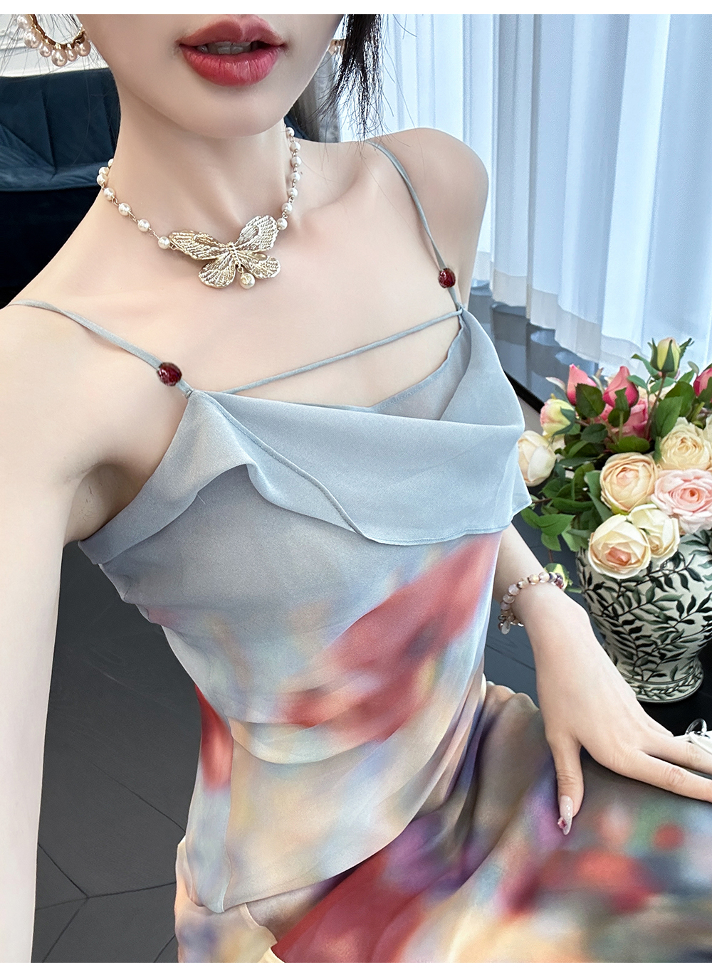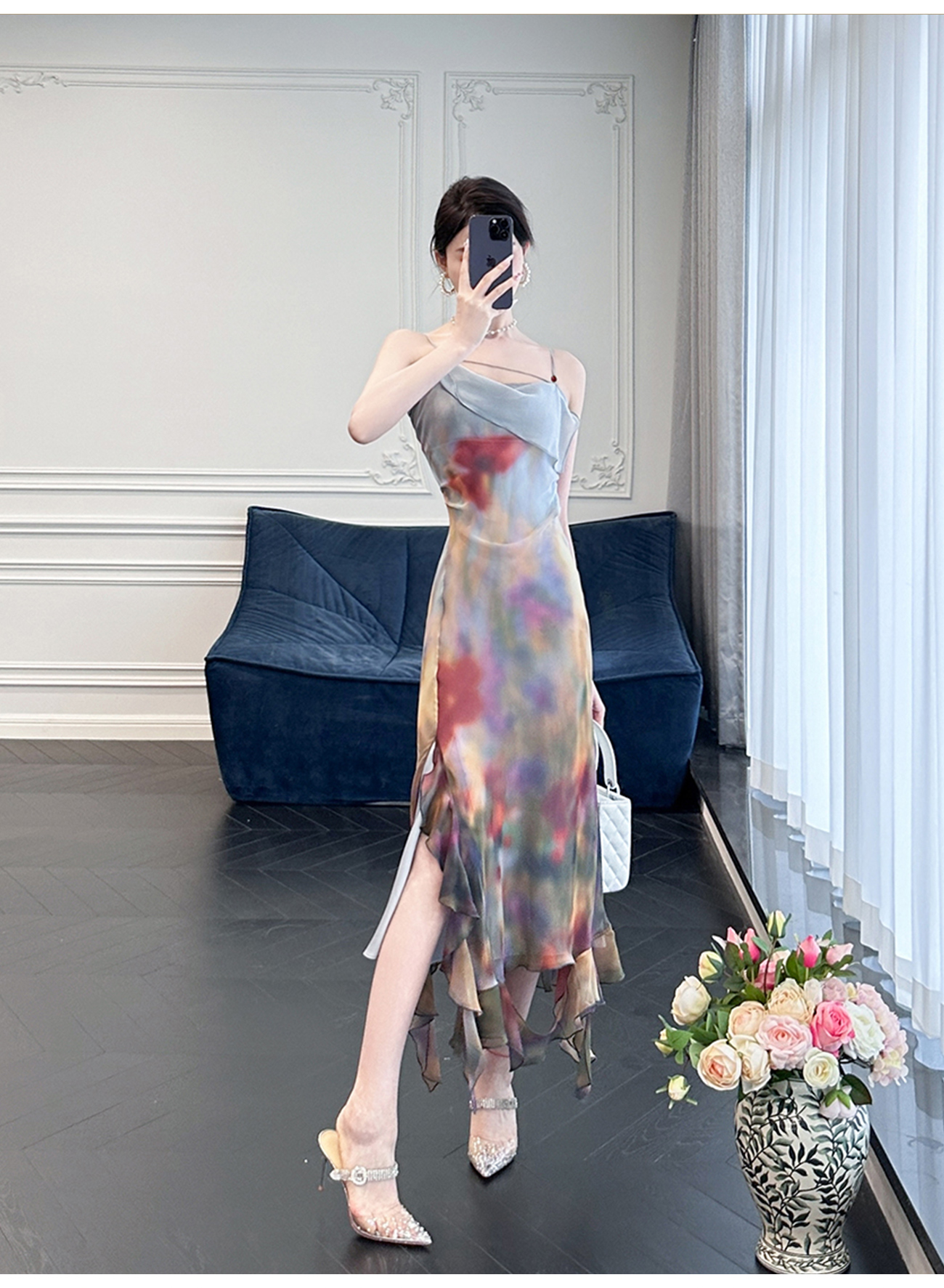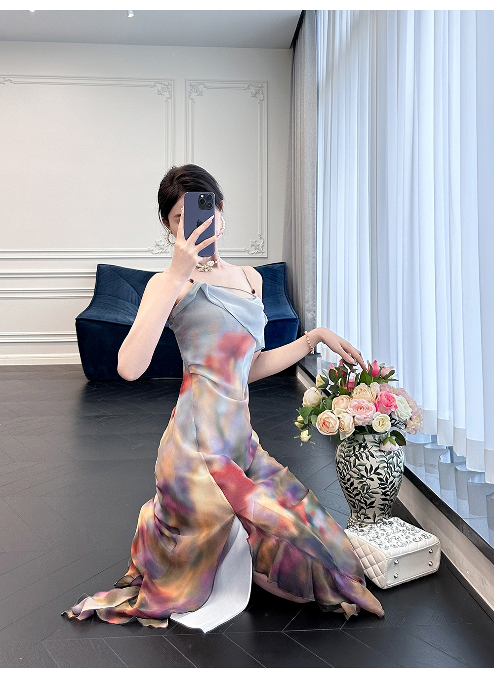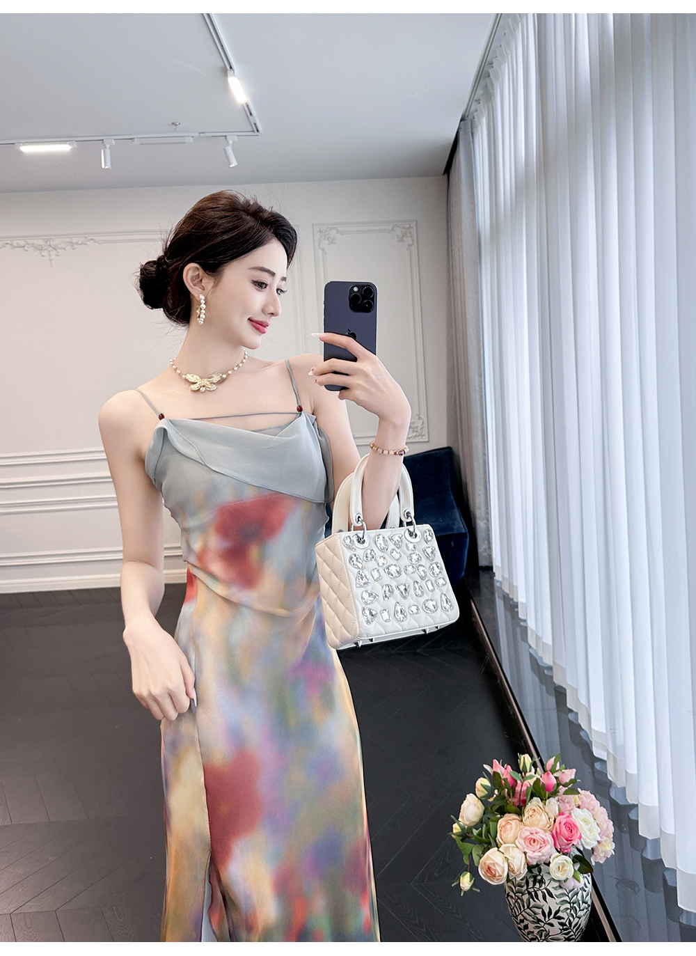 余潇潇【玫瑰庄园】舒适时尚捏褶收腰浪漫印花修身连衣裙
