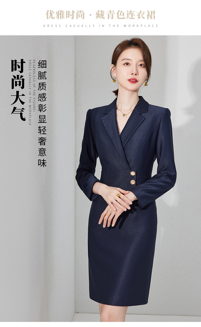 IWY/时尚藏青色西装连衣裙女气质收腰显瘦职业裙22Q232