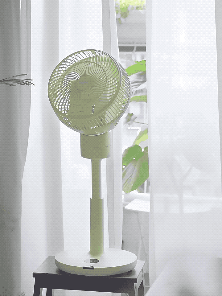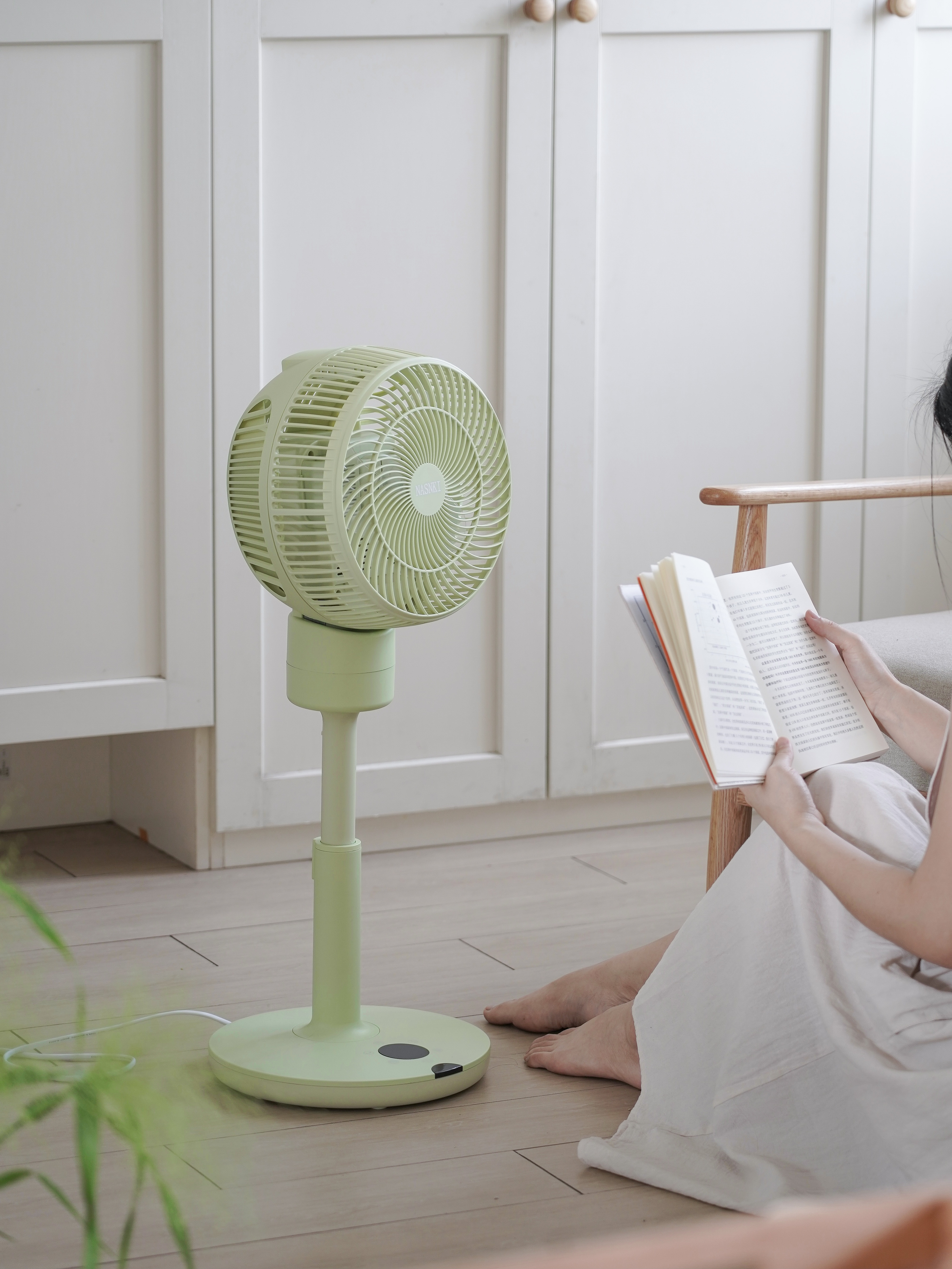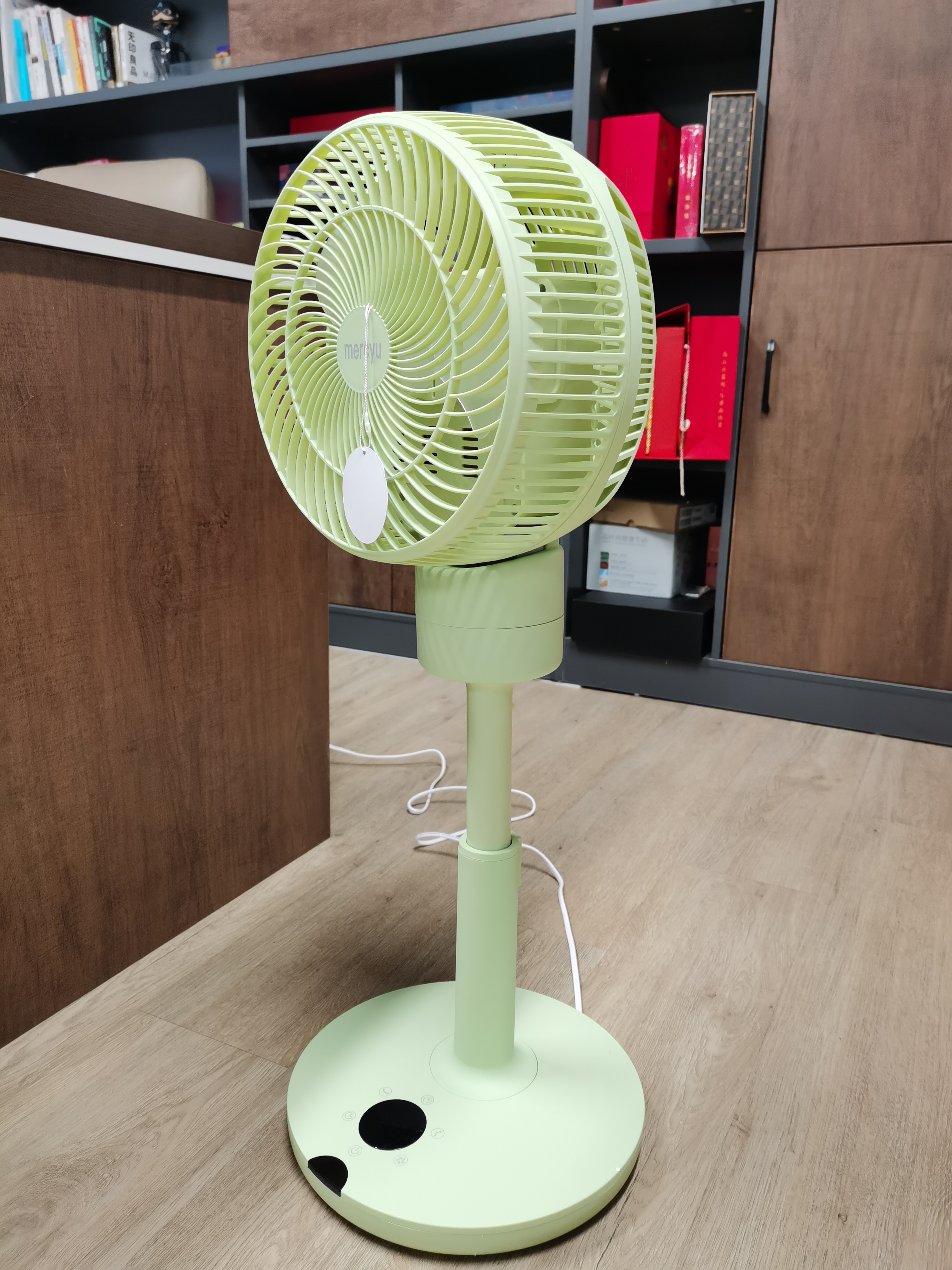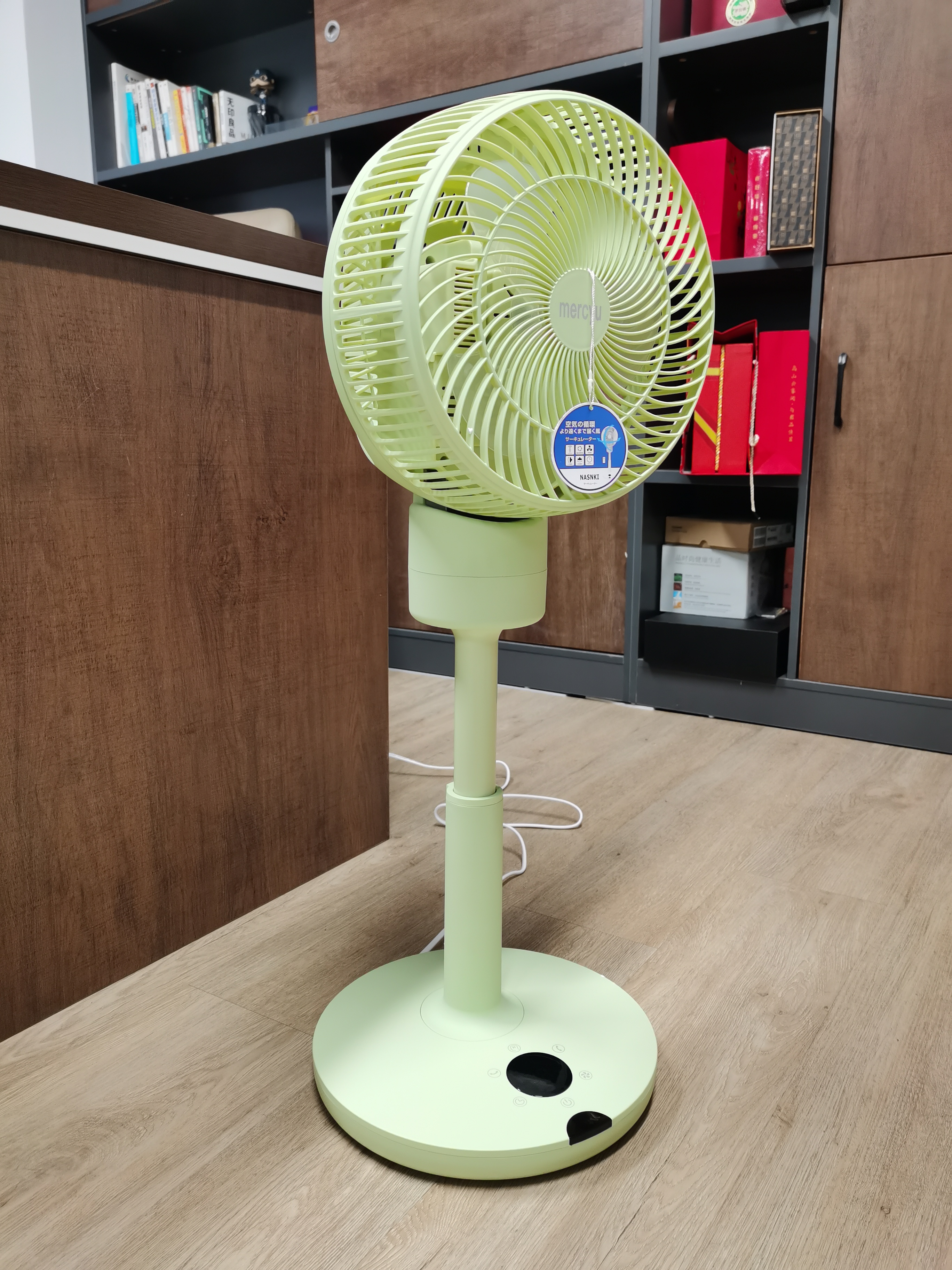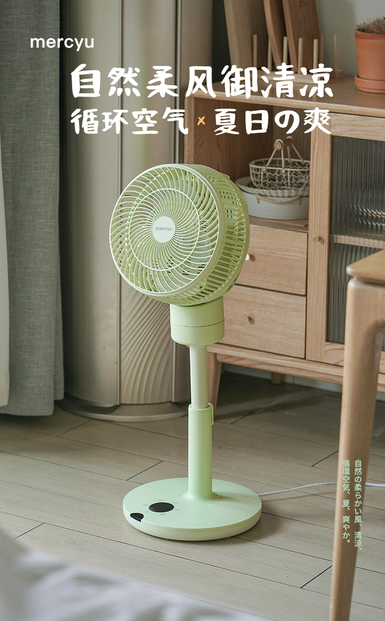 1:强风不硬吹,直吹不头疼;日常电风扇是扇叶驱动空气流动,直接送出硬风;摩秀循环扇设计为大倾角螺旋扇叶,变频电机风量足而不硬