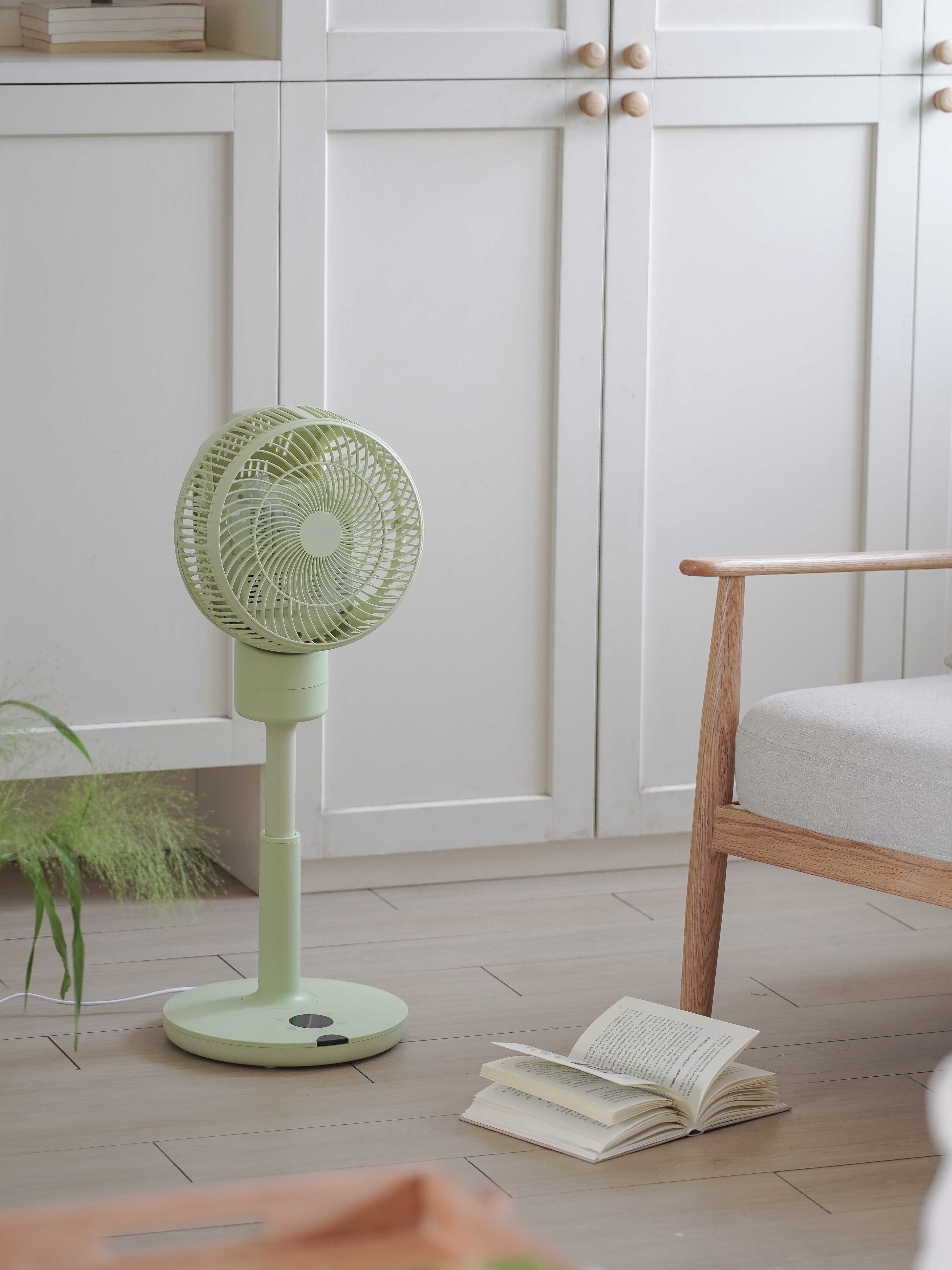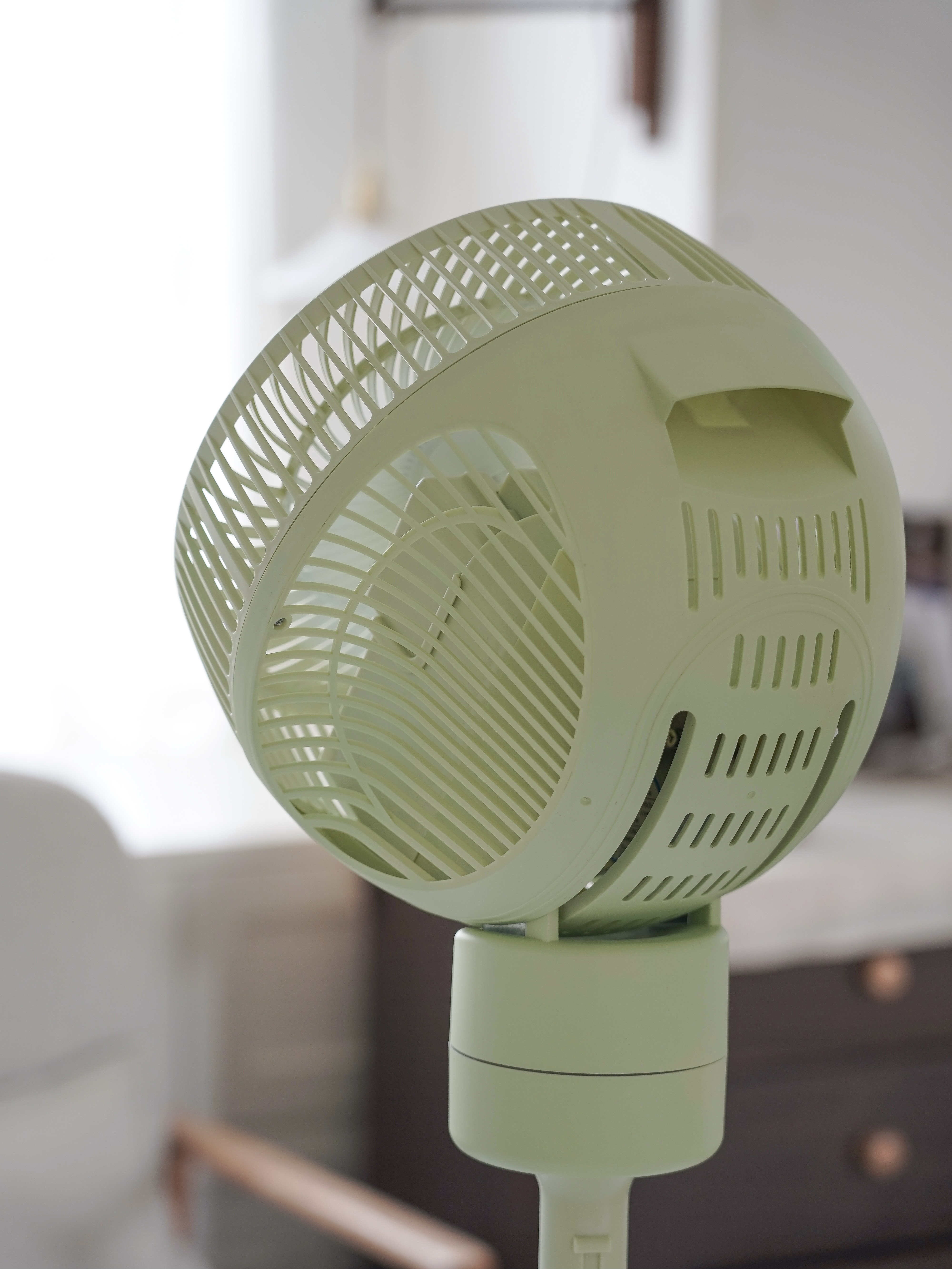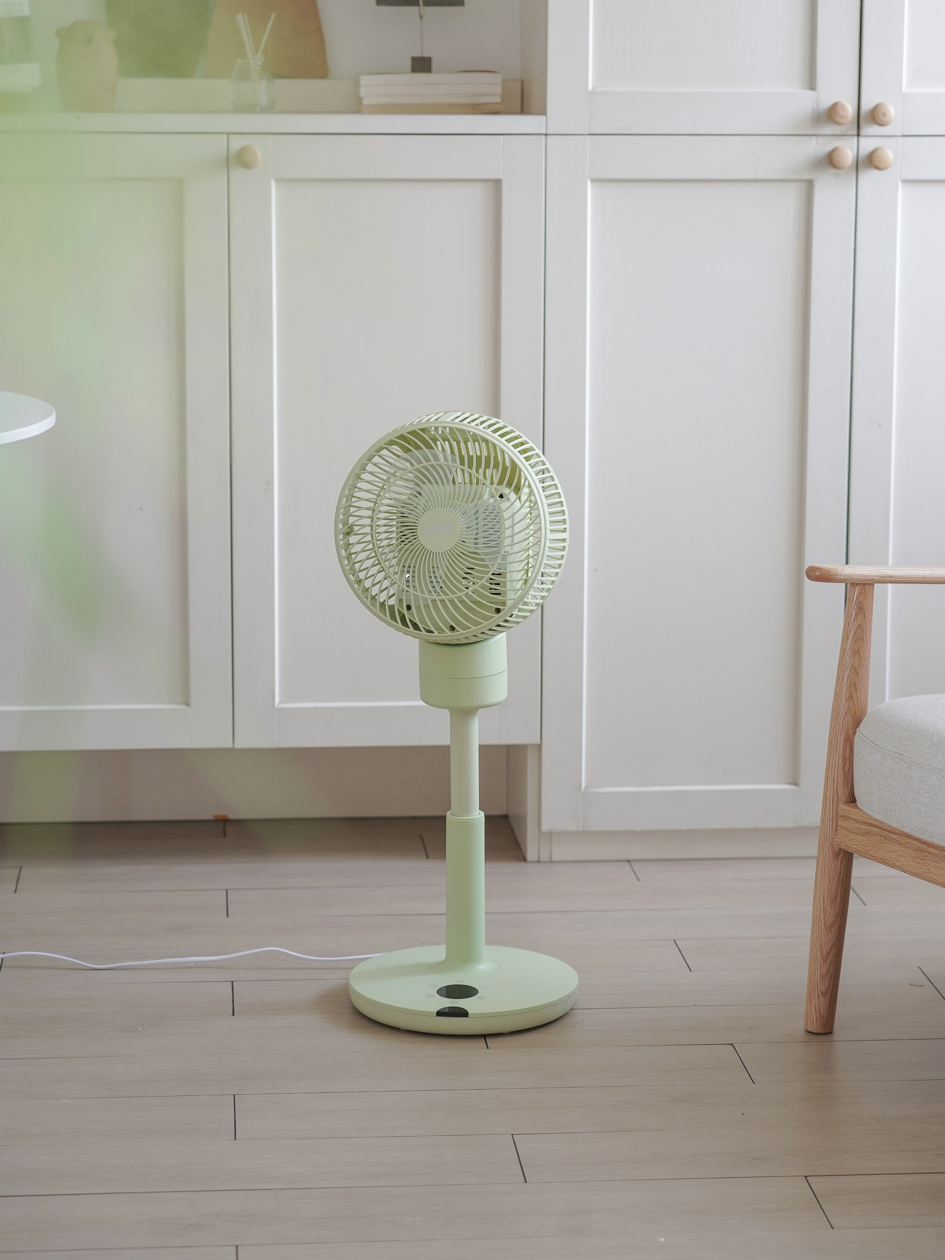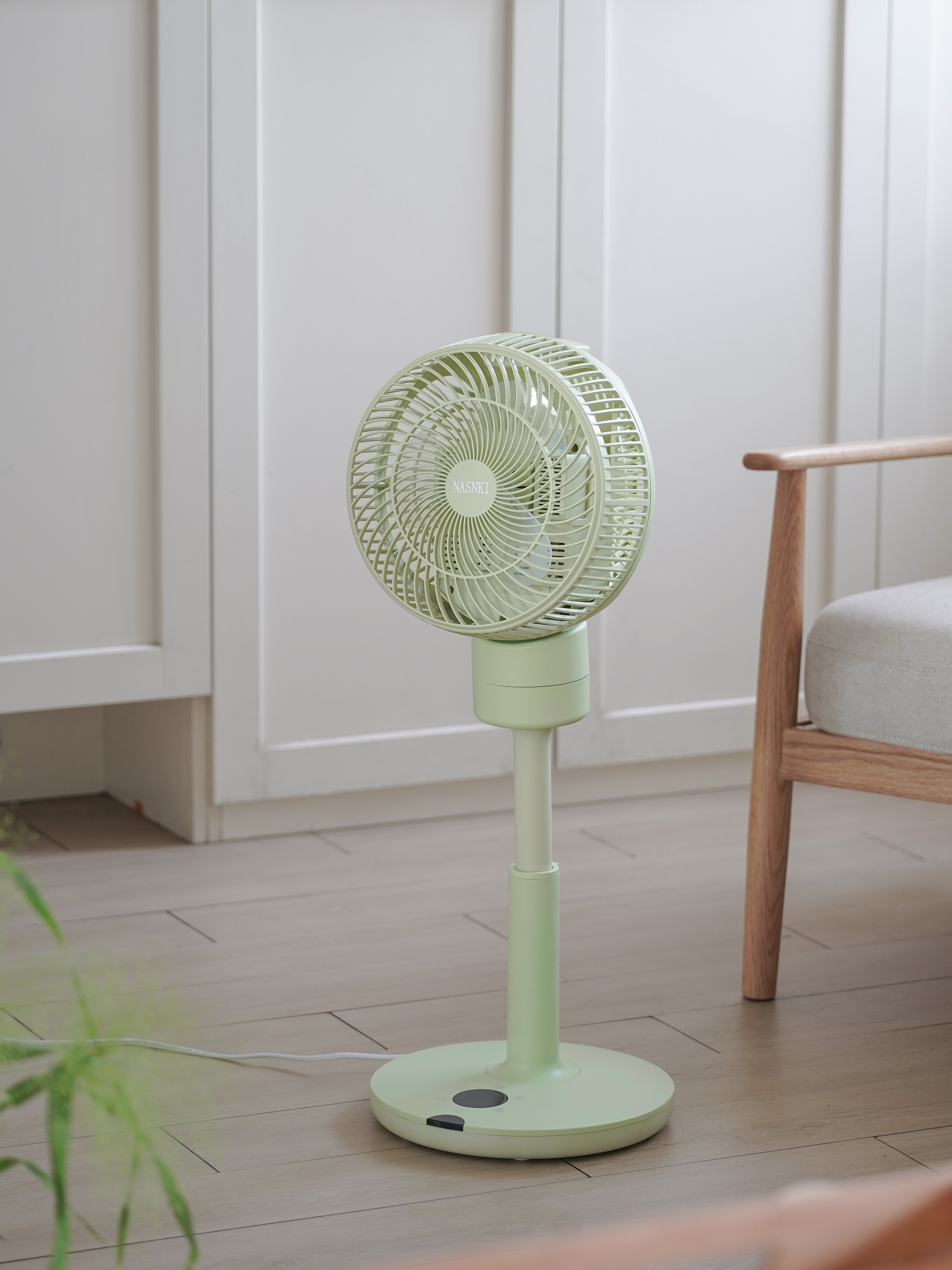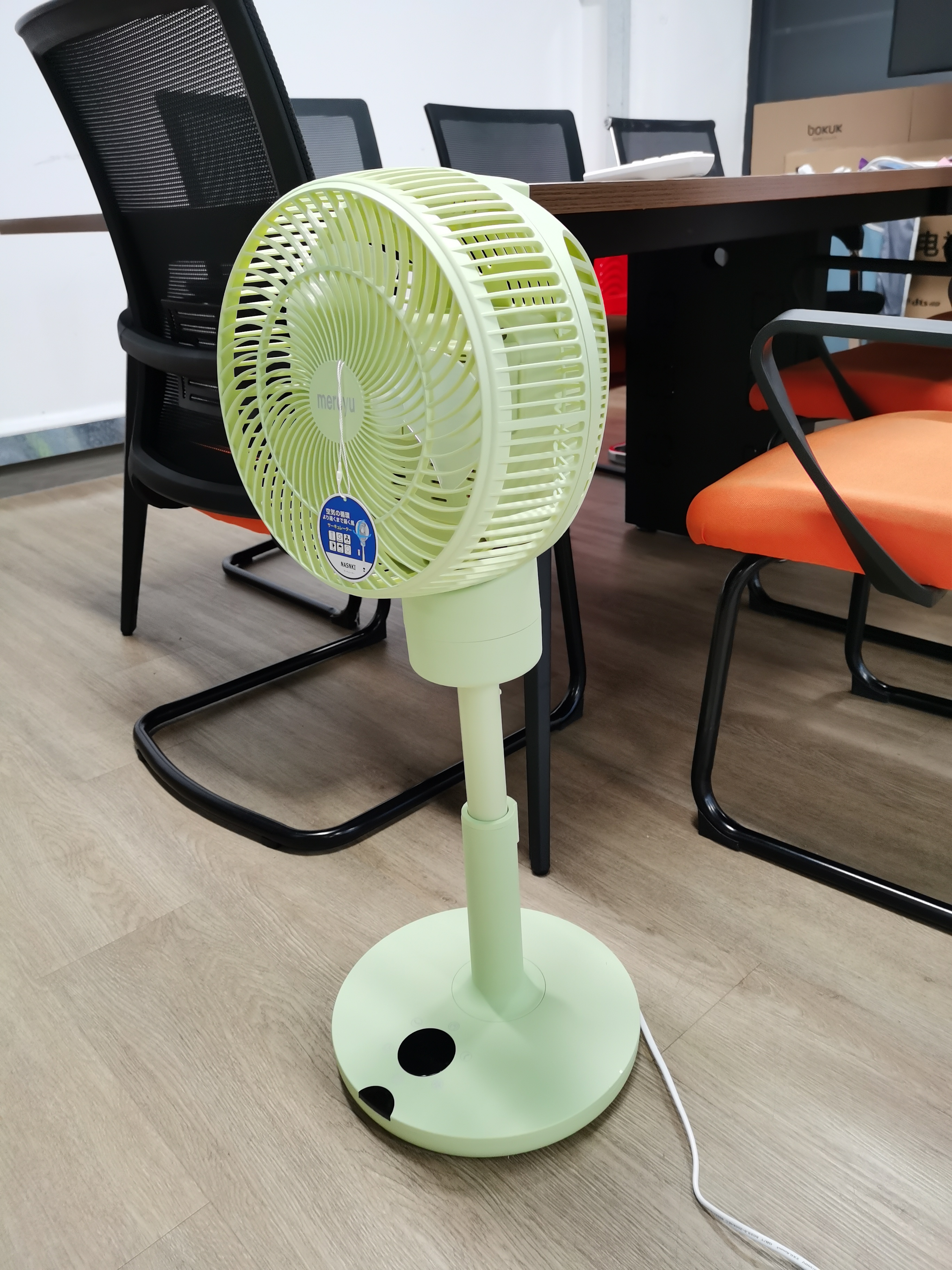 1:强风不硬吹,直吹不头疼;日常电风扇是扇叶驱动空气流动,直接送出硬风;摩秀循环扇设计为大倾角螺旋扇叶,变频电机风量足而不硬