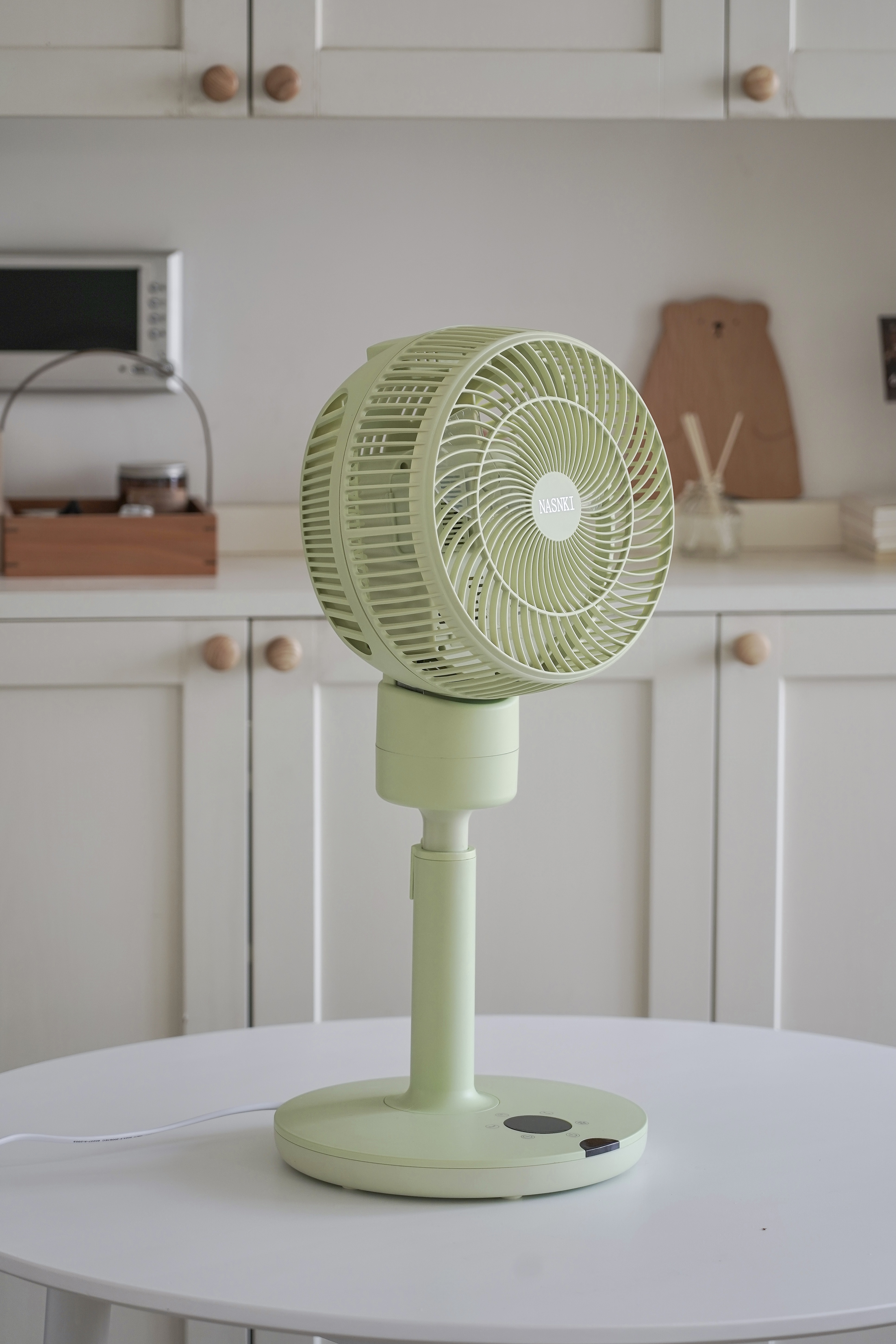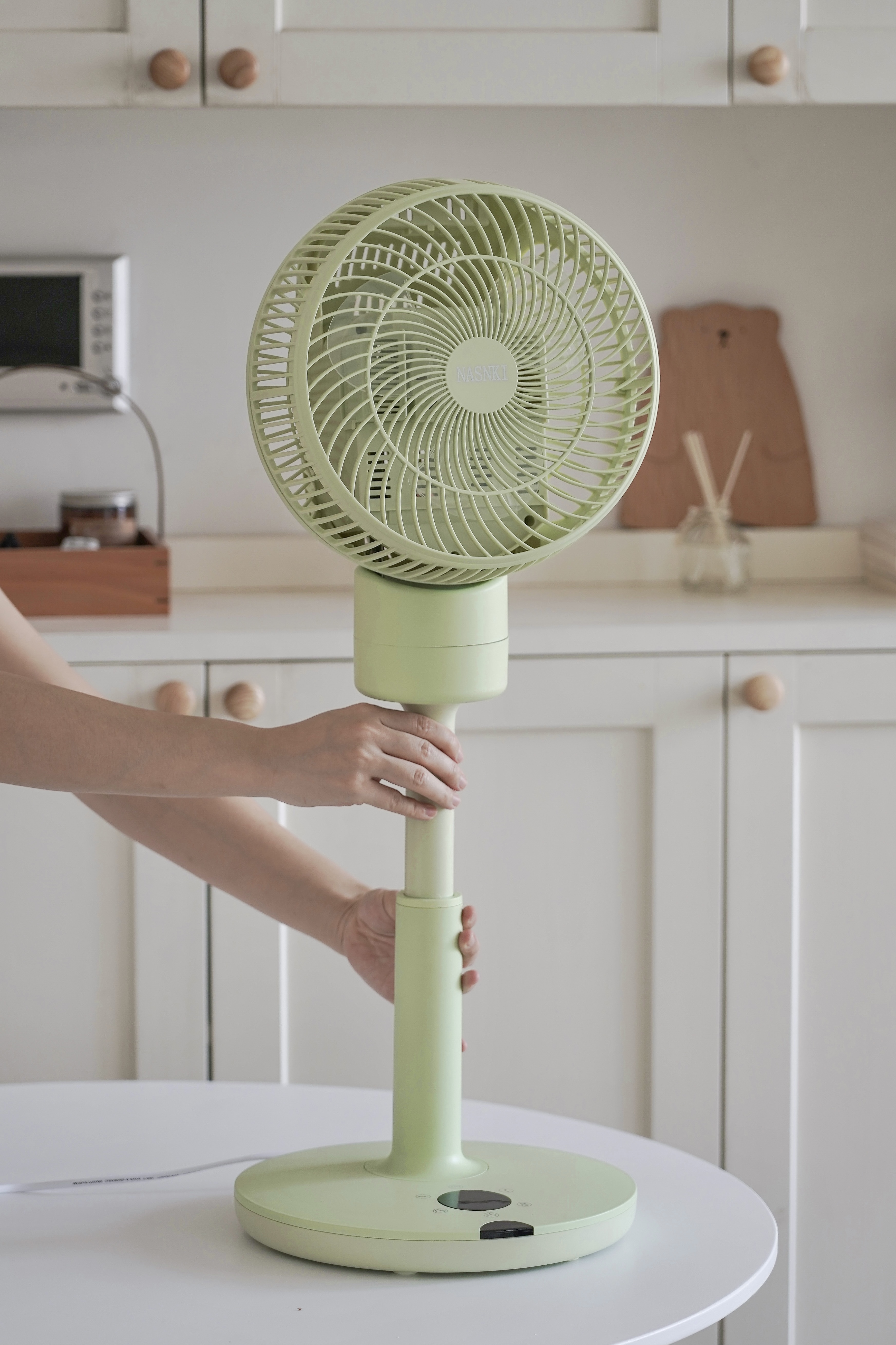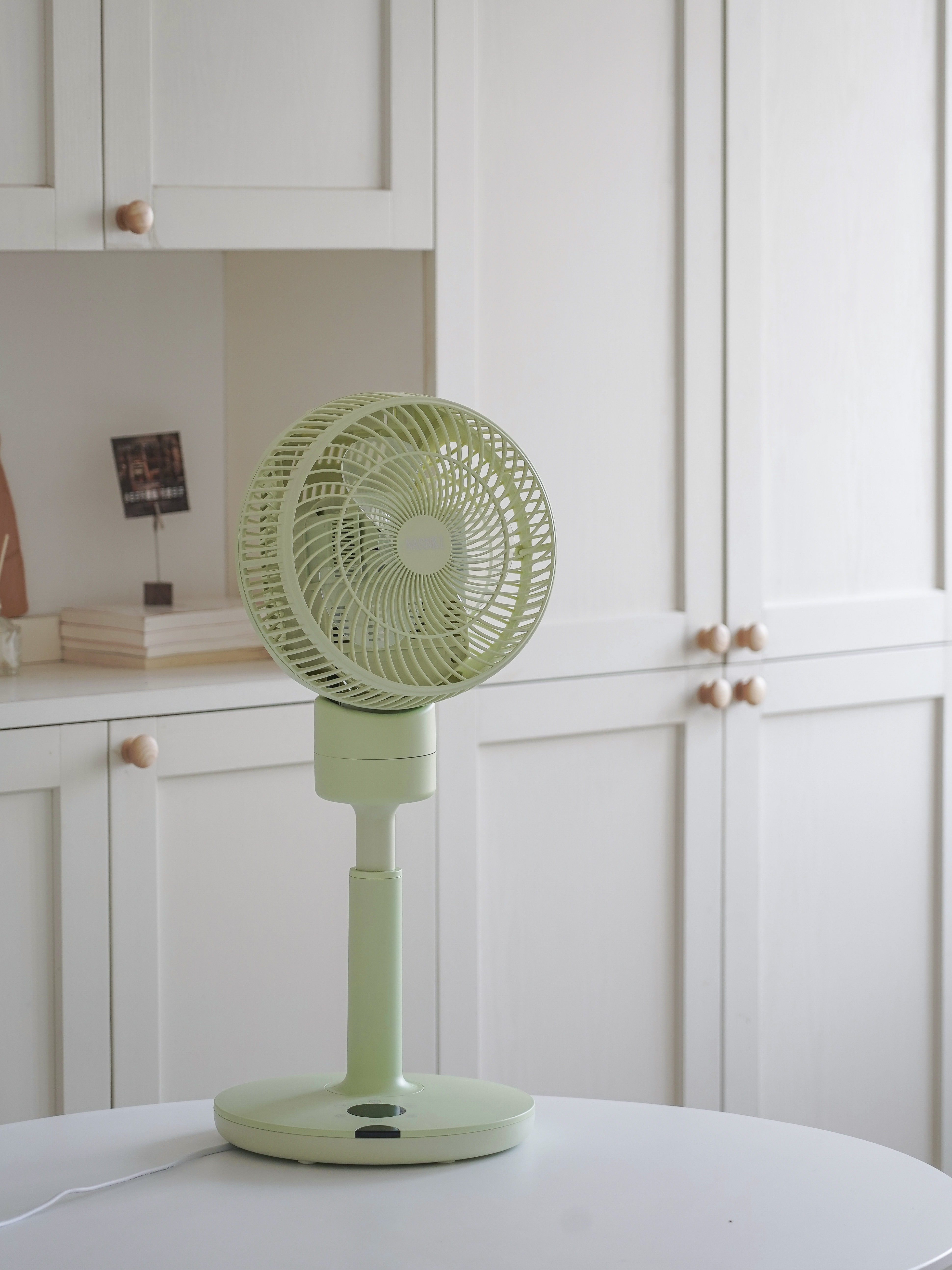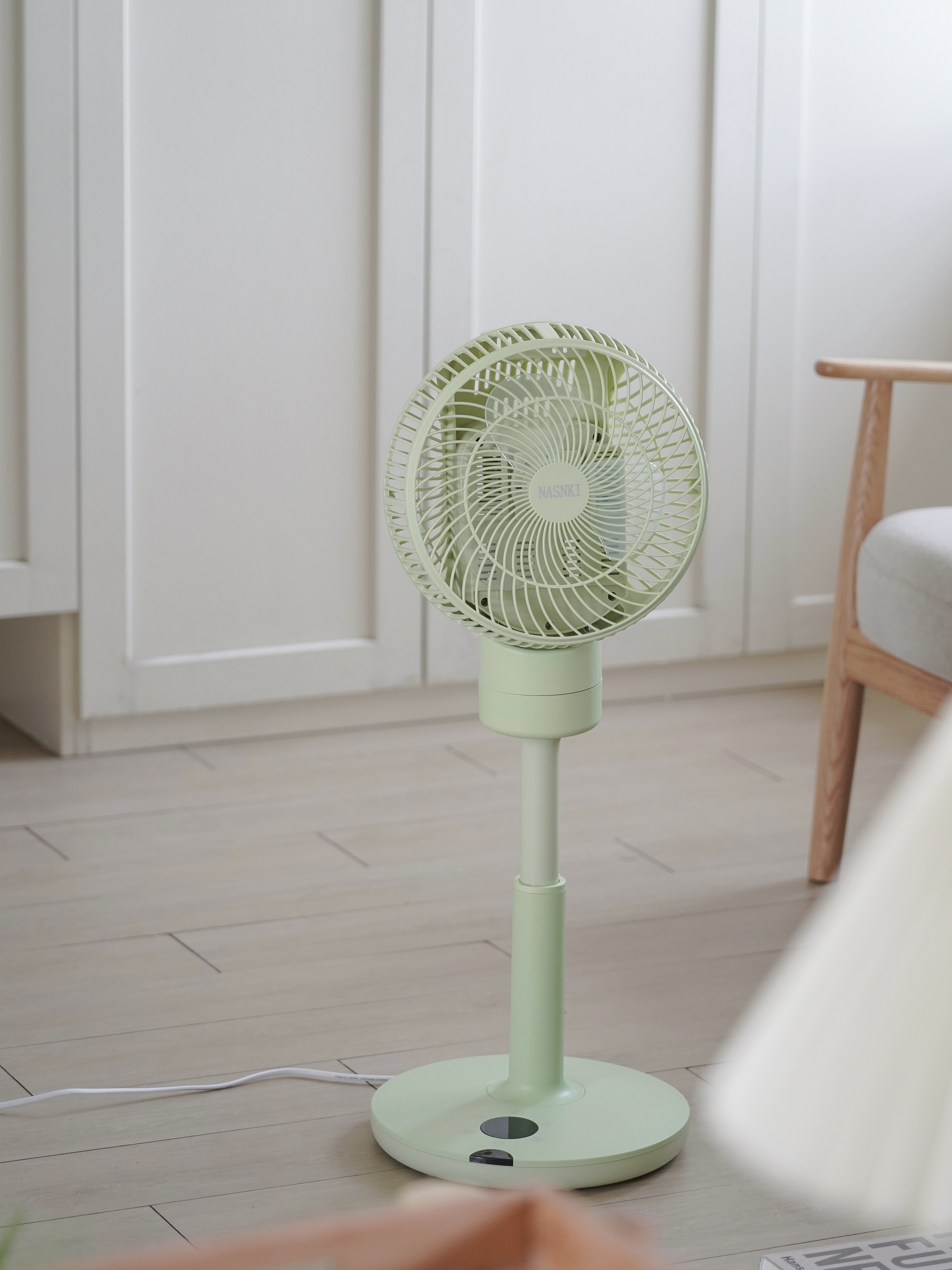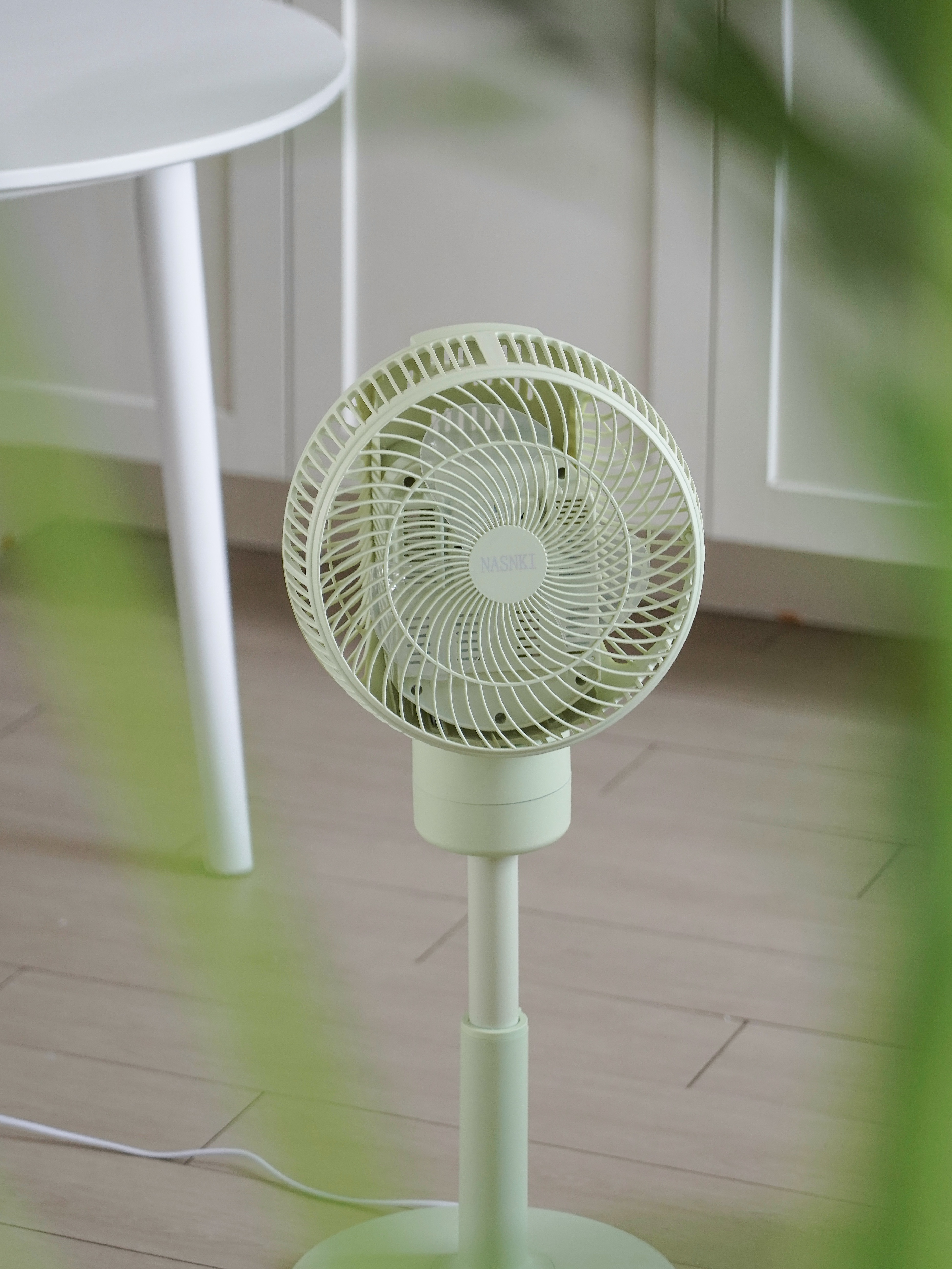 1:强风不硬吹,直吹不头疼;日常电风扇是扇叶驱动空气流动,直接送出硬风;摩秀循环扇设计为大倾角螺旋扇叶,变频电机风量足而不硬