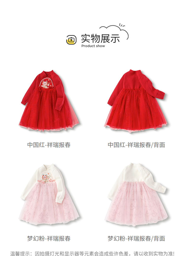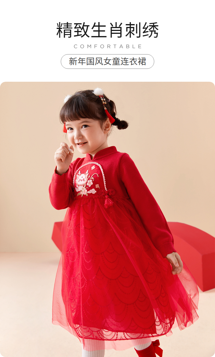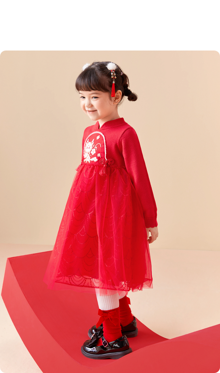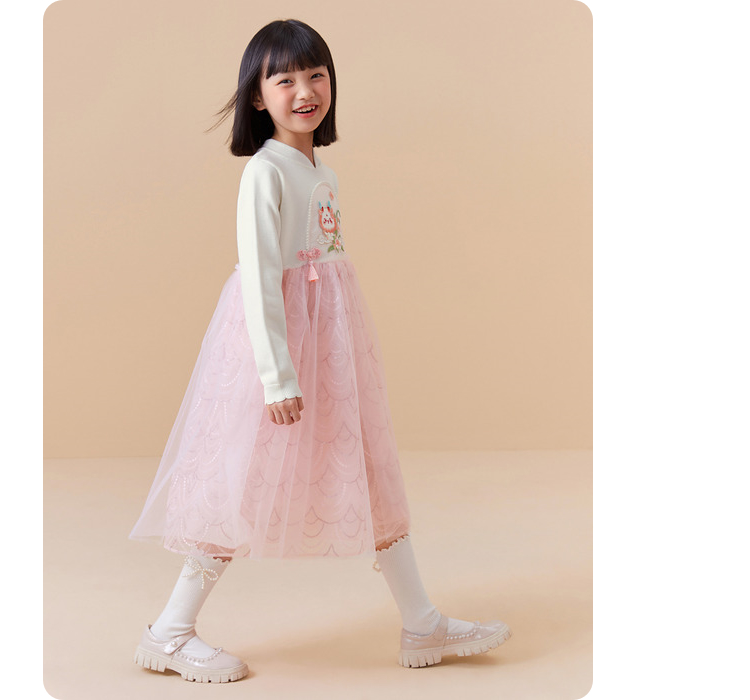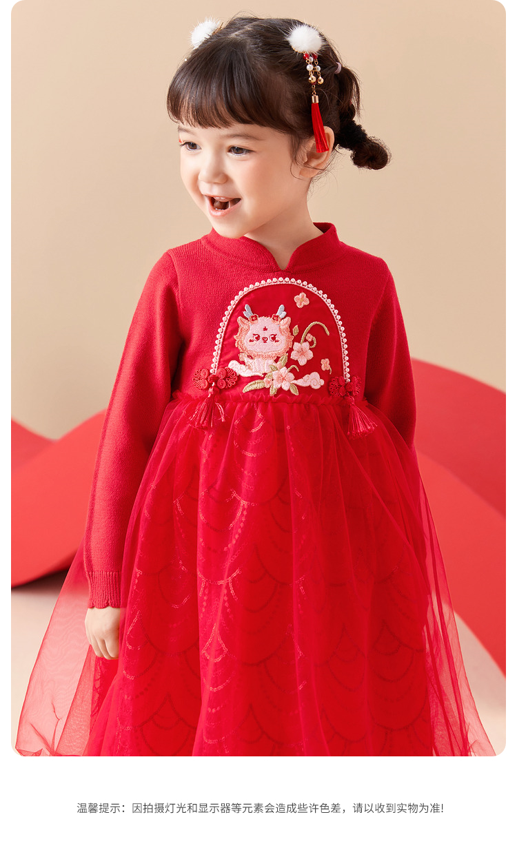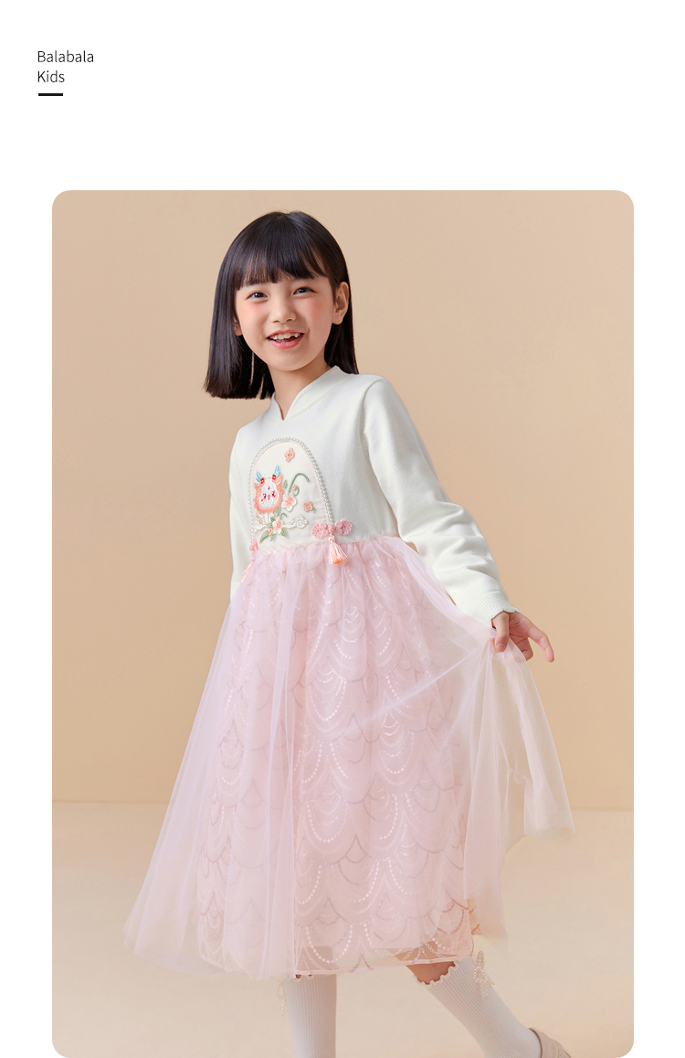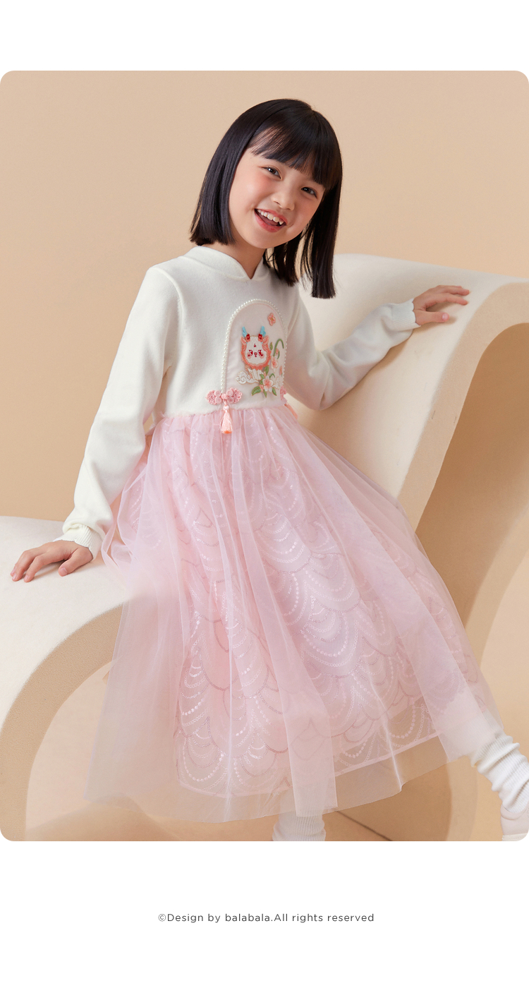 巴拉巴拉童装女童连衣裙洋气新中式潮新款儿童裙子网纱公主裙