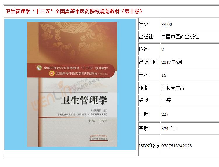 卫生管理学 新世纪第2二版 全国高等中医药院校规划教材 第十10版 本科教材 王长青主编 中国中医药出版社 供公共事业管理等专业用
