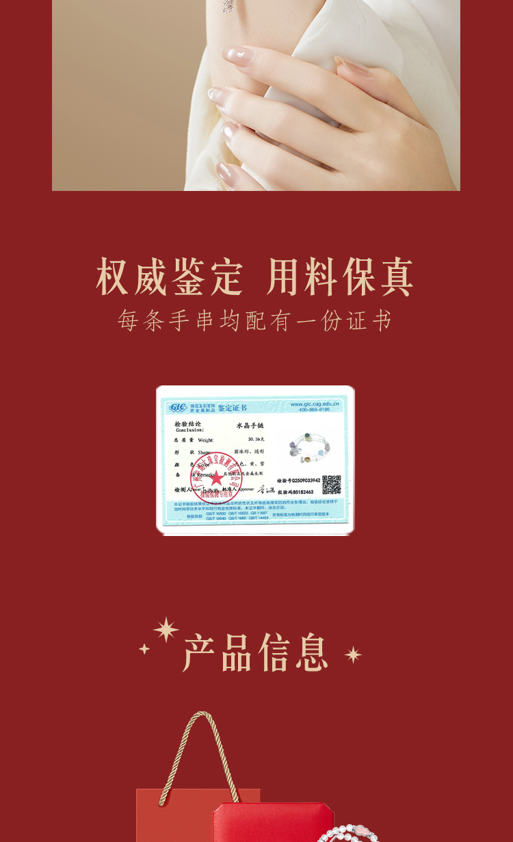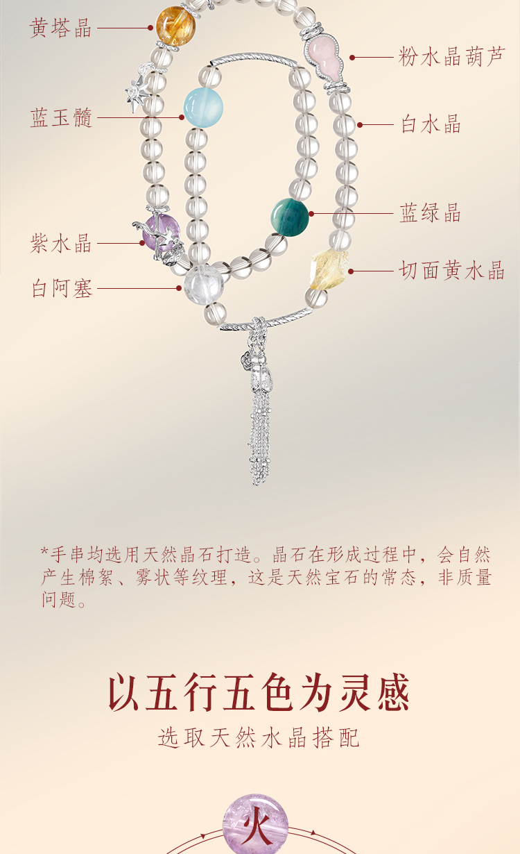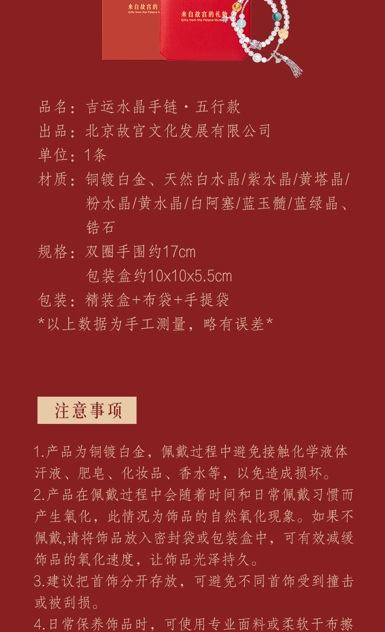 【故宫饰品】吉运白水晶手串手链五行款博物馆文创生日礼物女