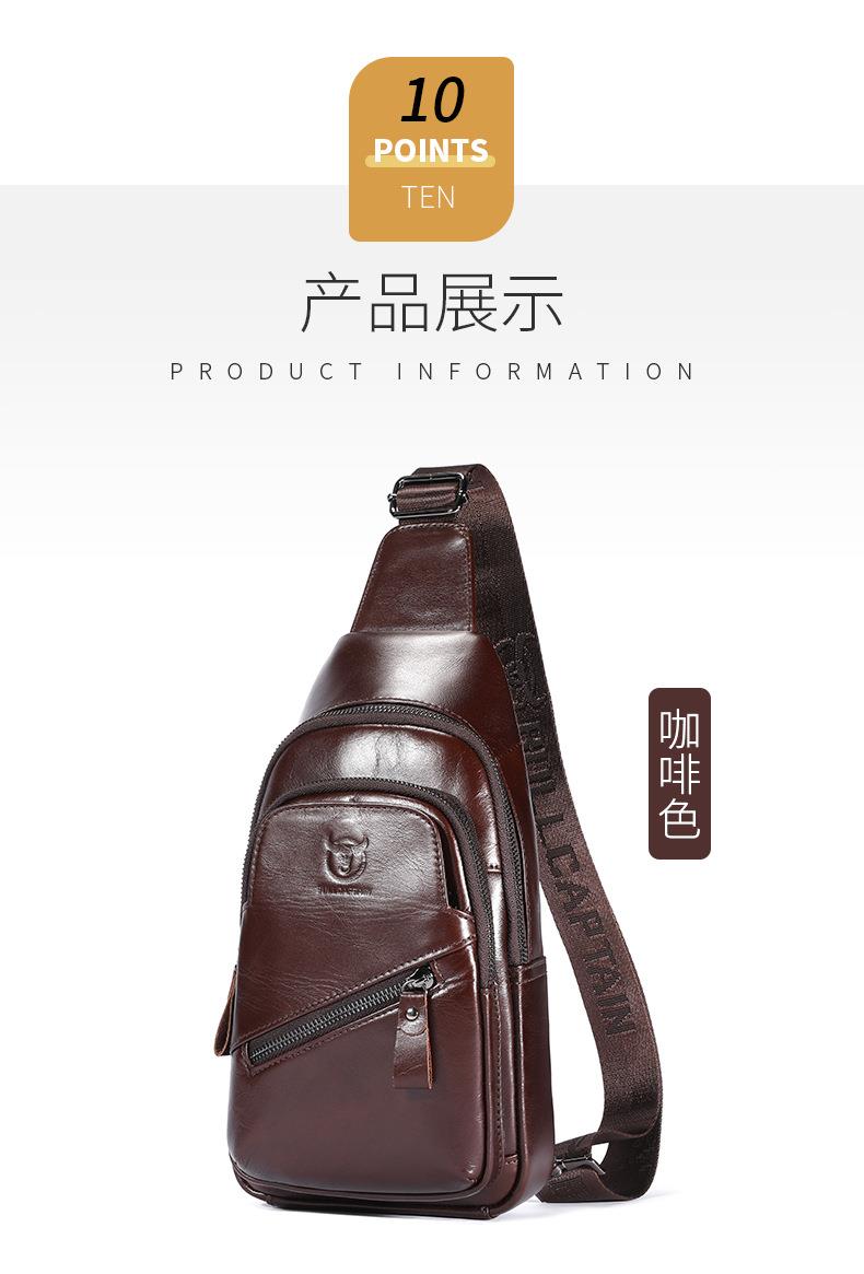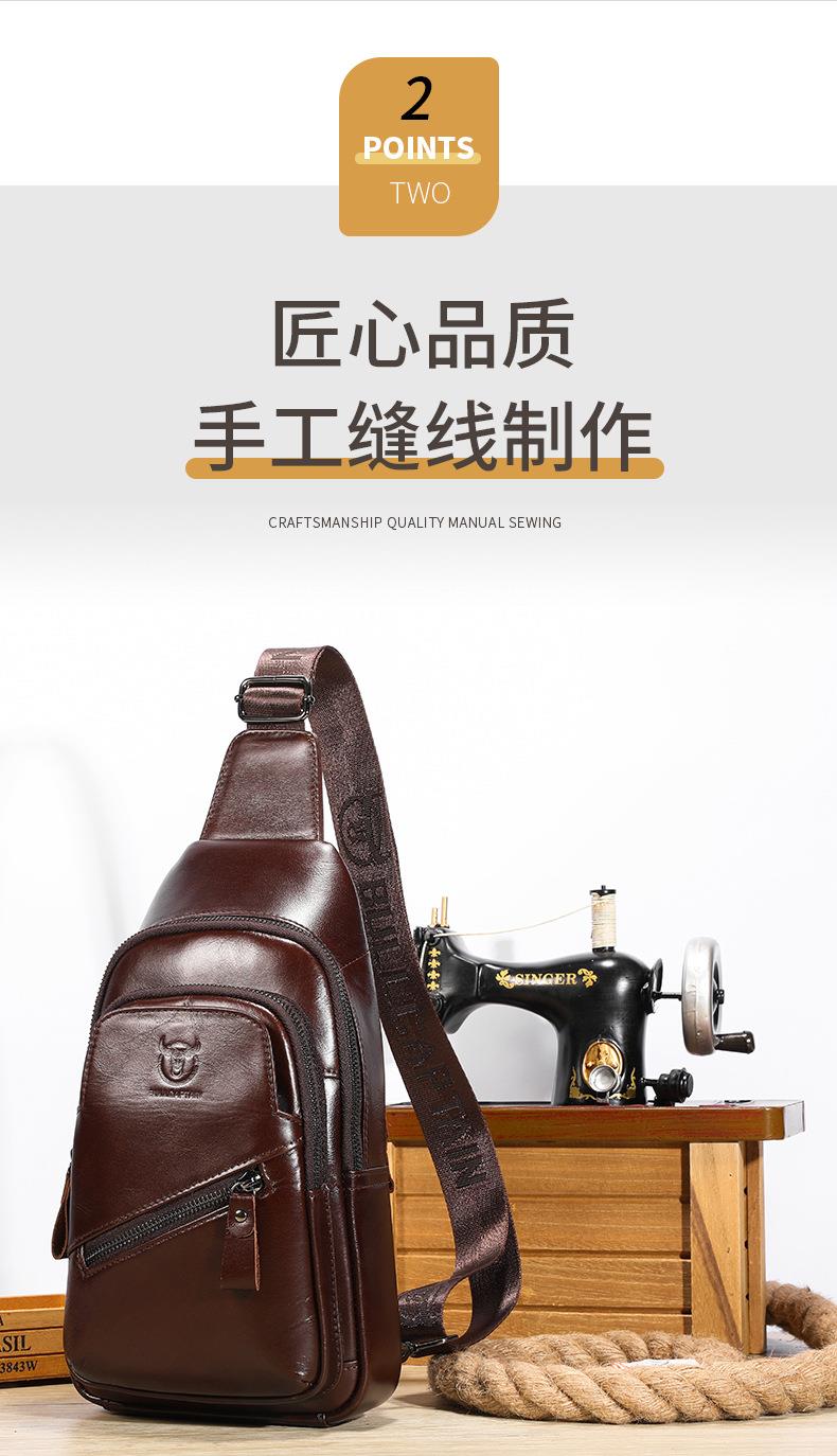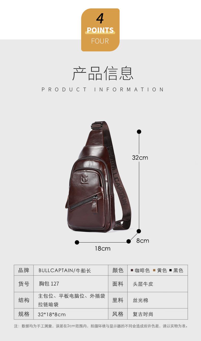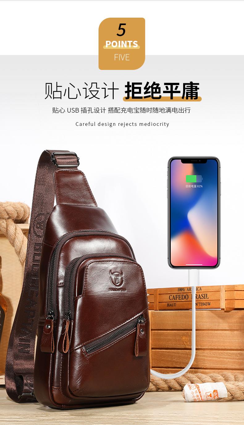 牛船长大容量真皮男单肩斜挎胸包软头层牛皮复古双层插卡充电腰包