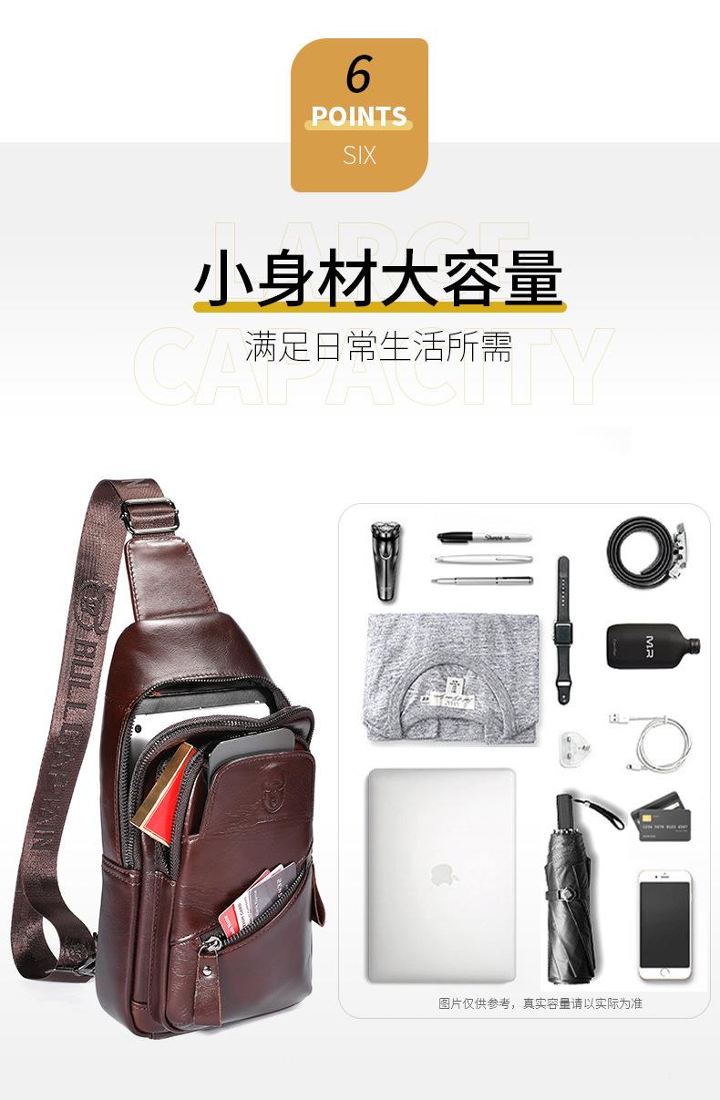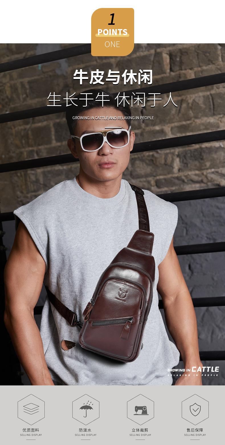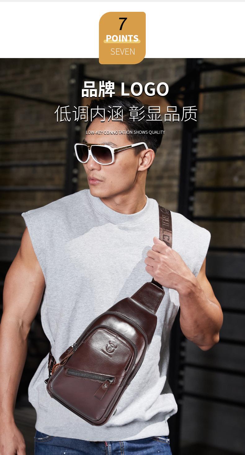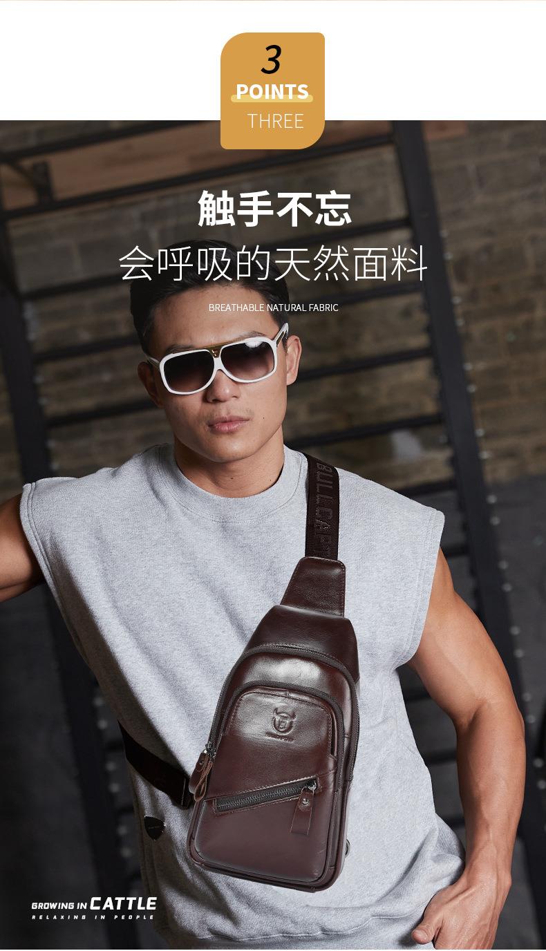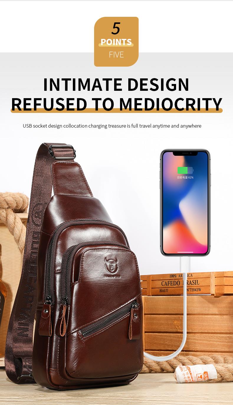 牛船长大容量真皮男单肩斜挎胸包软头层牛皮复古双层插卡充电腰包