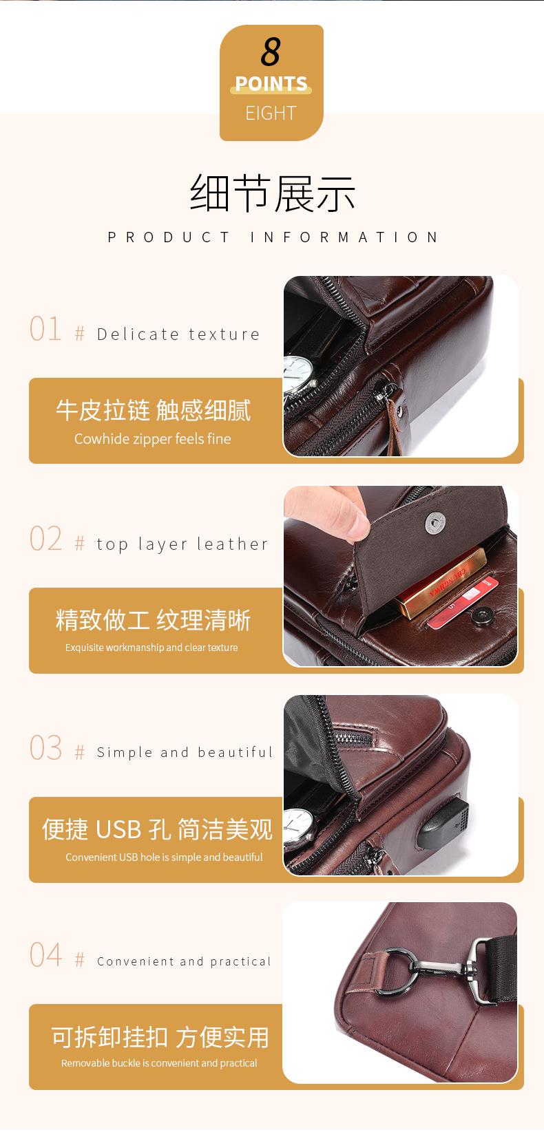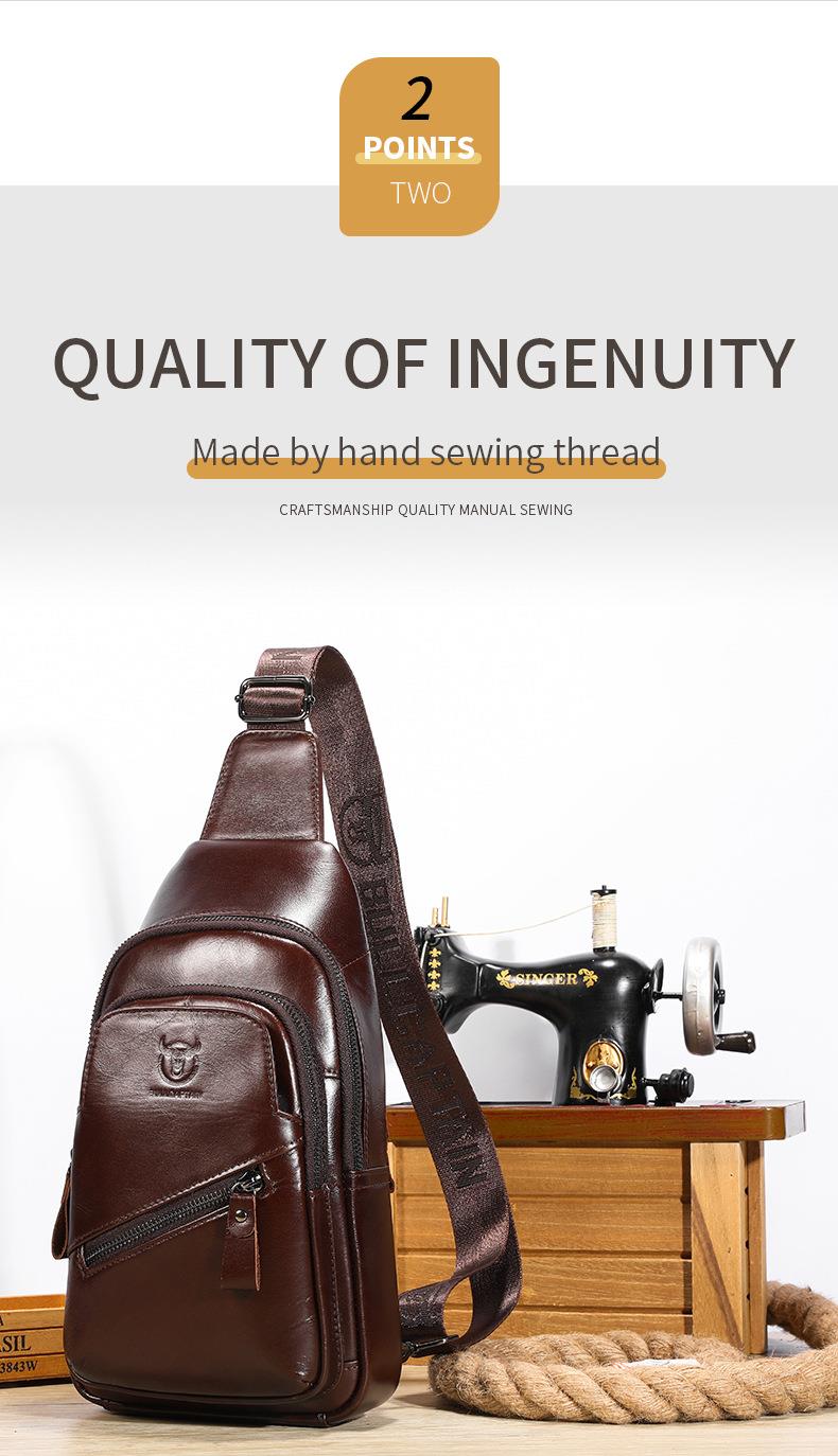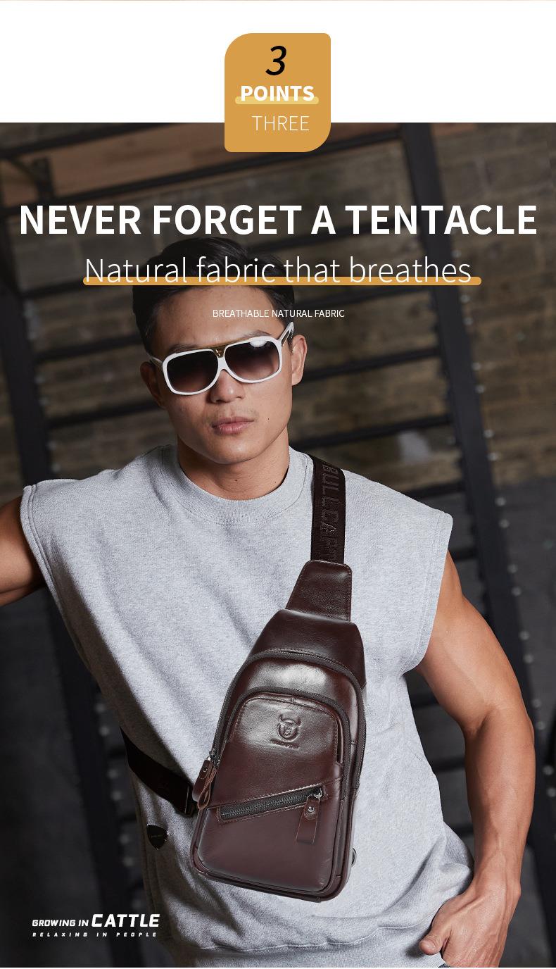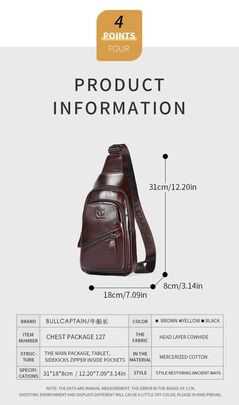 牛船长大容量真皮男单肩斜挎胸包软头层牛皮复古双层插卡充电腰包