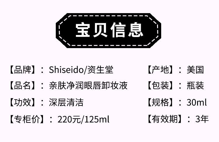 【爆款超低价预售 急单慎拍】日本资生堂柔肤净润眼唇卸妆液30ml 温和不刺激 专柜小样