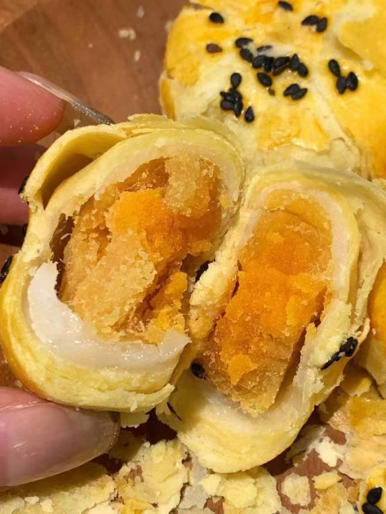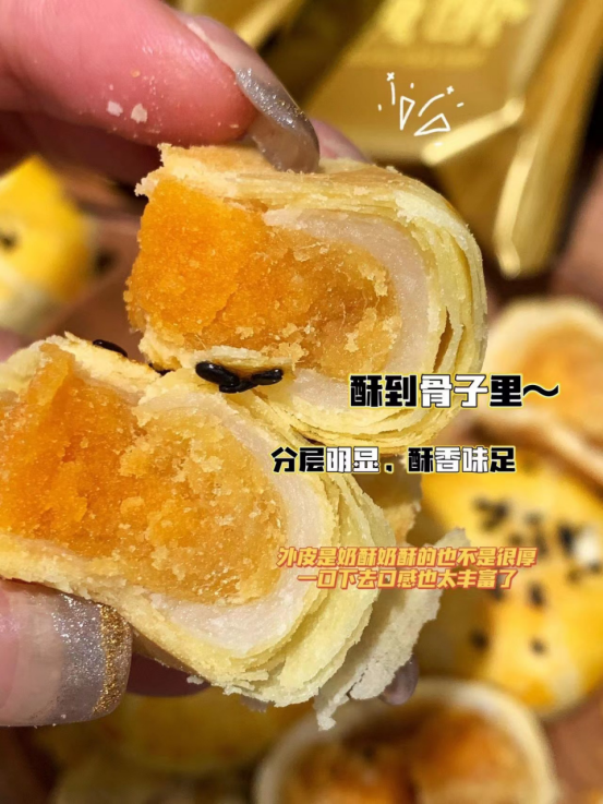 隔着屏幕口流水一个满饱的蛋黄酥香酥外的皮+甜而不腻的肉松,每嚼一都在刺味激蕾