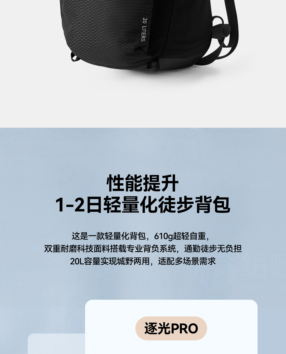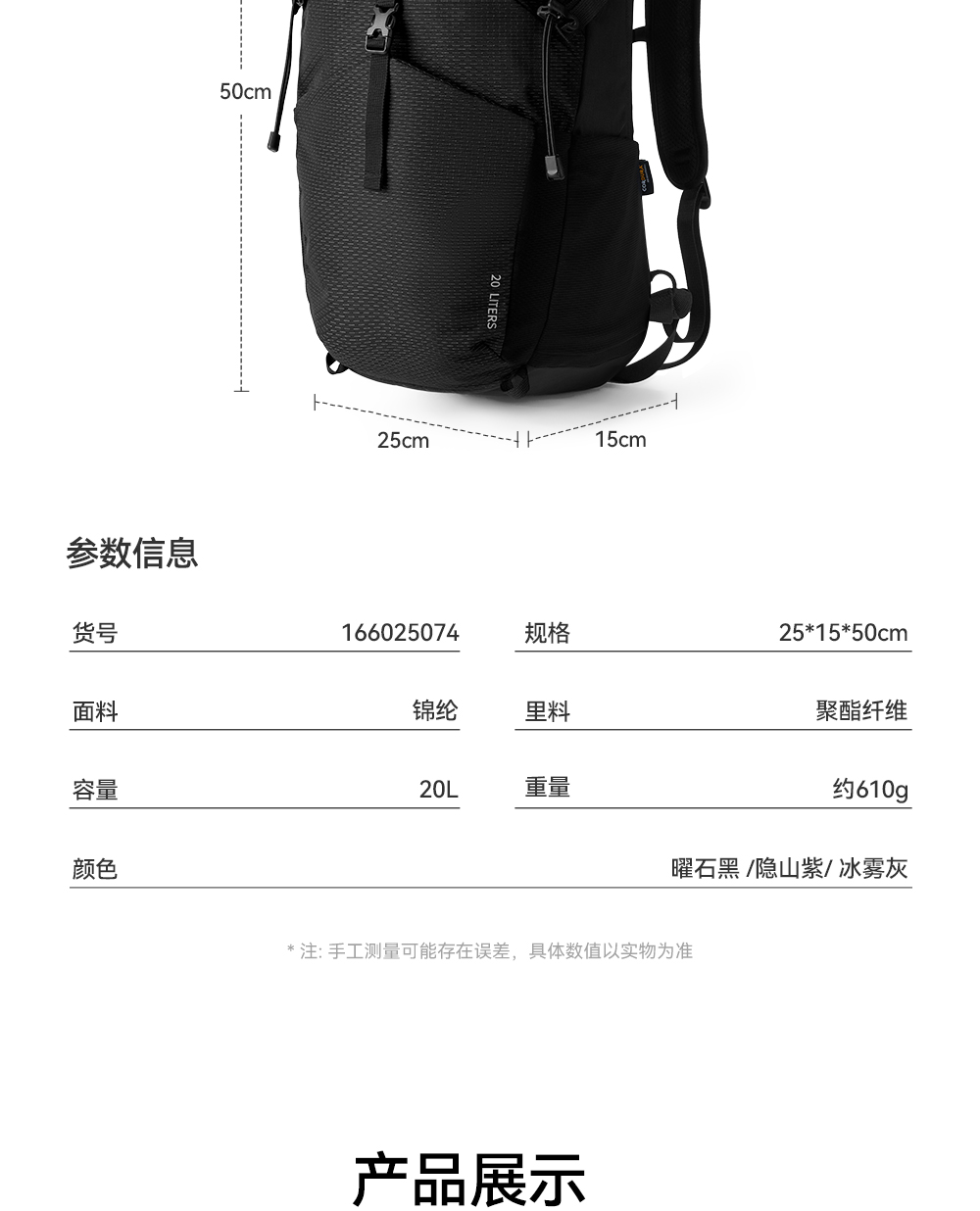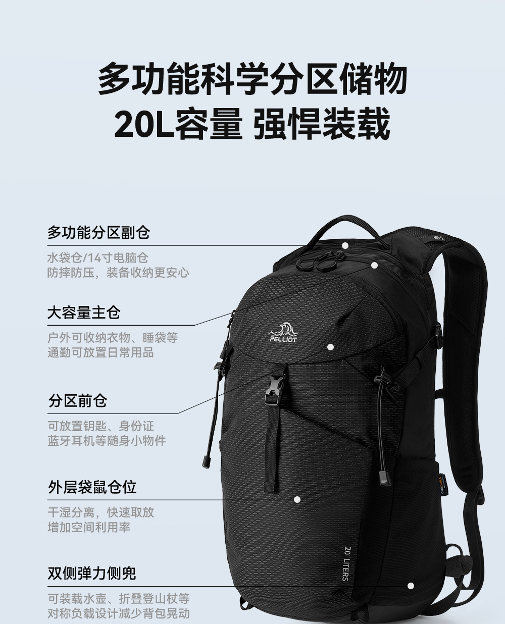 【逐光PRO】伯希和户外登山包女紫色20L徒步背包轻量化通勤双肩包