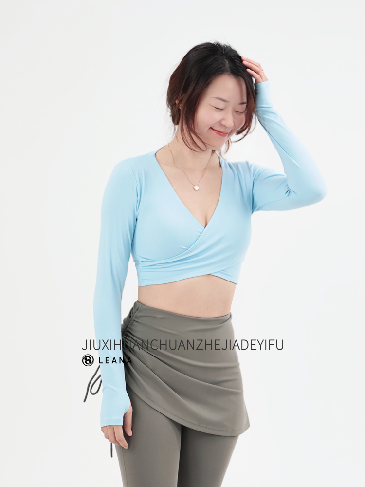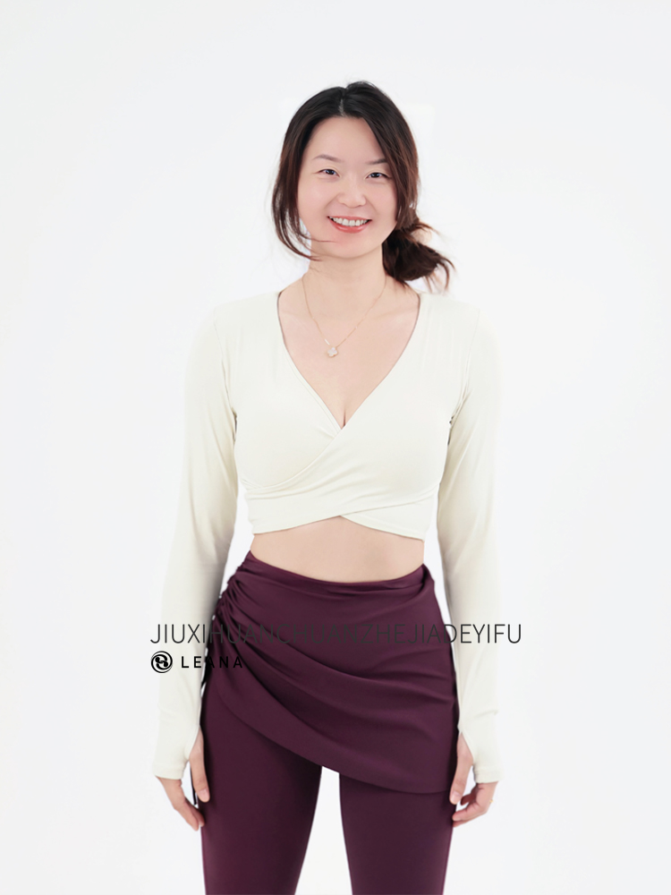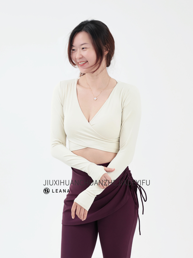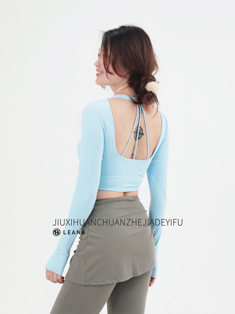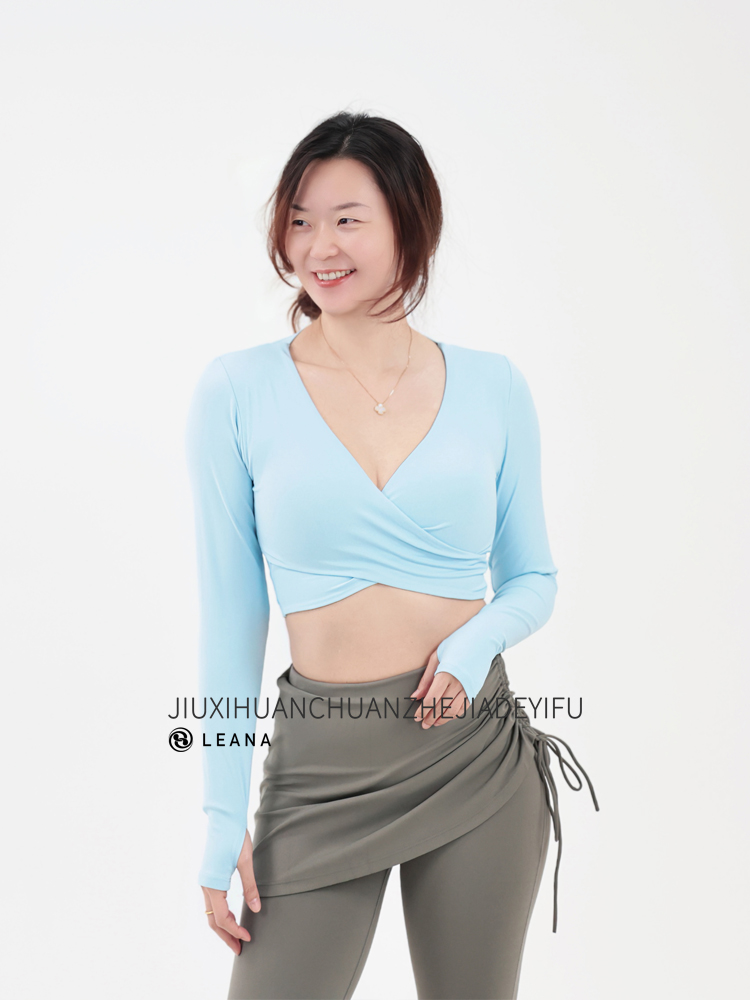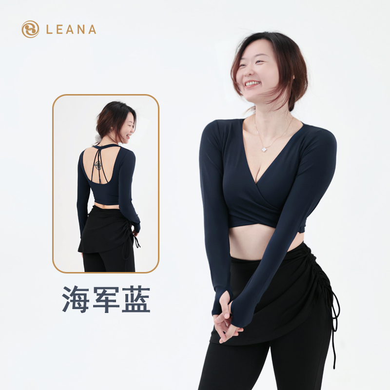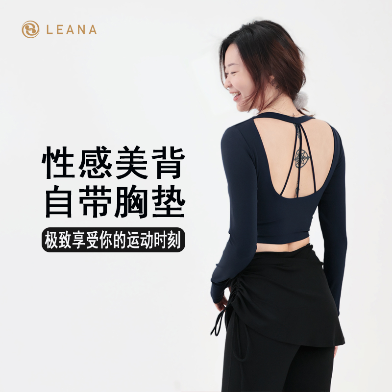 LEANA丽娜【带胸垫深V】裸感聚拢美背瑜伽普拉提训练健身长袖LN1401