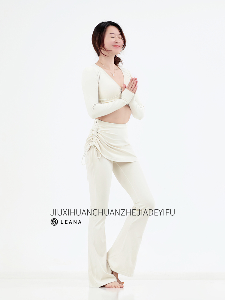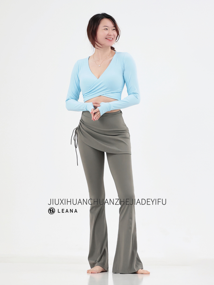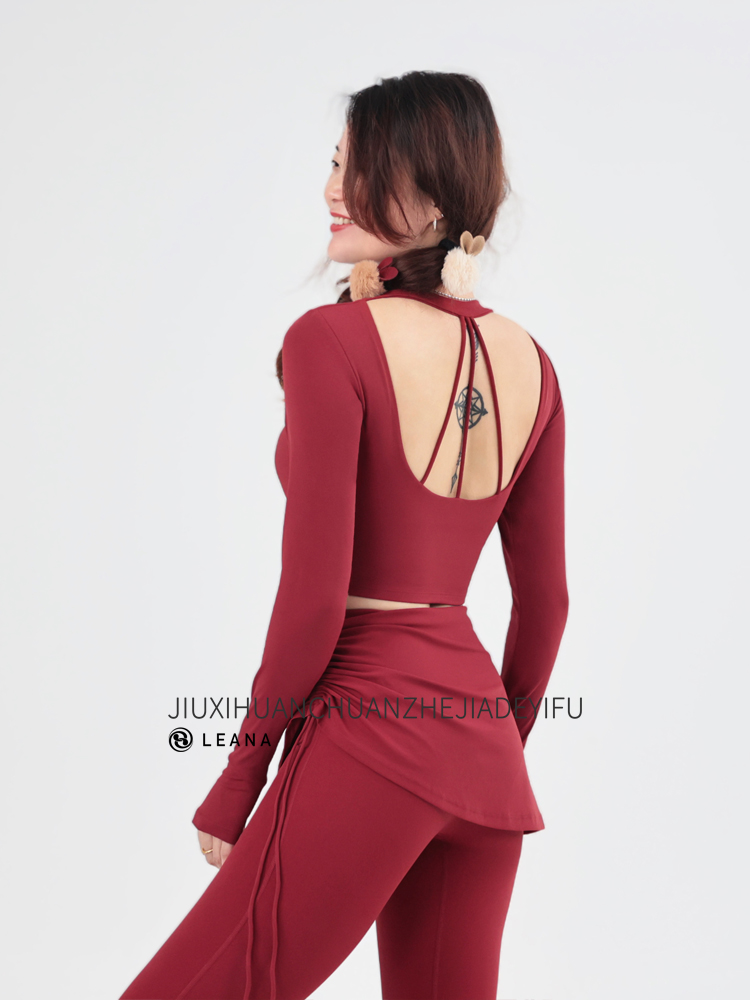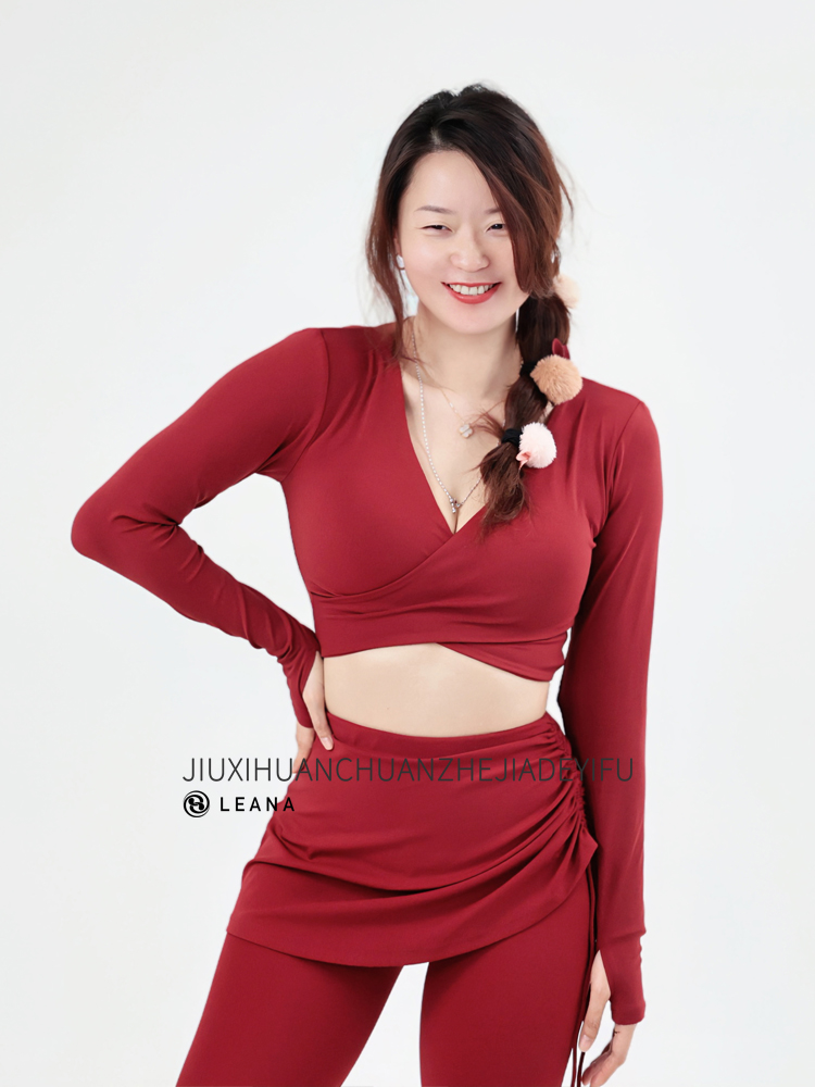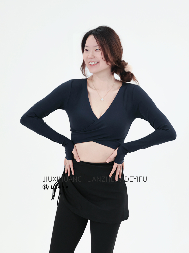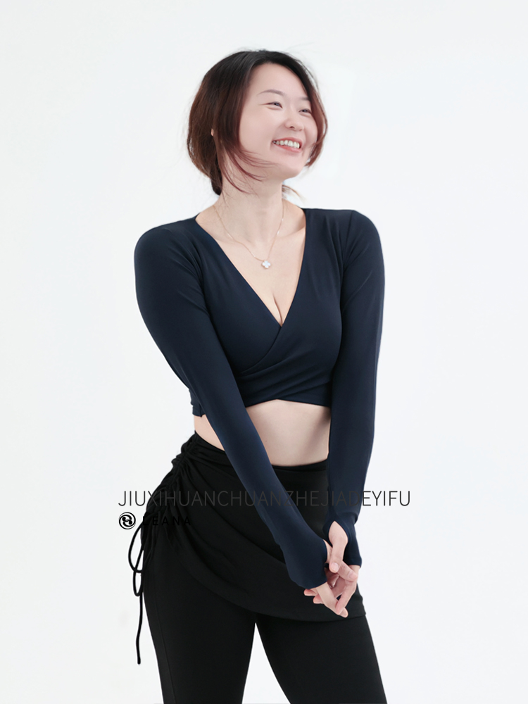 LEANA丽娜【带胸垫深V】裸感聚拢美背瑜伽普拉提训练健身长袖LN1401