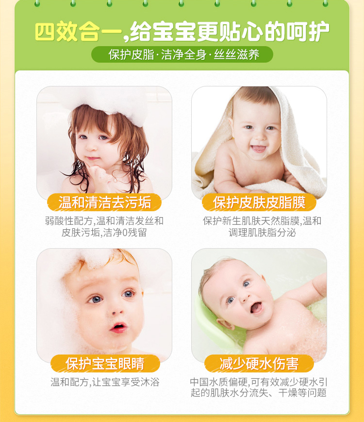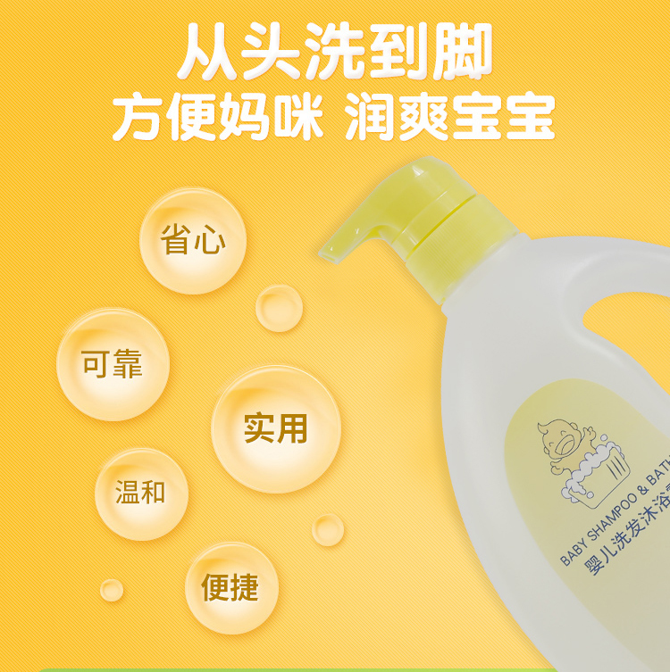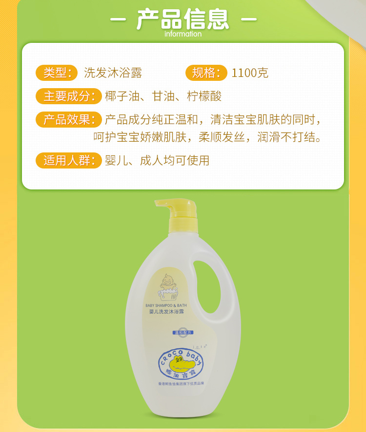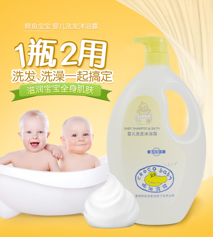 鳄鱼宝宝婴儿洗发沐浴露1100ml洗沐二合一 温和柔顺新生幼儿沐浴露