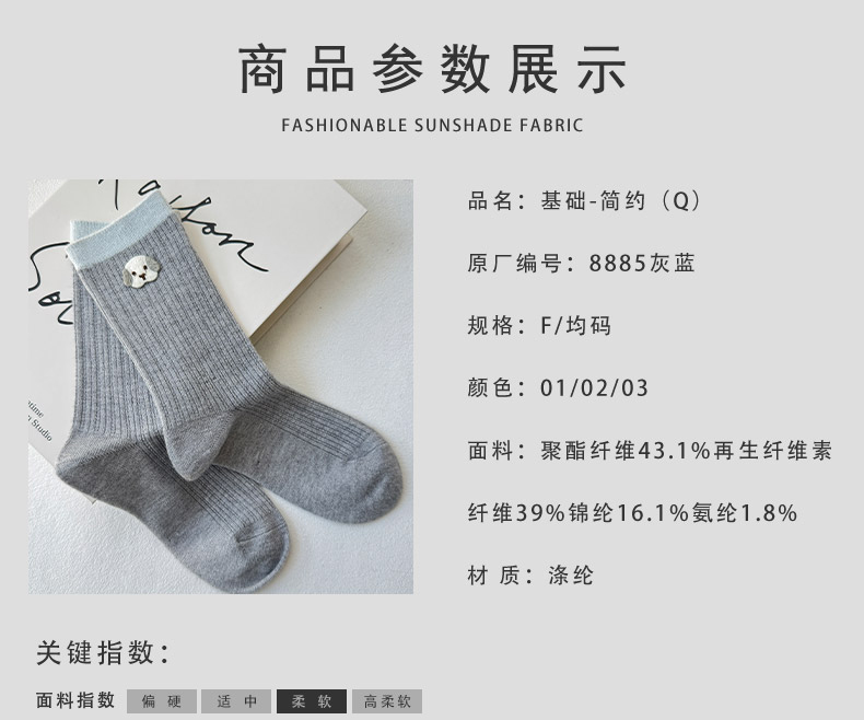 灰蓝系基础简约潮流中筒女袜-纪念日百货门店同款167094900