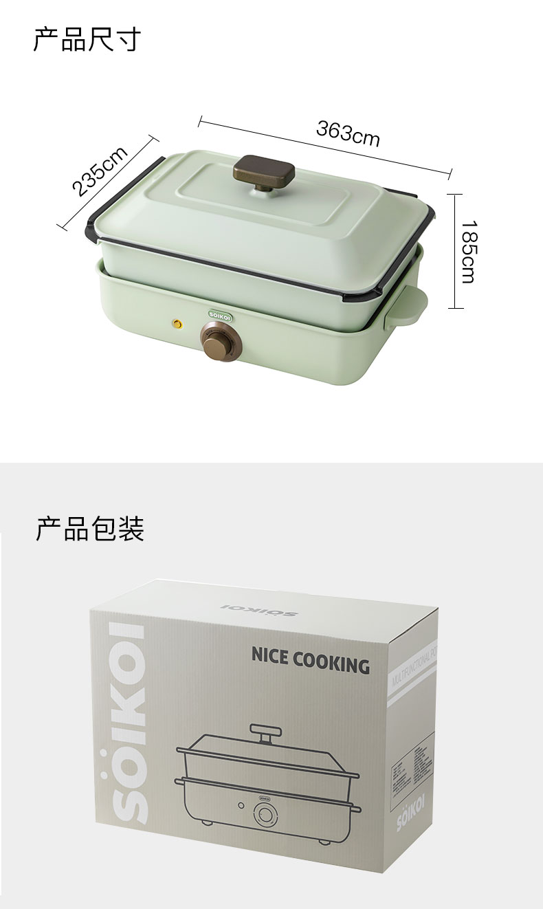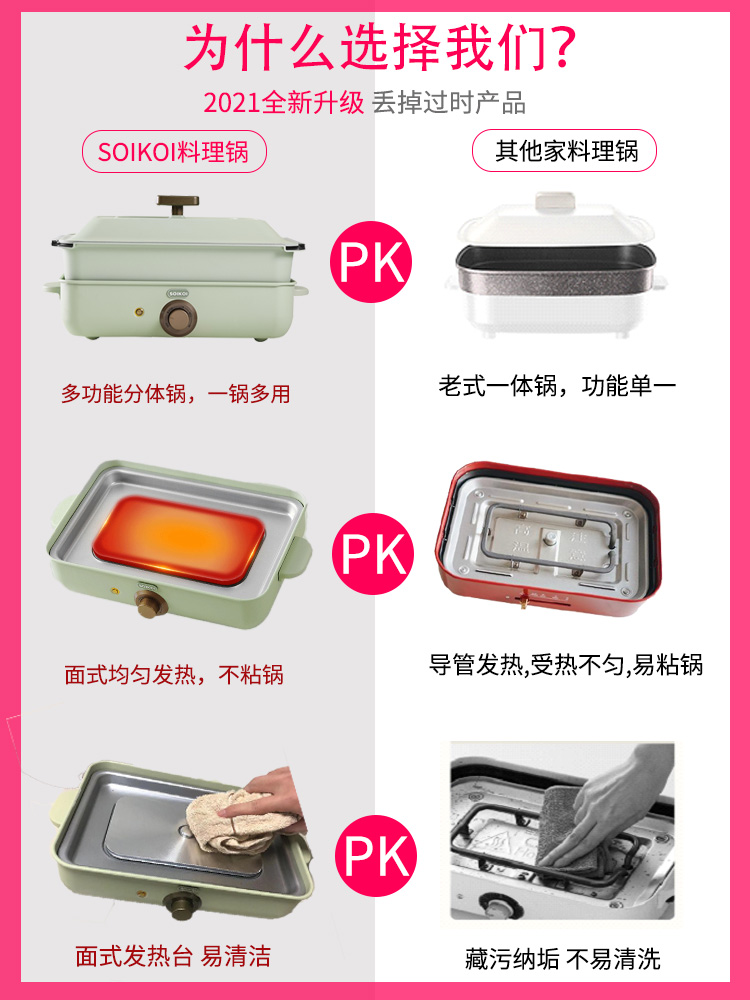soikoi多功能料理锅分体式煎炒涮烤一体锅网红家用电火锅煮锅