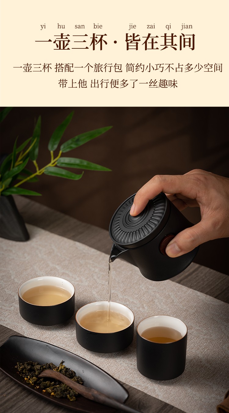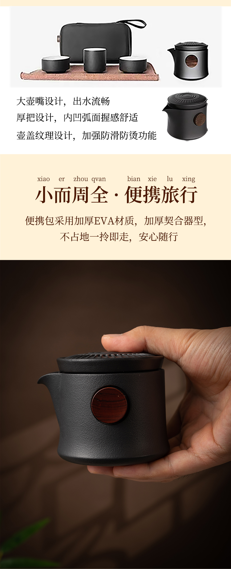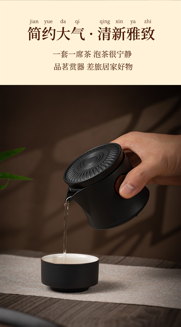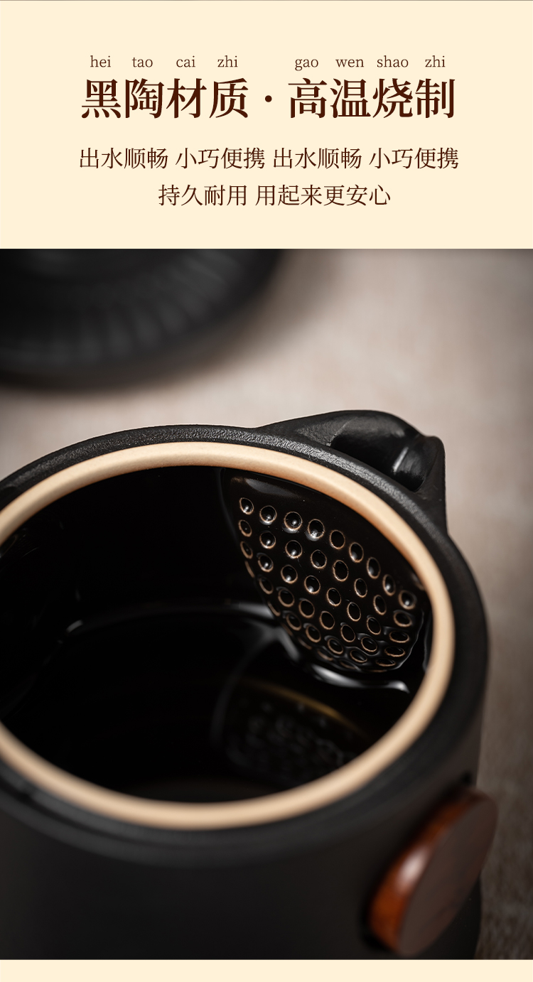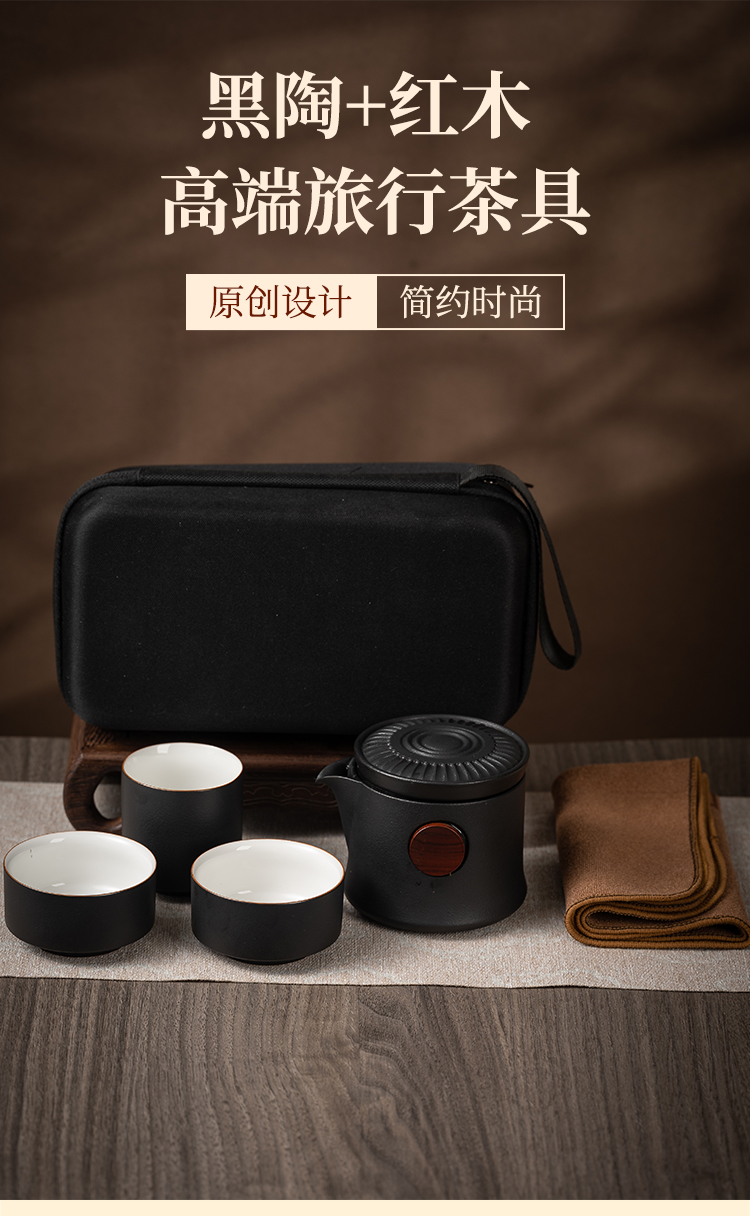 【精选】岸纾 同心圆经典高端黑陶旅行茶具套装 设计师原创设计款