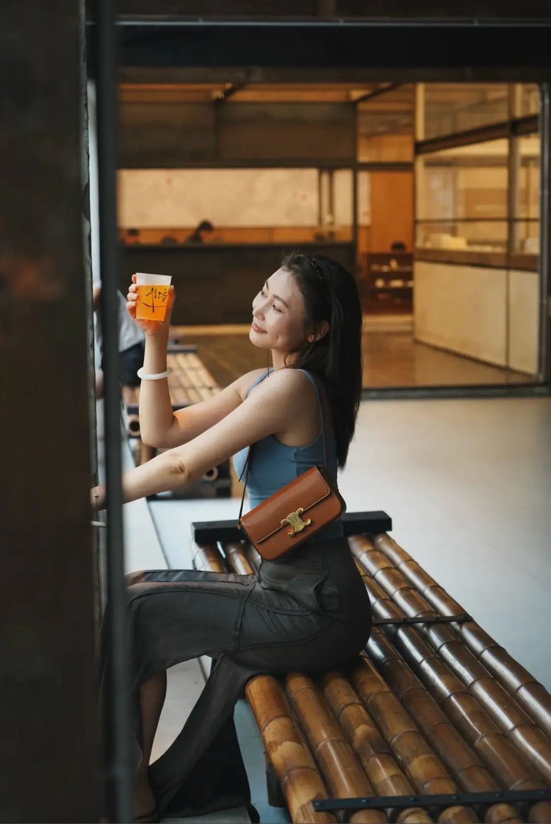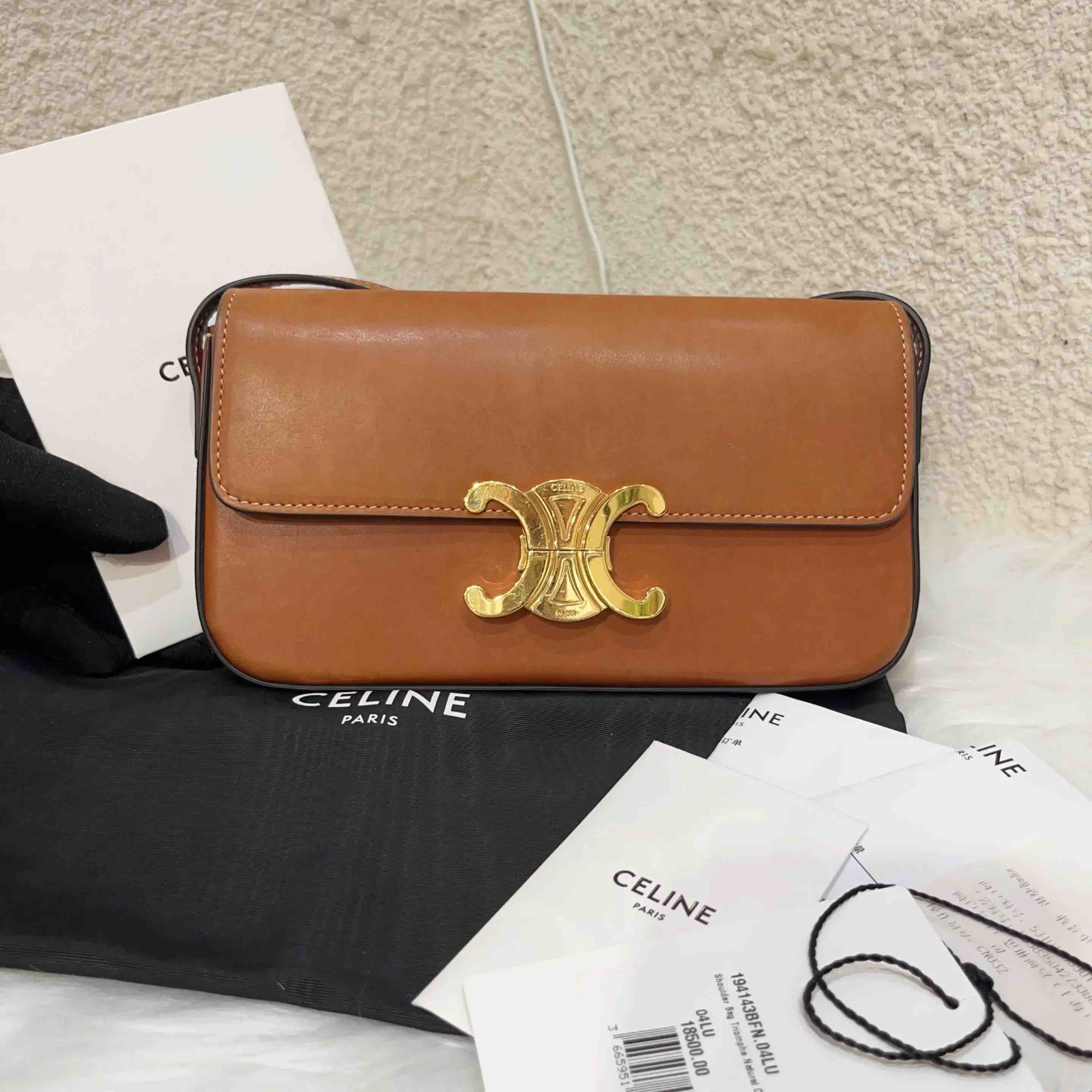 Celine 凯旋门 马鞍皮 焦糖色 金扣 斜挎包